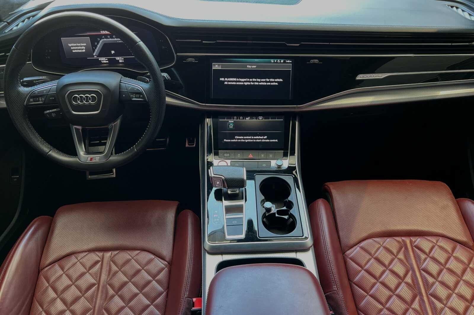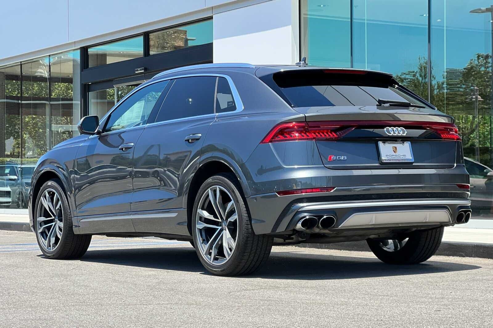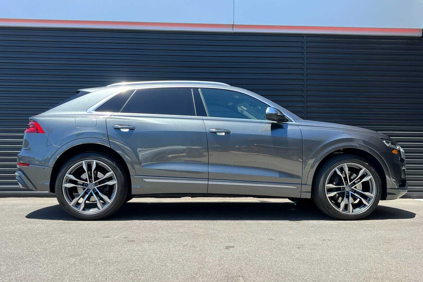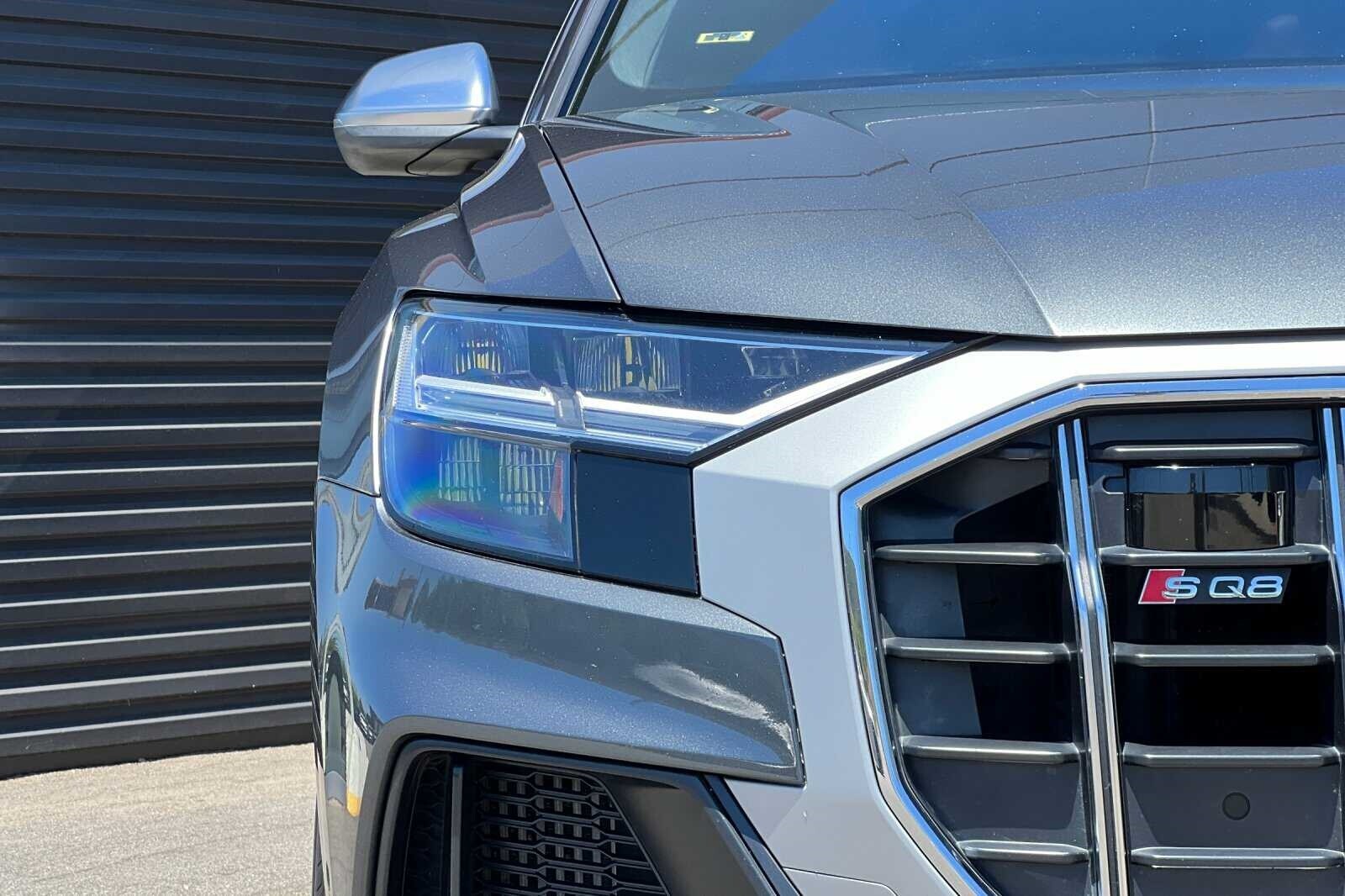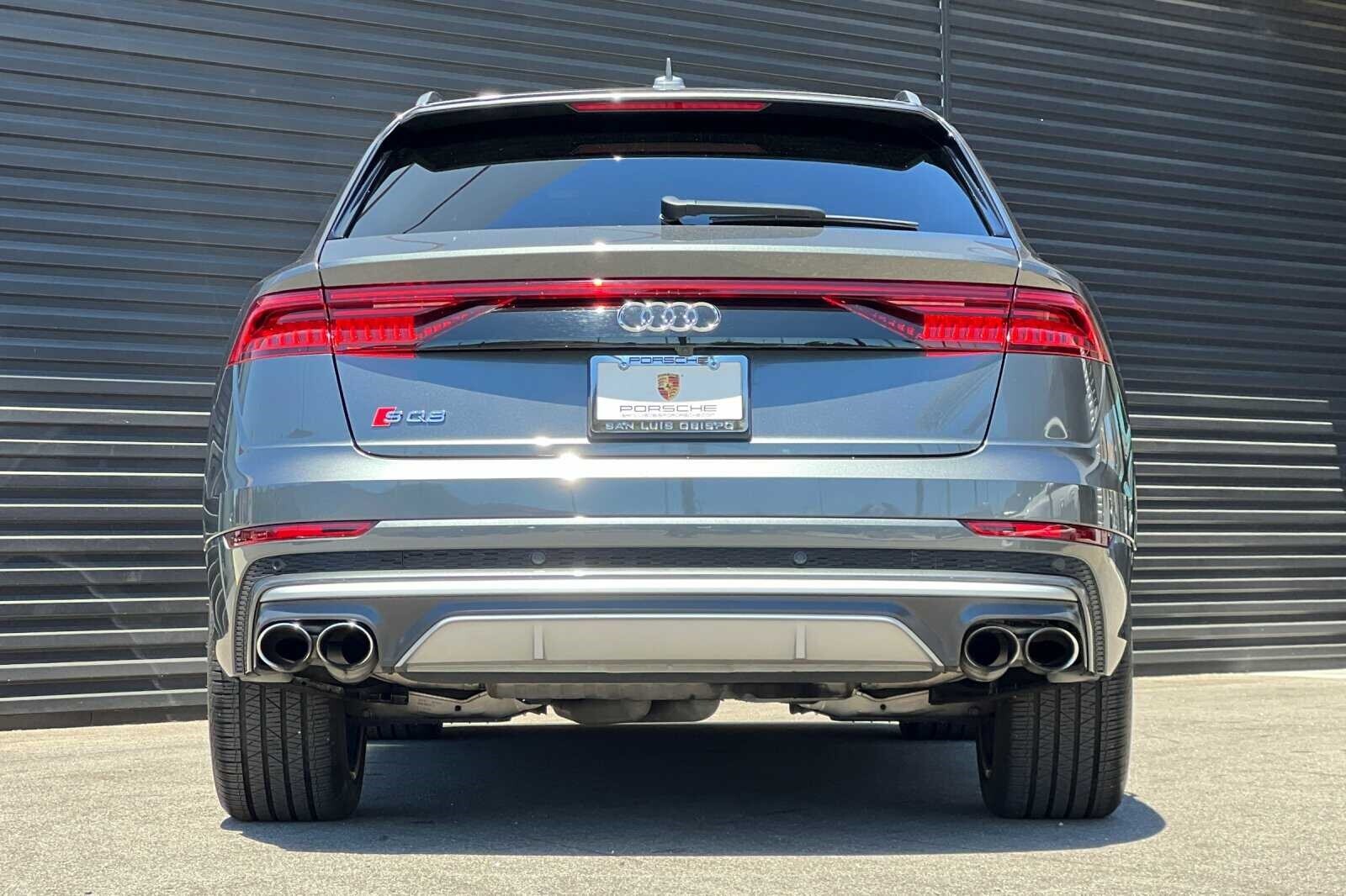 This Porsche San Luis Obispo 2020 Daytona Gray Pearl Effect Audi SQ8 4.0T Premium Plus AWD is well equipped and includes these features and benefits: 17 Speakers, 4-Wheel Disc Brakes, ABS brakes, Adaptive suspension, Air Conditioning, Alloy wheels, AM/FM radio: SiriusXM, Audi smartphone interface (Apple CarPlay/Android Auto), Auto High-beam Headlights, Auto-dimming door mirrors, Auto-dimming Rear-View mirror, Auto-leveling suspension, Automatic temperature control, Brake assist, Bumpers: body-color, Compass, Delay-off headlights, Driver door bin, Driver vanity mirror, Dual front impact airbags, Dual front side impact airbags, Electronic Stability Control, Emergency communication system: Audi connect CARE, PRIME & PLUS, Four wheel independent suspension, Front anti-roll bar, Front Bucket Seats, Front Center Armrest, Front dual zone A/C, Front fog lights, Front reading lights, Fully automatic headlights, Garage door transmitter: HomeLink, Heated & Ventilated S Sport Seats, Heated door mirrors, Heated front seats, Heated steering wheel, Illuminated entry, Leather Shift Knob, Leather steering wheel, Low tire pressure warning, Memory seat, Navigation system: MMI Navigation plus, Occupant sensing airbag, Outside temperature display, Overhead airbag, Overhead console, Panic alarm, Passenger door bin, Passenger vanity mirror, Power door mirrors, Power driver seat, Power Liftgate, Power moonroof: Panoramic, Power passenger seat, Power steering, Power windows, Radio data system, Radio: Bang & Olufsen 3D Premium Sound System, Rain sensing wipers, Rear air conditioning, Rear anti-roll bar, Rear dual zone A/C, Rear fog lights, Rear reading lights, Rear seat center armrest, Rear window defroster, Rear window wiper, Remote keyless entry, Roof rack: rails only, Security system, Speed control, Speed-sensing steering, Split folding rear seat, Spoiler, Steering wheel memory, Steering wheel mounted audio controls, Tachometer, TBD Axle Ratio, Telescoping steering wheel, Tilt steering wheel, Traction control, Trip computer, Turn signal indicator mirrors, Valcona Leather Seating Surfaces, Variably intermittent wipers, Ventilated front seats, and Wheels: 21 10-V-Spoke Partly Polished S Design.