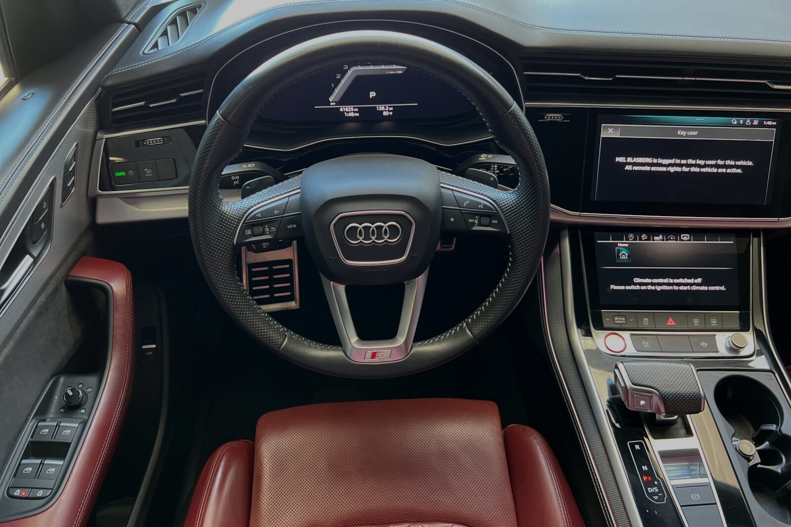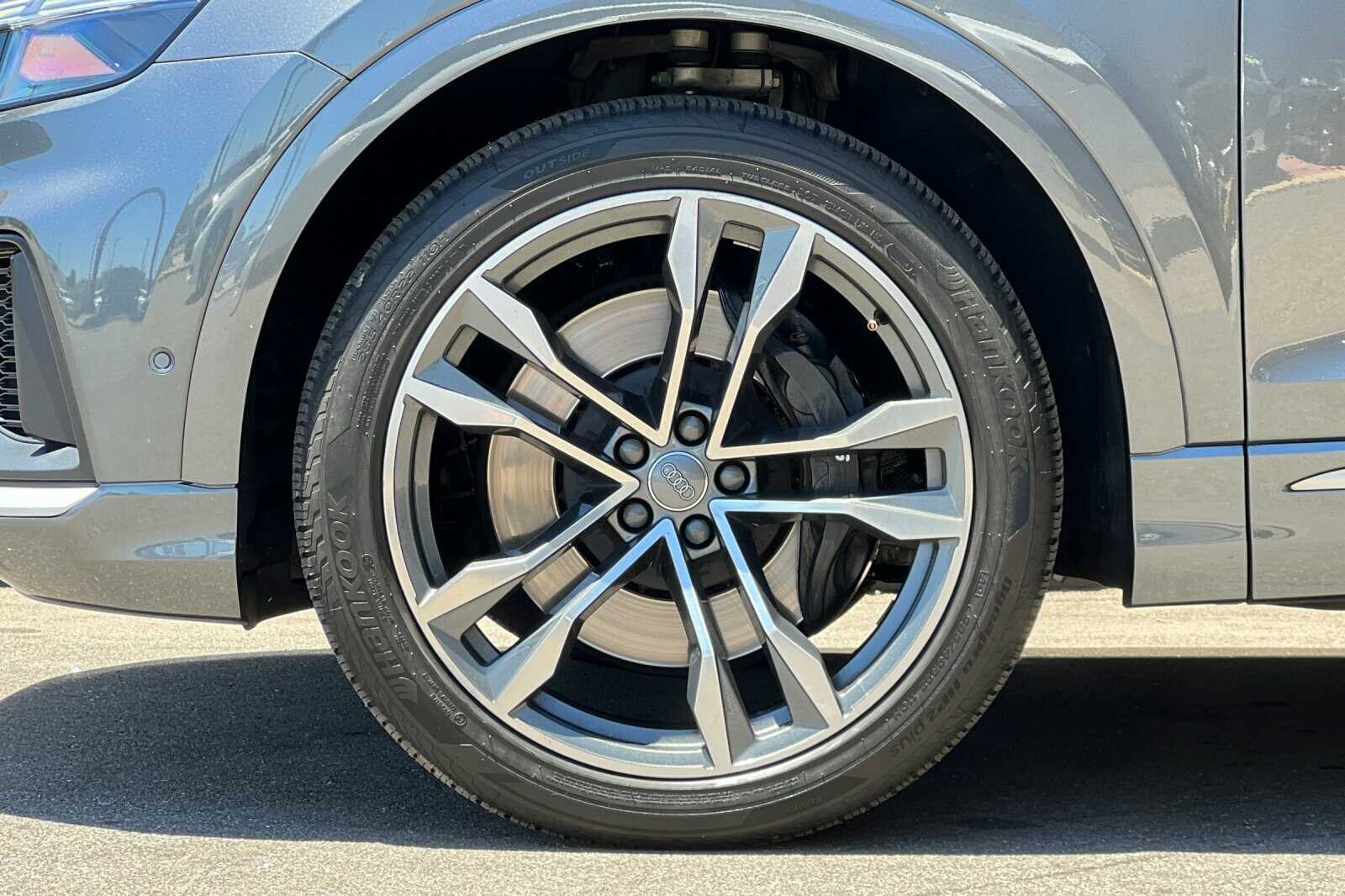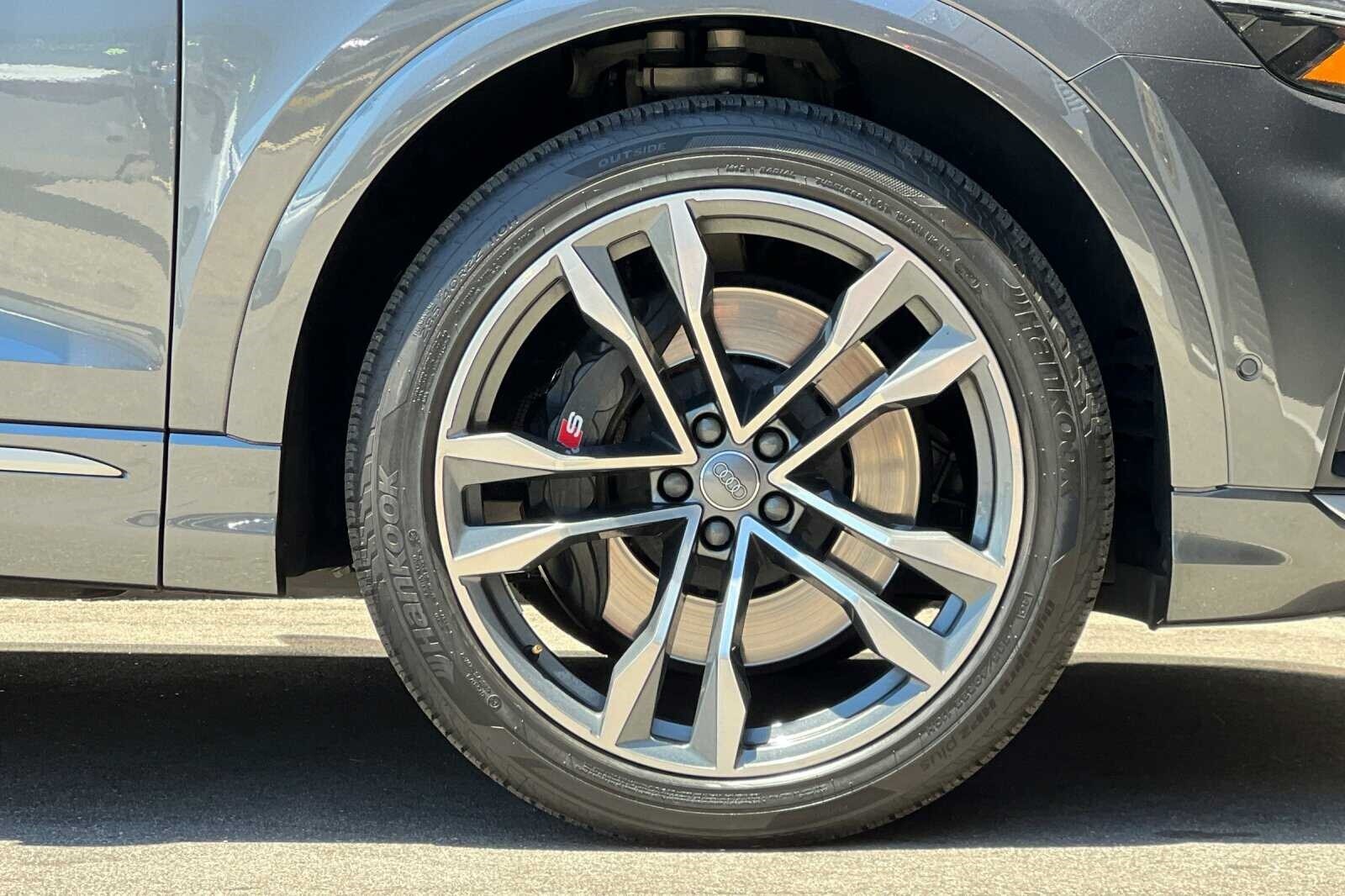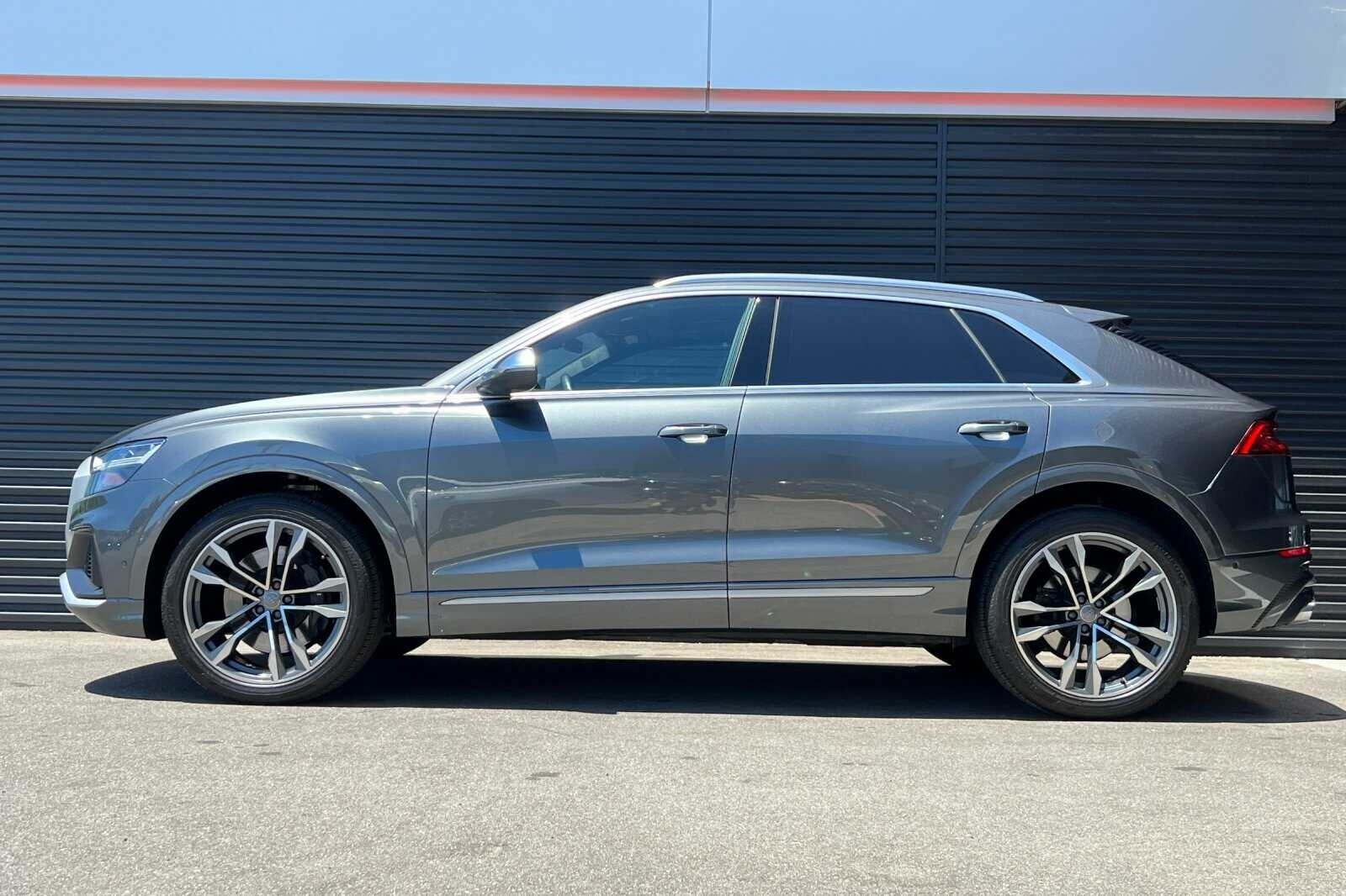 This Porsche San Luis Obispo 2020 Daytona Gray Pearl Effect Audi SQ8 4.0T Premium Plus AWD is well equipped and includes these features and benefits: 17 Speakers, 4-Wheel Disc Brakes, ABS brakes, Adaptive suspension, Air Conditioning, Alloy wheels, AM/FM radio: SiriusXM, Audi smartphone interface (Apple CarPlay/Android Auto), Auto High-beam Headlights, Auto-dimming door mirrors, Auto-dimming Rear-View mirror, Auto-leveling suspension, Automatic temperature control, Brake assist, Bumpers: body-color, Compass, Delay-off headlights, Driver door bin, Driver vanity mirror, Dual front impact airbags, Dual front side impact airbags, Electronic Stability Control, Emergency communication system: Audi connect CARE, PRIME & PLUS, Four wheel independent suspension, Front anti-roll bar, Front Bucket Seats, Front Center Armrest, Front dual zone A/C, Front fog lights, Front reading lights, Fully automatic headlights, Garage door transmitter: HomeLink, Heated & Ventilated S Sport Seats, Heated door mirrors, Heated front seats, Heated steering wheel, Illuminated entry, Leather Shift Knob, Leather steering wheel, Low tire pressure warning, Memory seat, Navigation system: MMI Navigation plus, Occupant sensing airbag, Outside temperature display, Overhead airbag, Overhead console, Panic alarm, Passenger door bin, Passenger vanity mirror, Power door mirrors, Power driver seat, Power Liftgate, Power moonroof: Panoramic, Power passenger seat, Power steering, Power windows, Radio data system, Radio: Bang & Olufsen 3D Premium Sound System, Rain sensing wipers, Rear air conditioning, Rear anti-roll bar, Rear dual zone A/C, Rear fog lights, Rear reading lights, Rear seat center armrest, Rear window defroster, Rear window wiper, Remote keyless entry, Roof rack: rails only, Security system, Speed control, Speed-sensing steering, Split folding rear seat, Spoiler, Steering wheel memory, Steering wheel mounted audio controls, Tachometer, TBD Axle Ratio, Telescoping steering wheel, Tilt steering wheel, Traction control, Trip computer, Turn signal indicator mirrors, Valcona Leather Seating Surfaces, Variably intermittent wipers, Ventilated front seats, and Wheels: 21 10-V-Spoke Partly Polished S Design.