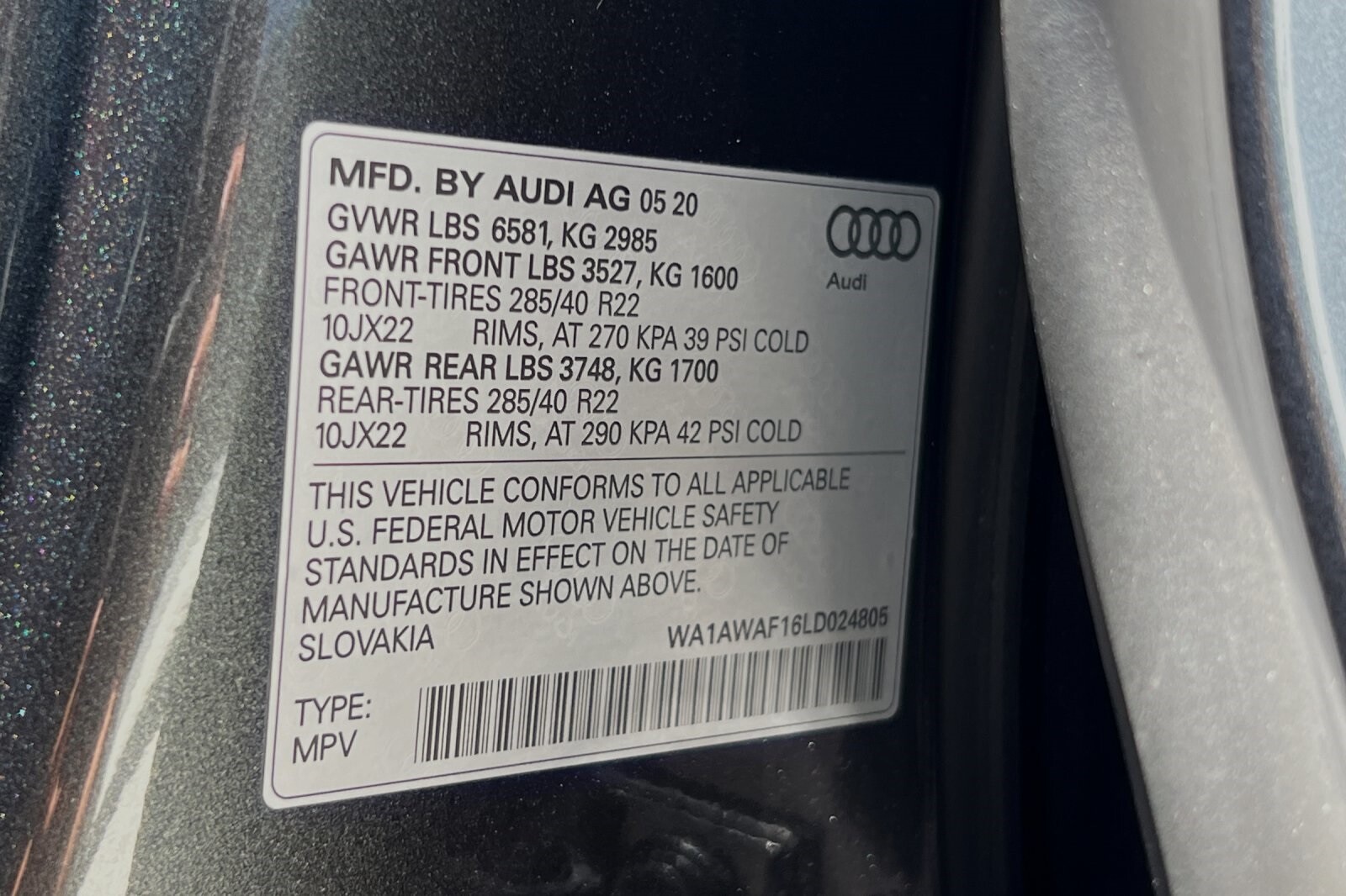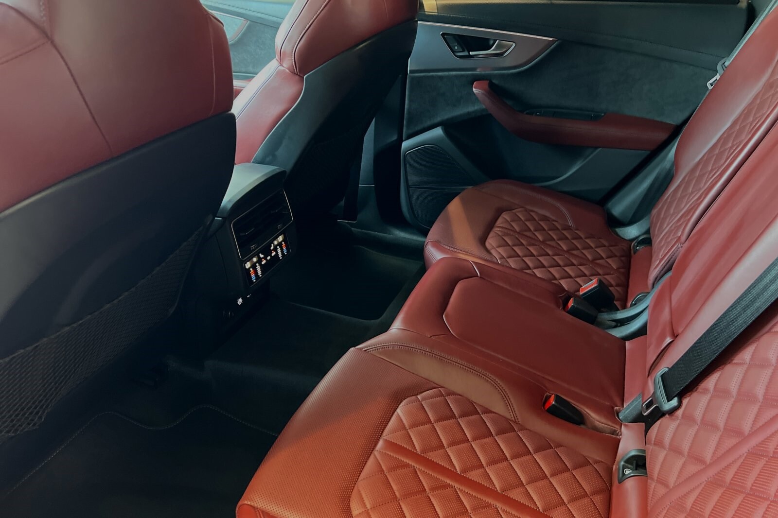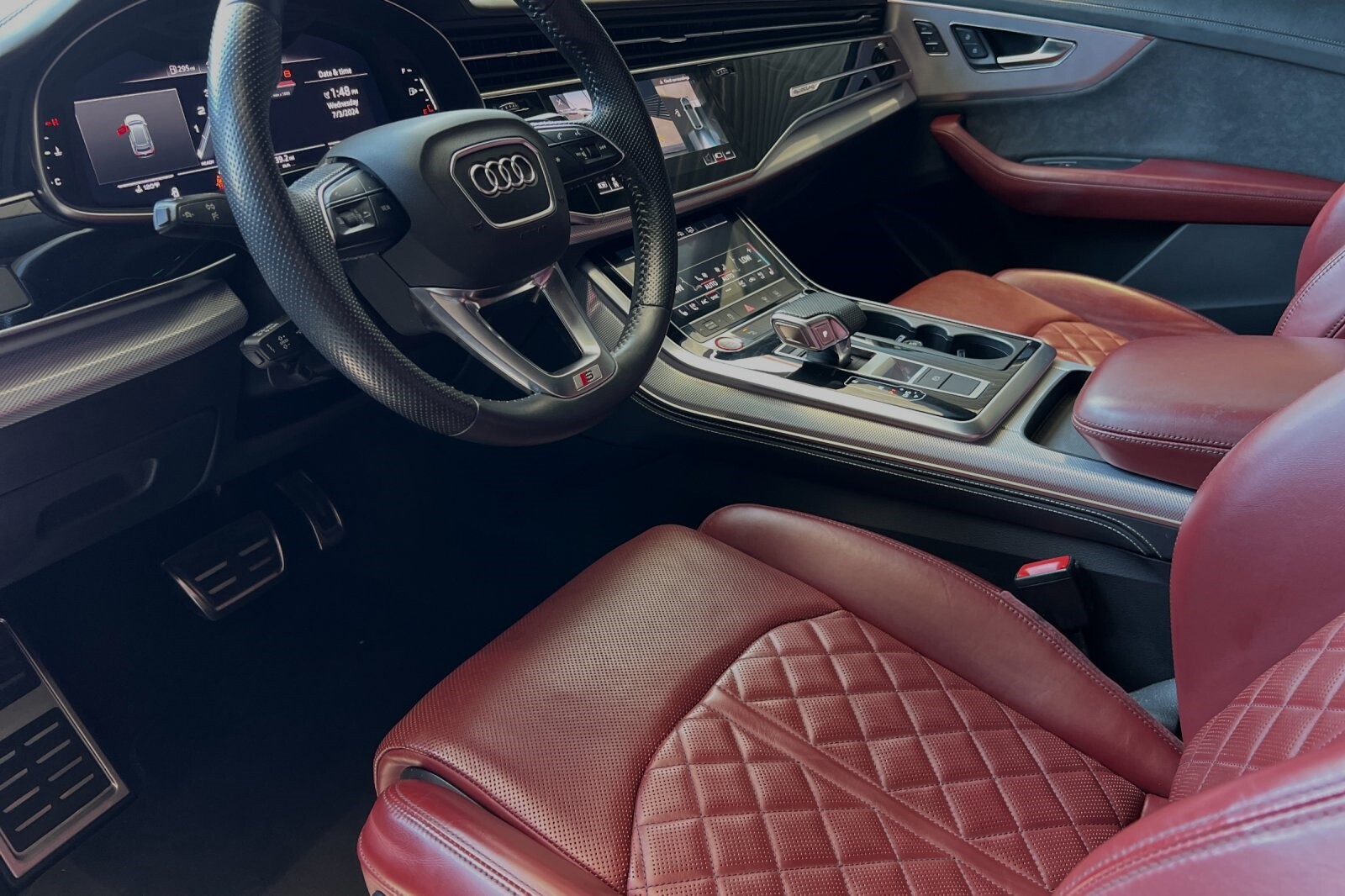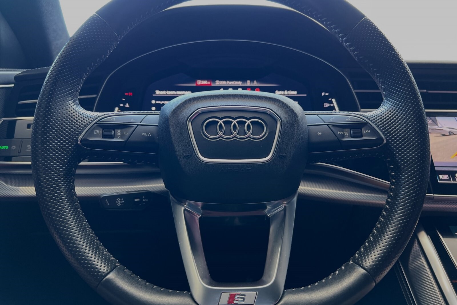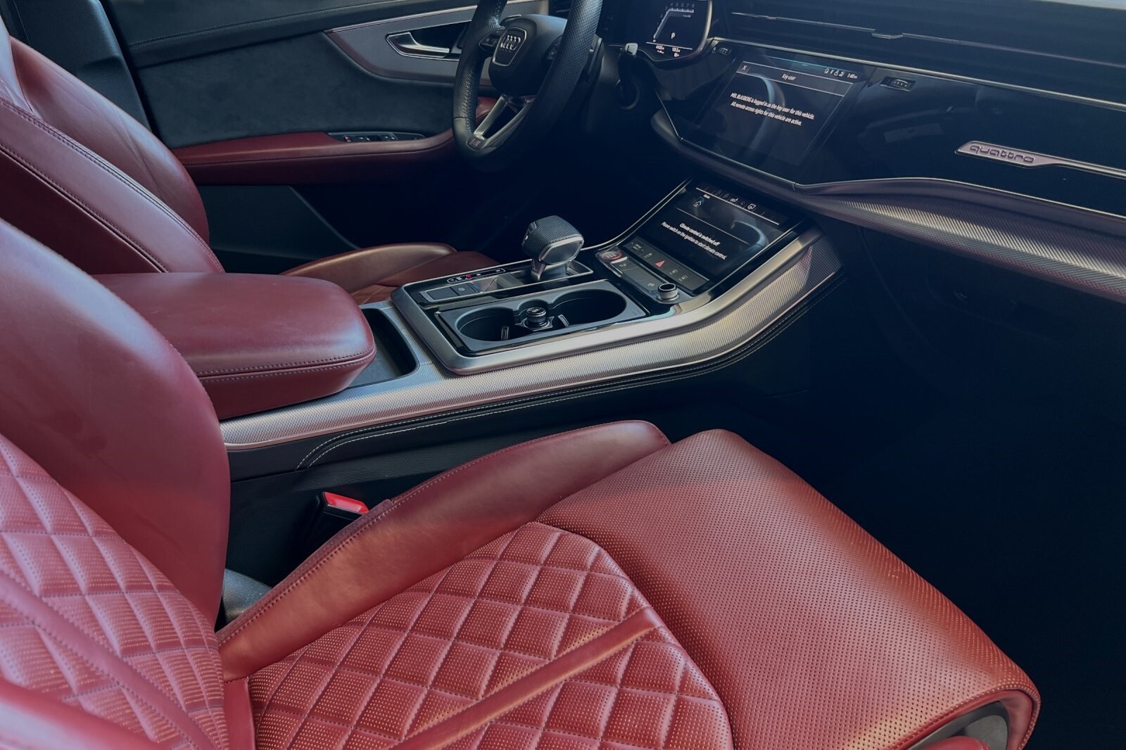 This Porsche San Luis Obispo 2020 Daytona Gray Pearl Effect Audi SQ8 4.0T Premium Plus AWD is well equipped and includes these features and benefits: 17 Speakers, 4-Wheel Disc Brakes, ABS brakes, Adaptive suspension, Air Conditioning, Alloy wheels, AM/FM radio: SiriusXM, Audi smartphone interface (Apple CarPlay/Android Auto), Auto High-beam Headlights, Auto-dimming door mirrors, Auto-dimming Rear-View mirror, Auto-leveling suspension, Automatic temperature control, Brake assist, Bumpers: body-color, Compass, Delay-off headlights, Driver door bin, Driver vanity mirror, Dual front impact airbags, Dual front side impact airbags, Electronic Stability Control, Emergency communication system: Audi connect CARE, PRIME & PLUS, Four wheel independent suspension, Front anti-roll bar, Front Bucket Seats, Front Center Armrest, Front dual zone A/C, Front fog lights, Front reading lights, Fully automatic headlights, Garage door transmitter: HomeLink, Heated & Ventilated S Sport Seats, Heated door mirrors, Heated front seats, Heated steering wheel, Illuminated entry, Leather Shift Knob, Leather steering wheel, Low tire pressure warning, Memory seat, Navigation system: MMI Navigation plus, Occupant sensing airbag, Outside temperature display, Overhead airbag, Overhead console, Panic alarm, Passenger door bin, Passenger vanity mirror, Power door mirrors, Power driver seat, Power Liftgate, Power moonroof: Panoramic, Power passenger seat, Power steering, Power windows, Radio data system, Radio: Bang & Olufsen 3D Premium Sound System, Rain sensing wipers, Rear air conditioning, Rear anti-roll bar, Rear dual zone A/C, Rear fog lights, Rear reading lights, Rear seat center armrest, Rear window defroster, Rear window wiper, Remote keyless entry, Roof rack: rails only, Security system, Speed control, Speed-sensing steering, Split folding rear seat, Spoiler, Steering wheel memory, Steering wheel mounted audio controls, Tachometer, TBD Axle Ratio, Telescoping steering wheel, Tilt steering wheel, Traction control, Trip computer, Turn signal indicator mirrors, Valcona Leather Seating Surfaces, Variably intermittent wipers, Ventilated front seats, and Wheels: 21 10-V-Spoke Partly Polished S Design.