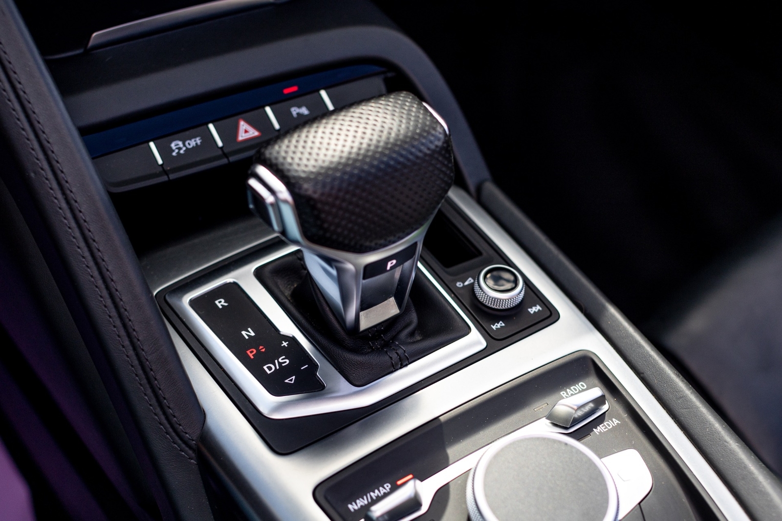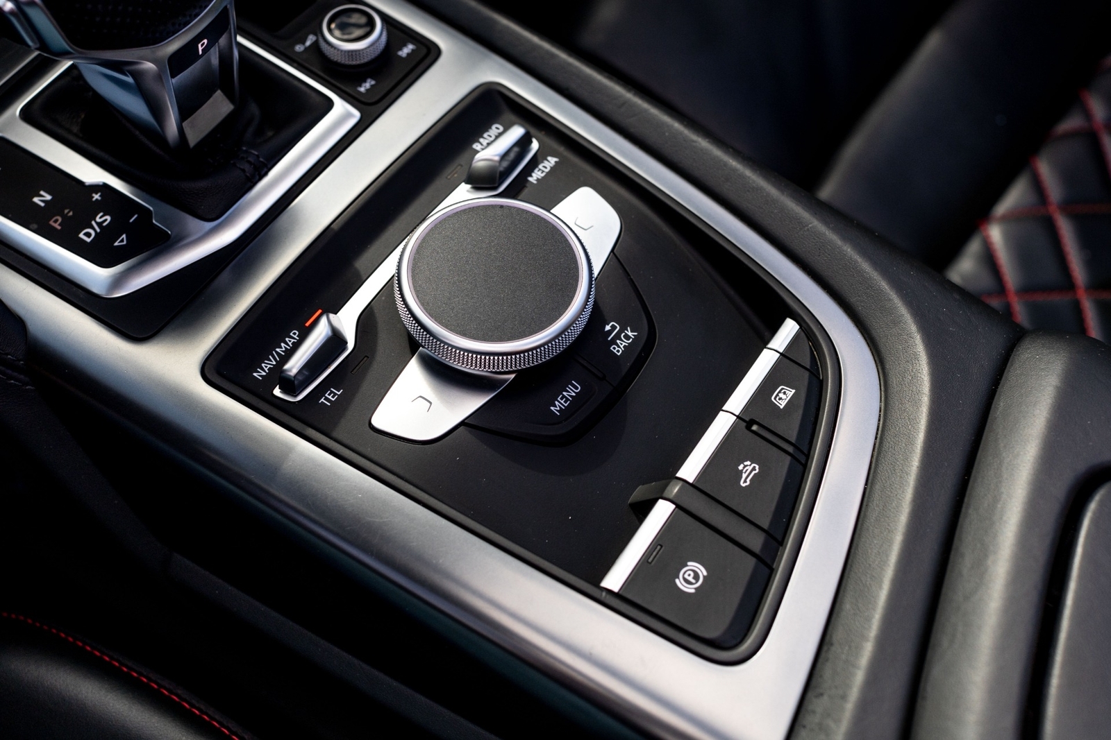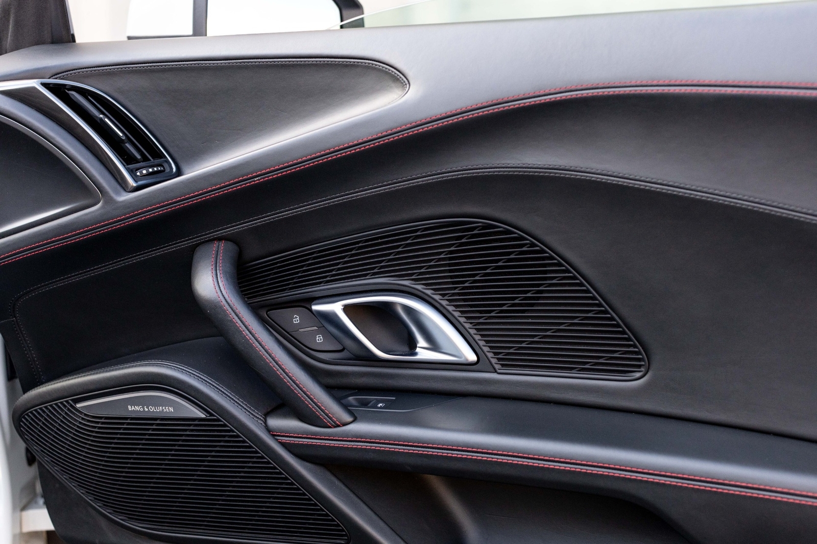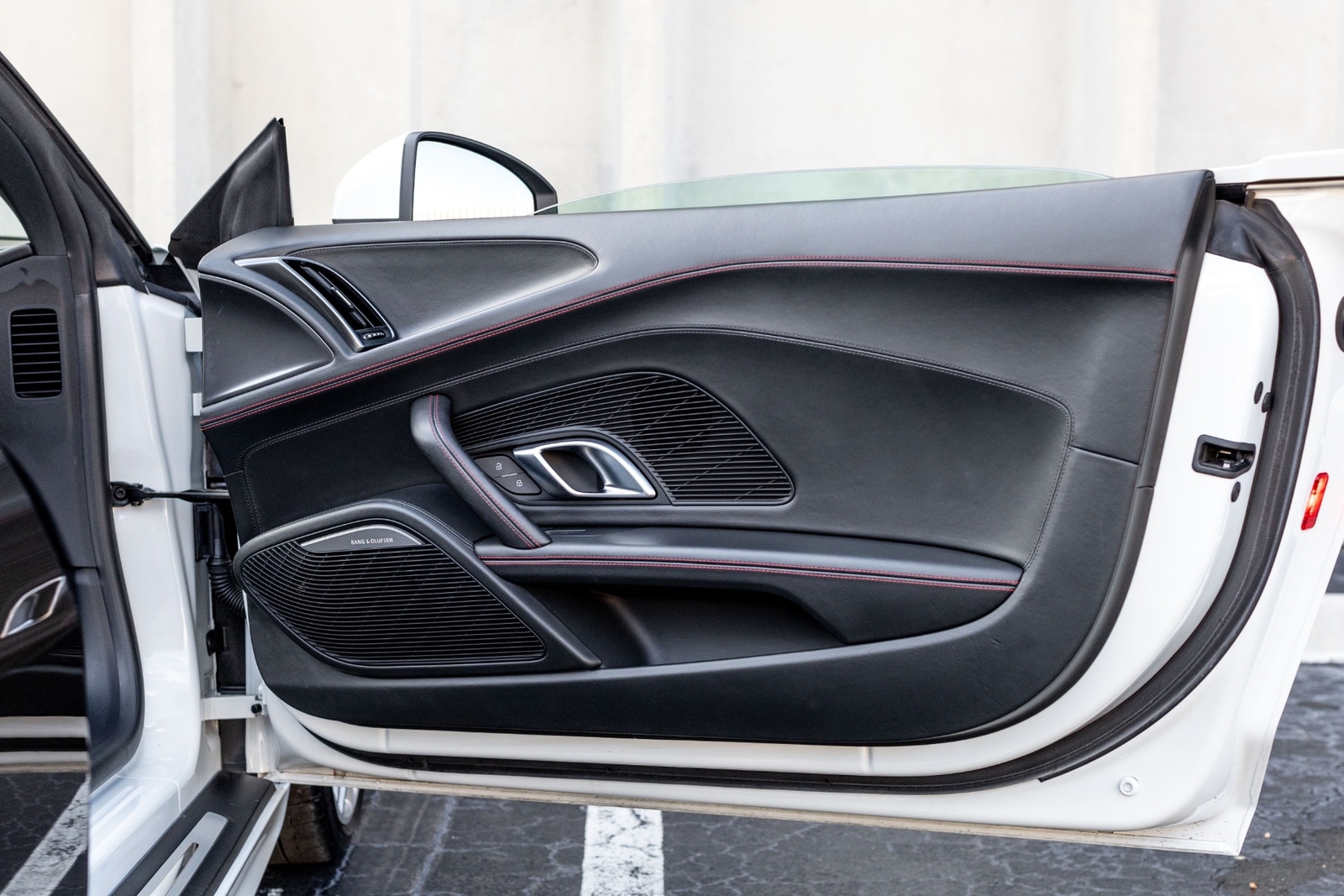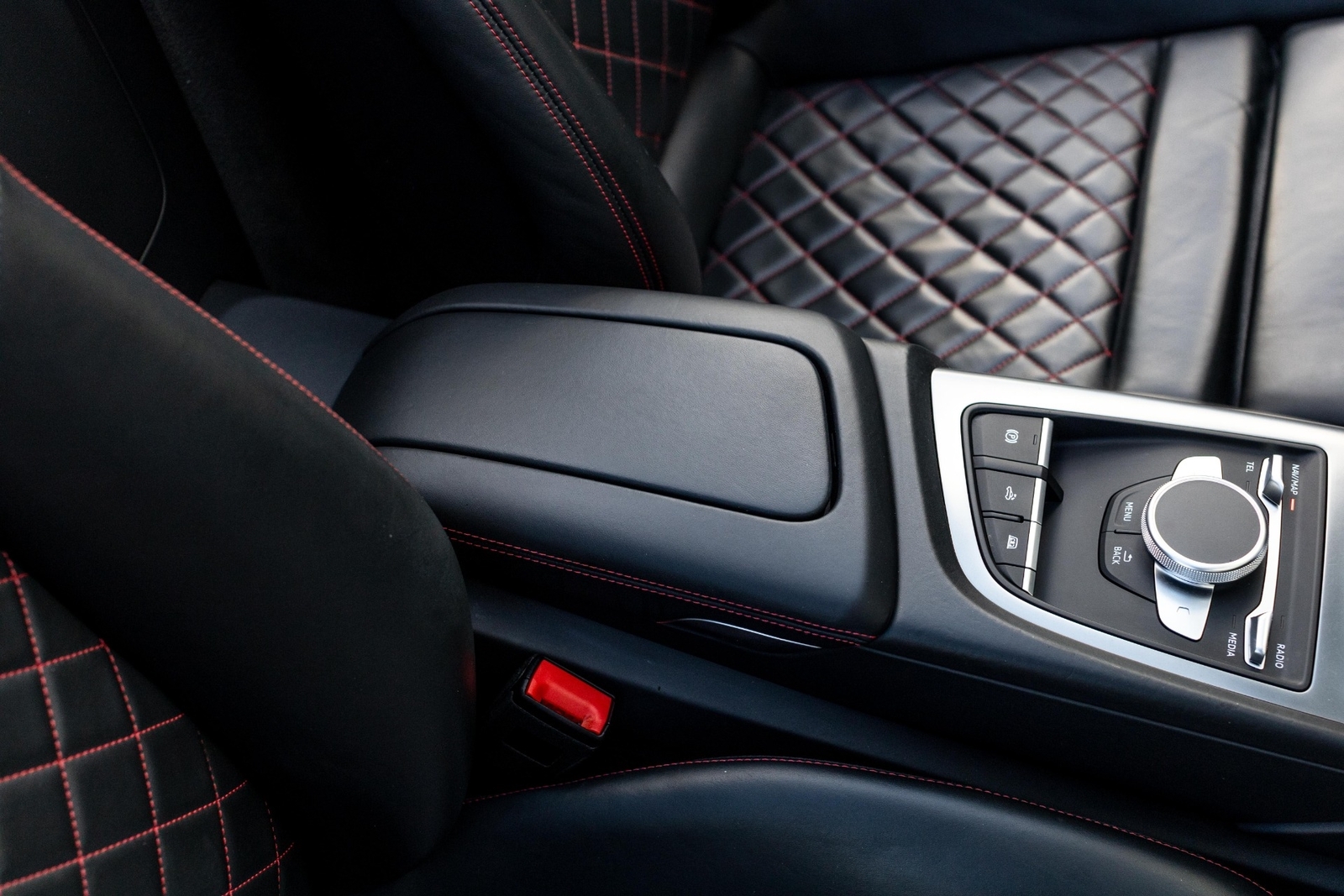 BLACK INTERIOR / EXPRESS RED STITCHING.