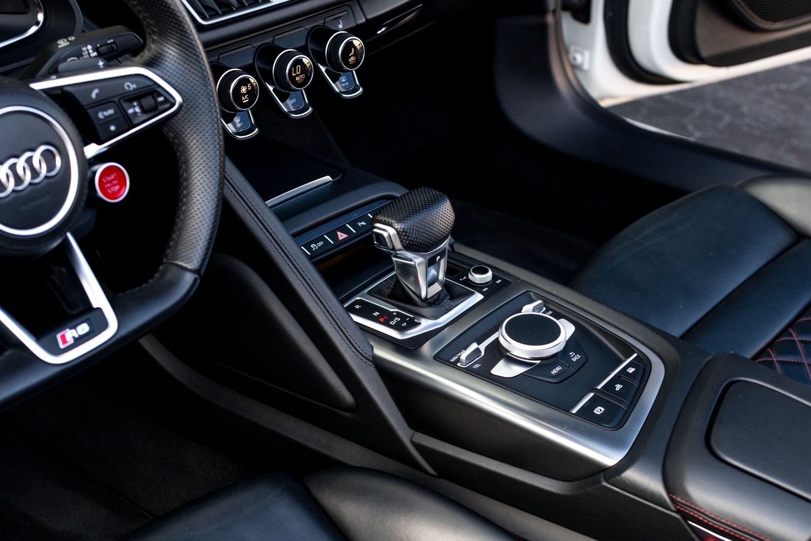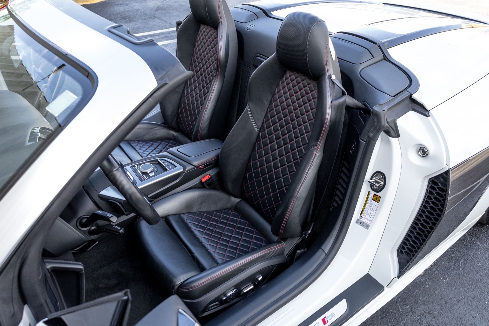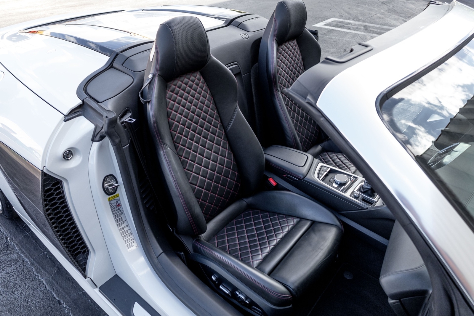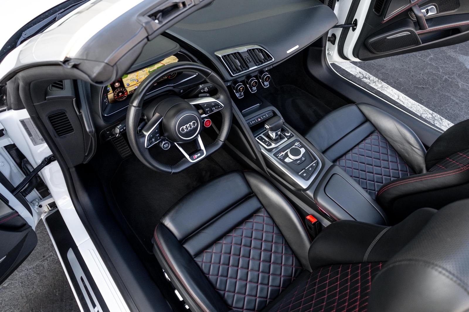 Very well specced 2017 R8 V10 Spyder in Audi Exclusive white paint. Along with being an exclusive color, this R8 has the exterior carbon pack, diamond stitch leather pack, 20" premium wheels, and more. The red diamond stitching on the seats screams class, popping out from the neutral exterior and interior. Make this beautiful 2017 R8 Spyder yours while you still can.