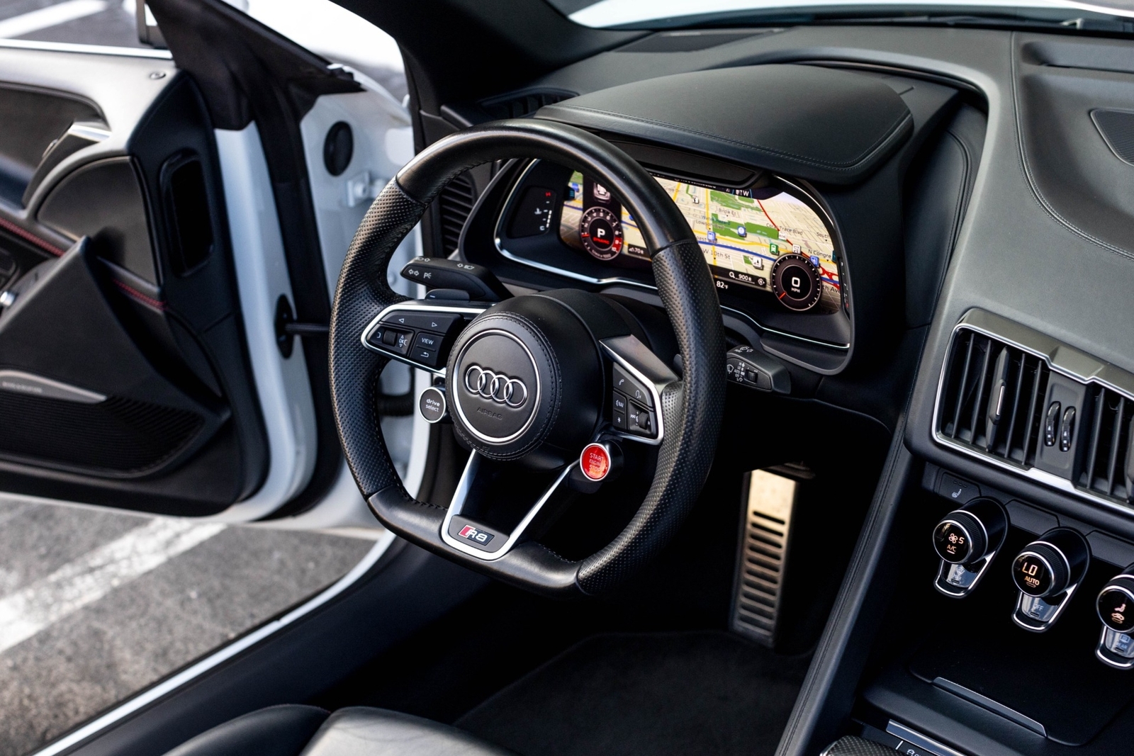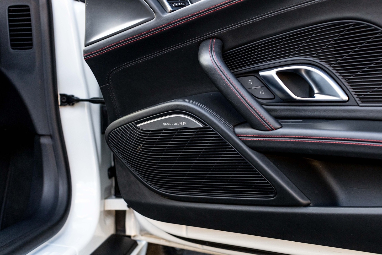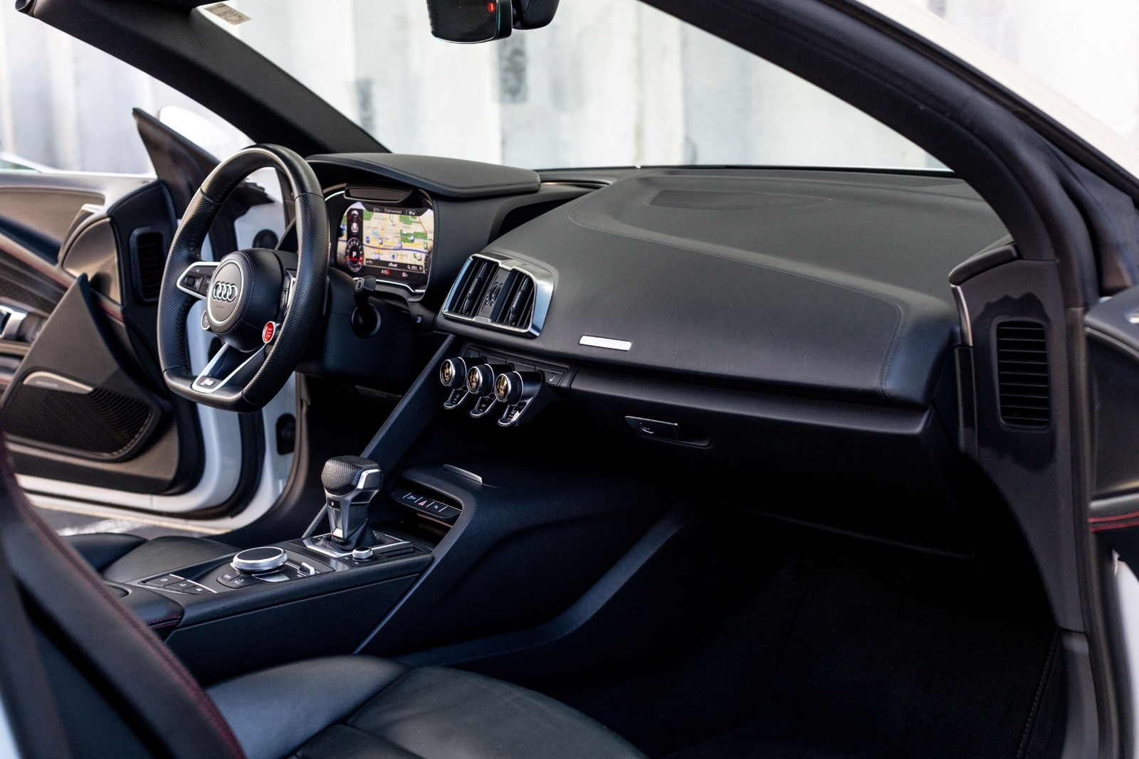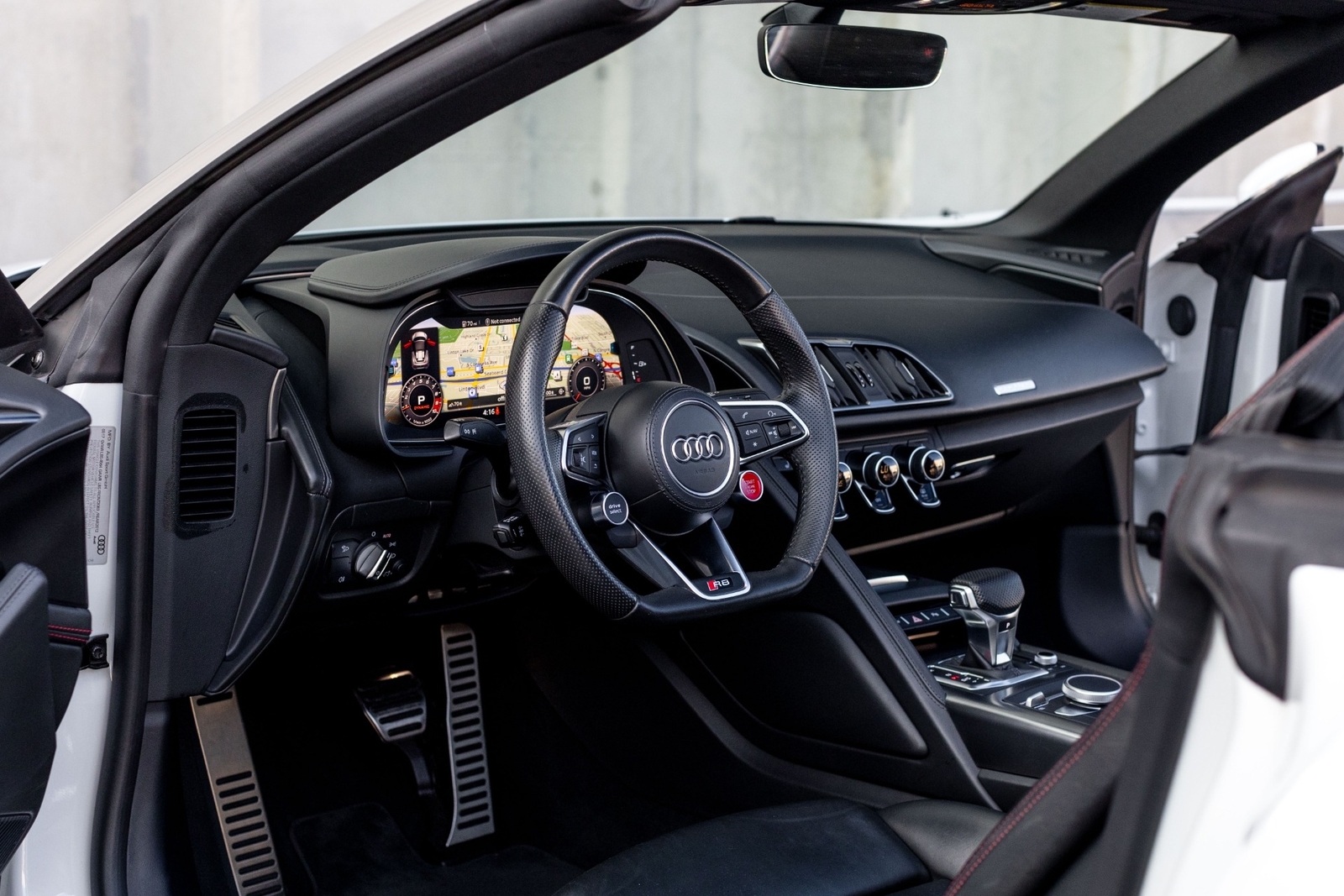 Very well specced 2017 R8 V10 Spyder in Audi Exclusive white paint. Along with being an exclusive color, this R8 has the exterior carbon pack, diamond stitch leather pack, 20" premium wheels, and more. The red diamond stitching on the seats screams class, popping out from the neutral exterior and interior. Make this beautiful 2017 R8 Spyder yours while you still can.