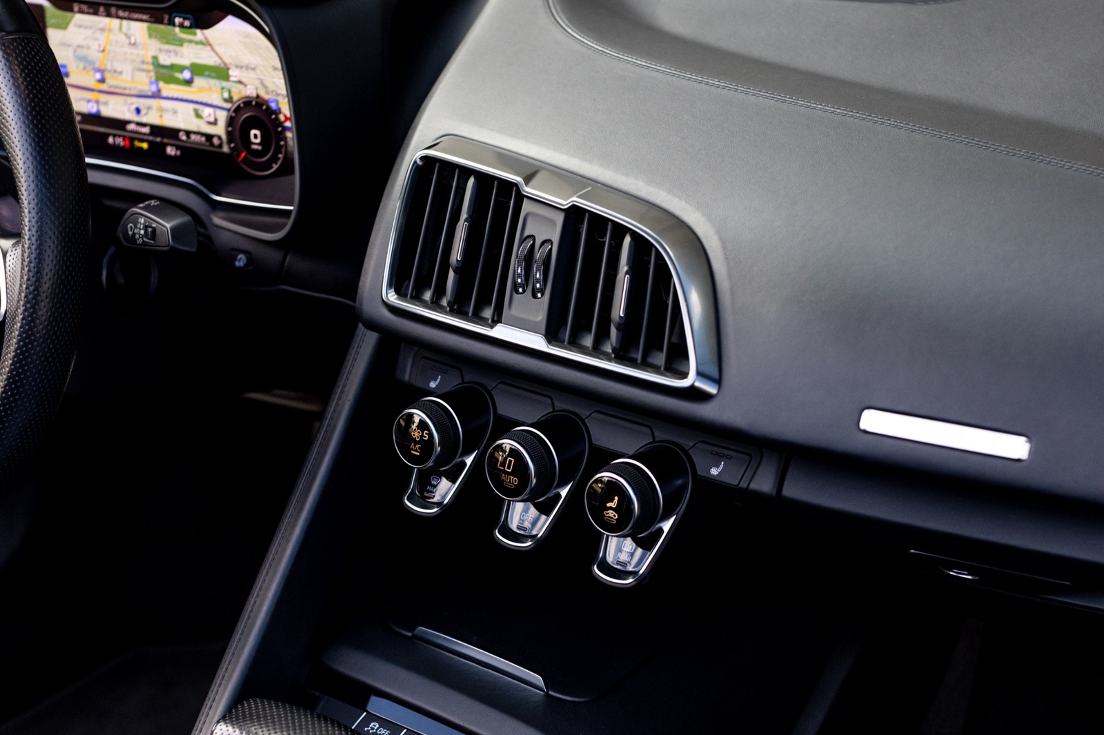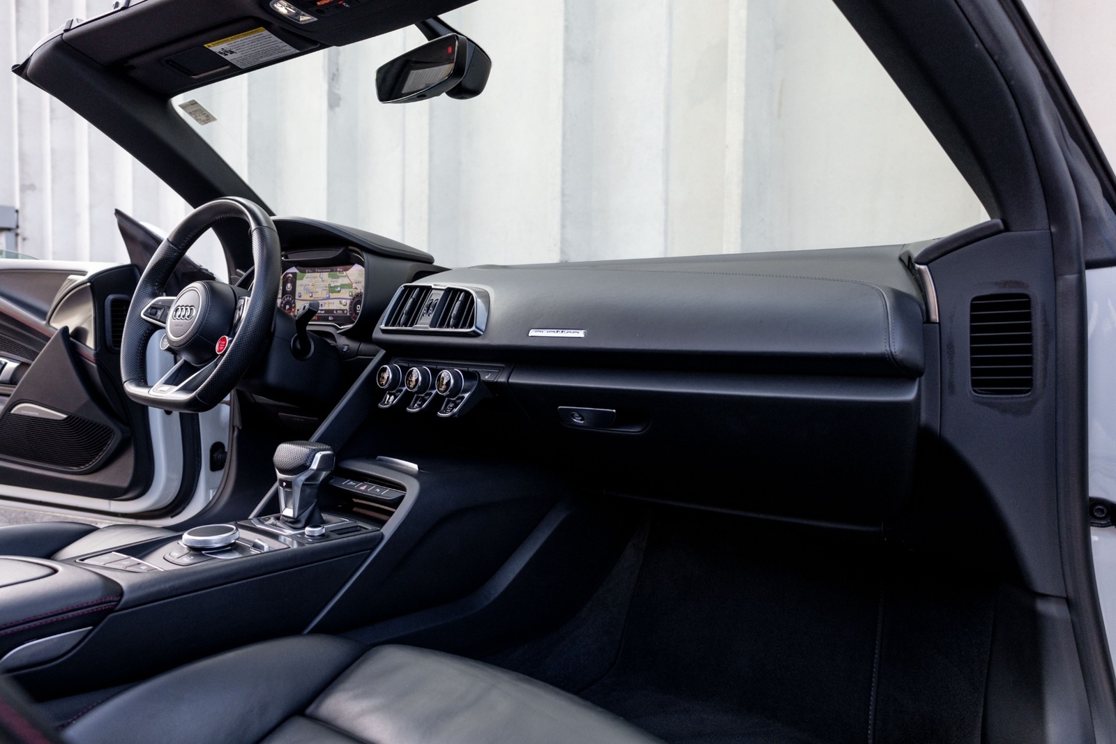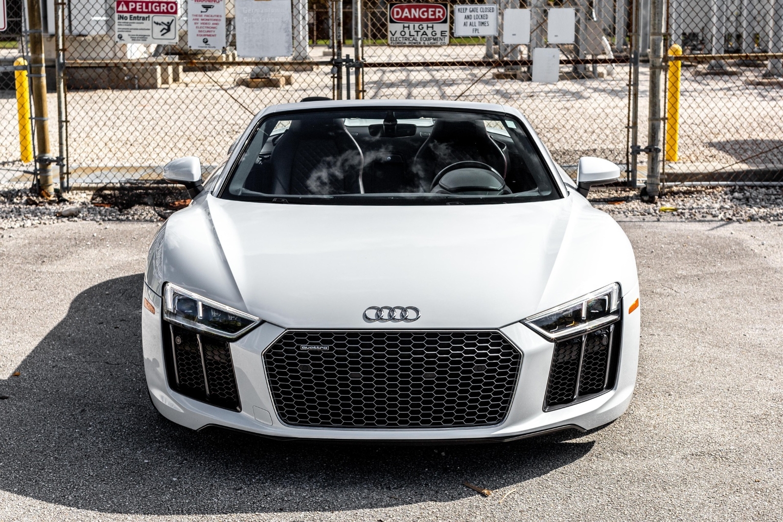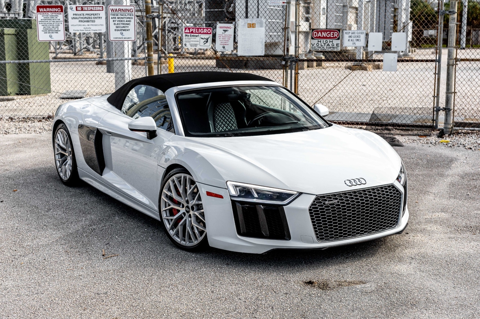 Very well specced 2017 R8 V10 Spyder in Audi Exclusive white paint. Along with being an exclusive color, this R8 has the exterior carbon pack, diamond stitch leather pack, 20" premium wheels, and more. The red diamond stitching on the seats screams class, popping out from the neutral exterior and interior. Make this beautiful 2017 R8 Spyder yours while you still can.