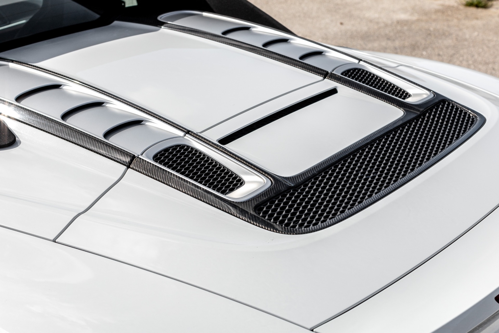 CARBON TRIMMED CONVERTIBLE TOP COMPARTMENT LID.