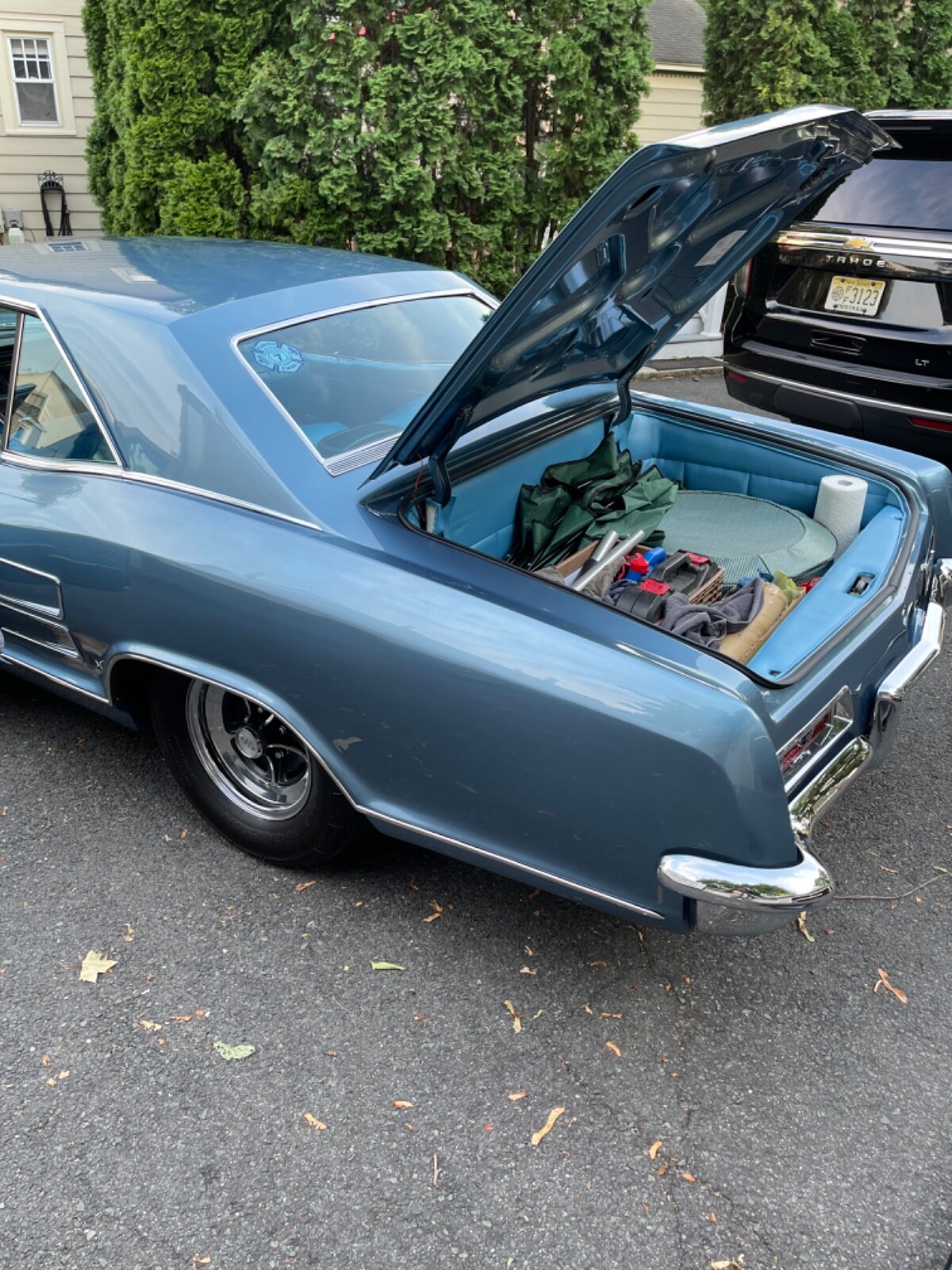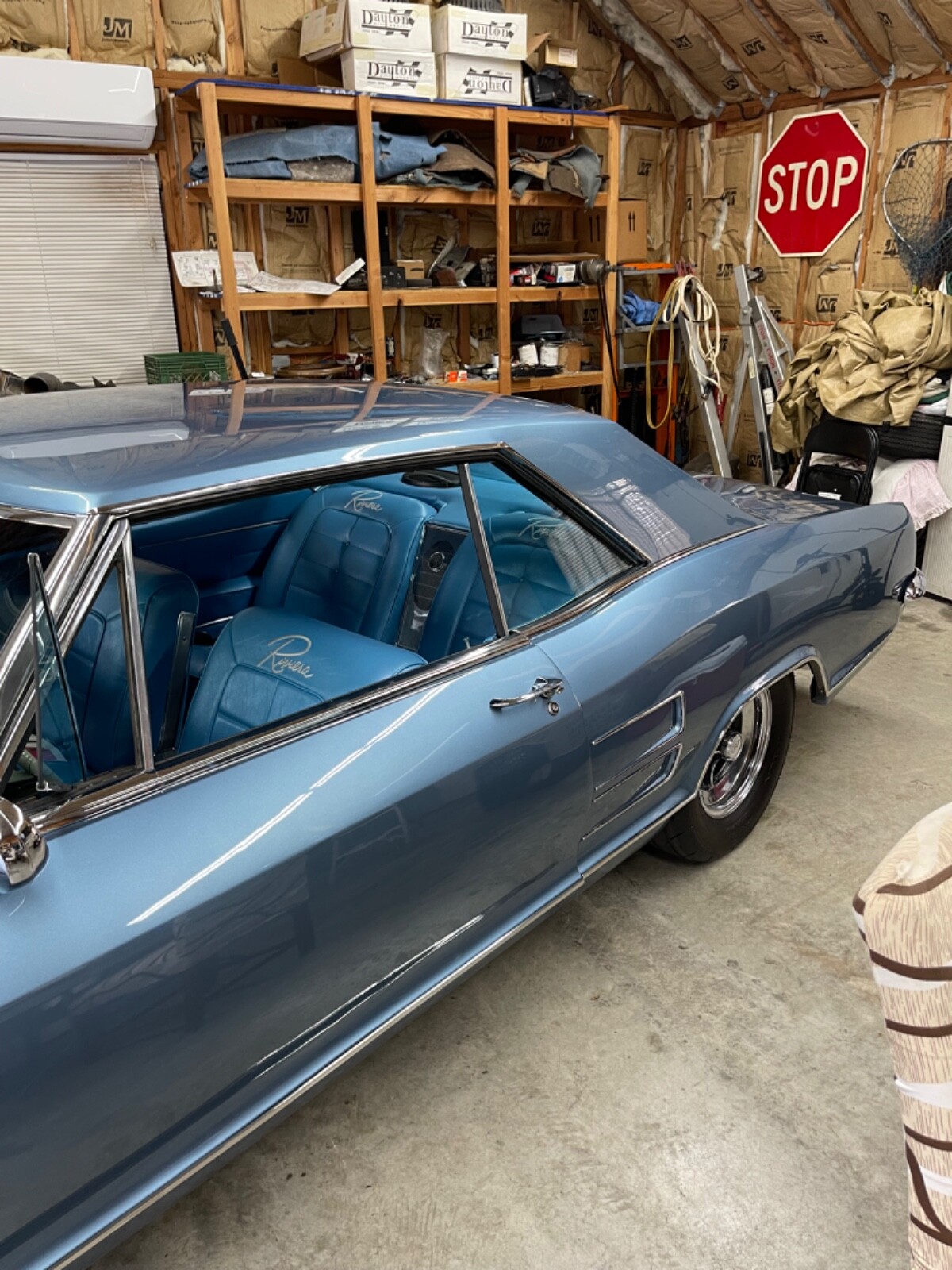 1964 Buick Riviera. Completely restored. No rust. Refinished Chrome, New Wilwood Disc brakes in the front. Drums in the back. New paint , reupholstered custom interior /trunk. Blutooth radio hidden in glovebox. New tires less than 1k miles. AC car. Comes with original heads / transmission/ valve covers and other engine parts. ENGINE IN THE CAR IS NOT INCLUDED. It will be pulled out. This is a rolling chassis complete. Clean title.