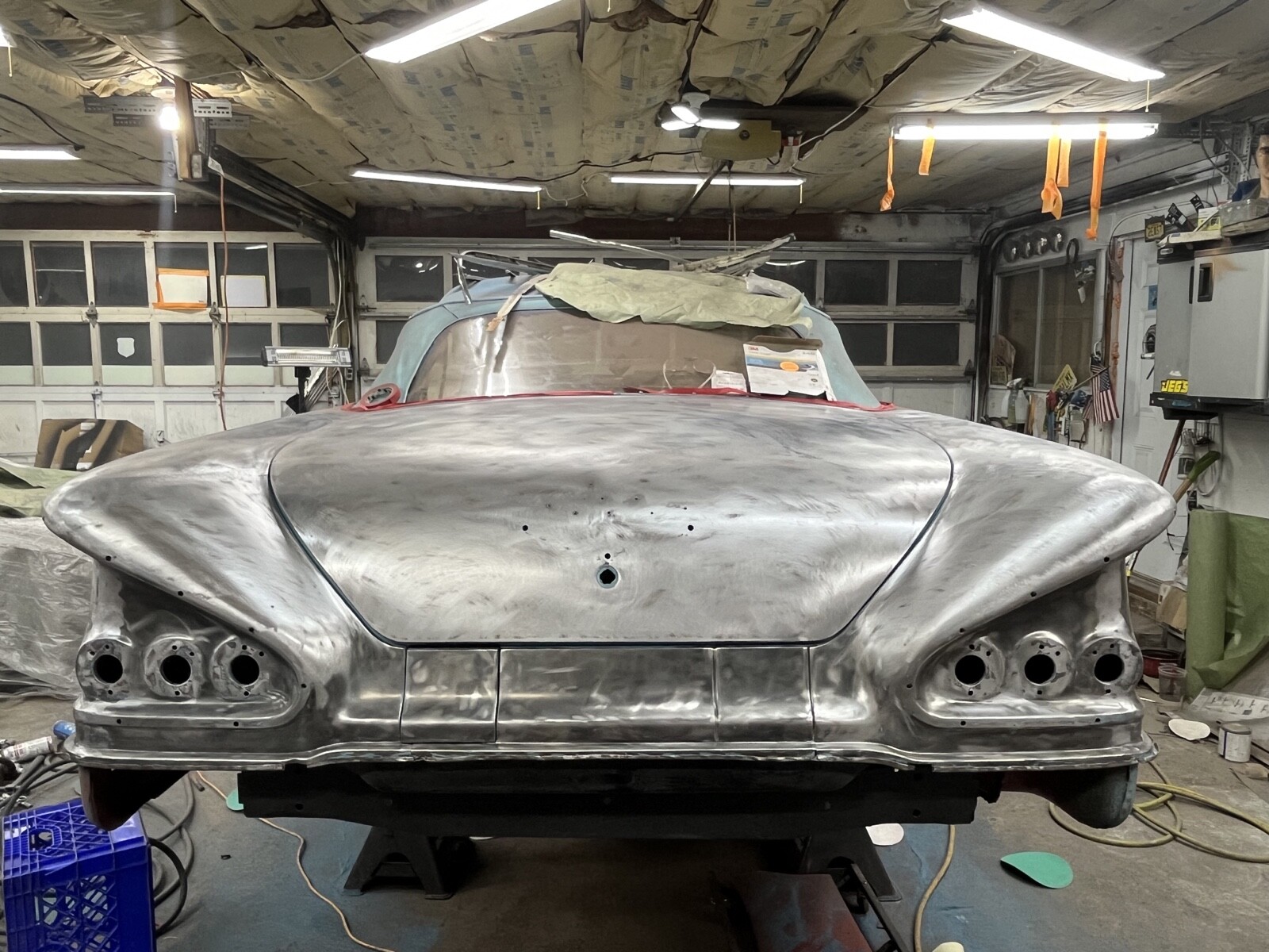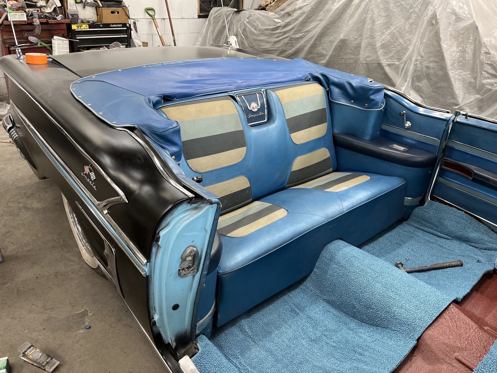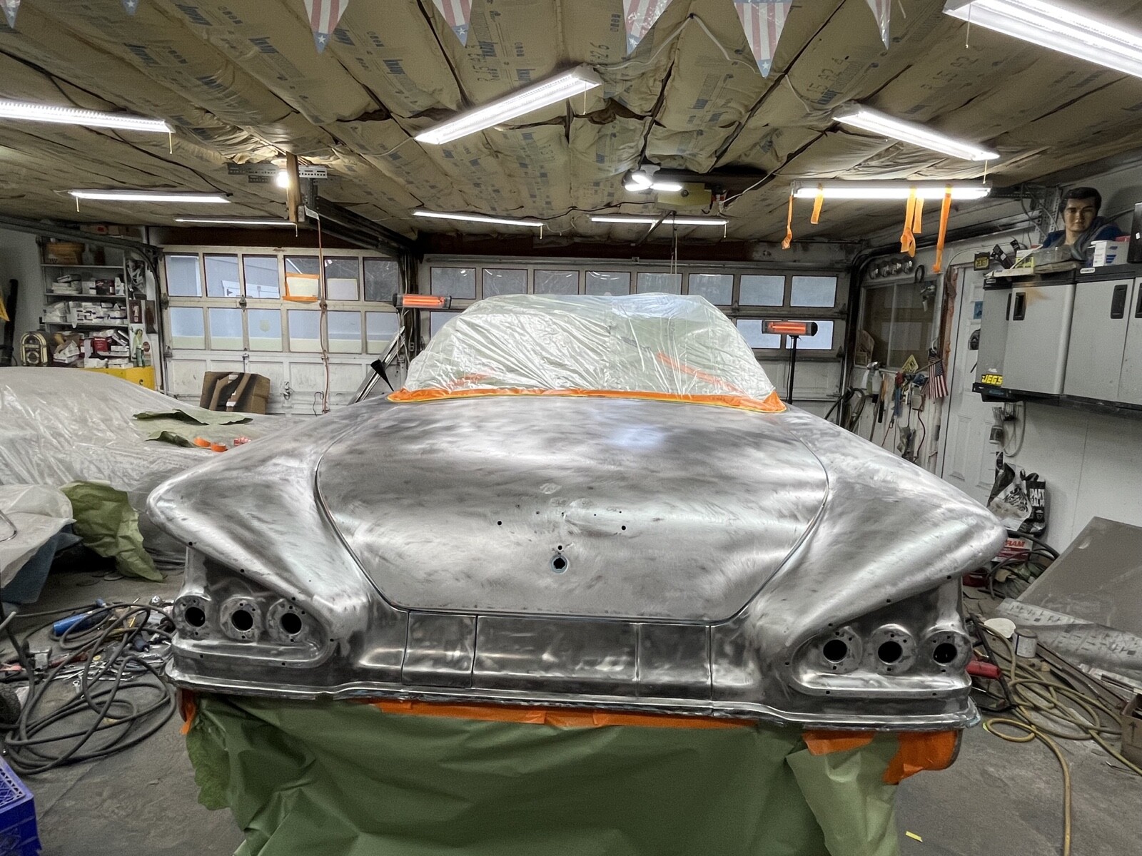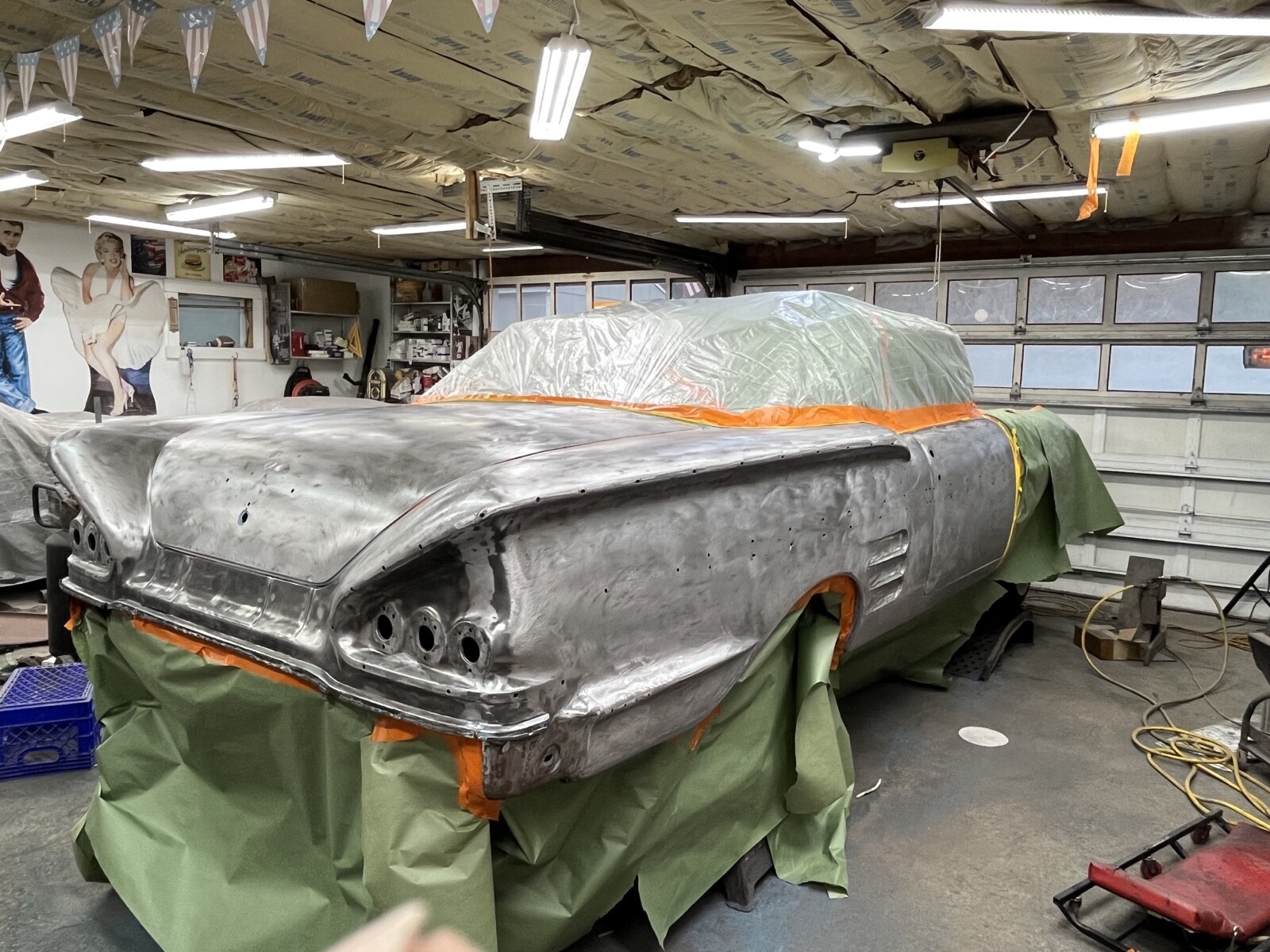 This is a turn key orginal car that has been properly prepared for paint . The car was stripped to the metal and the black you are seeing is epoxy prime to seal it . This is not a bondo special please study all the pictures of the process ! The car is restored and detailed underneath as well . Over 400 hours of work invested . This car is very very close to the finish line for final paint ! You can enjoy it the way it is right now today and drive it home to anywhere . Everything works including the clock ! This car is also a perfect blank canvas to finish her however you like . Factory colors are cashmere blue . Interior is all original and speaks volumes of how the car has been stored all its life . The car is ready for a cosmetic finish up or again cruise as is ! Serious buyers only may call me 2o1 five62 2o4five