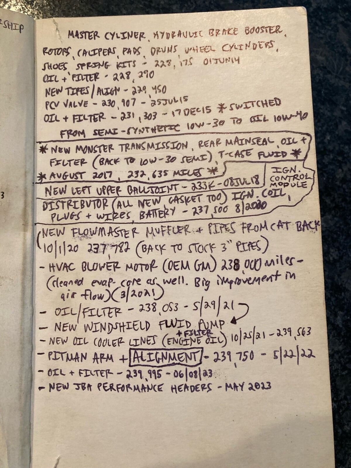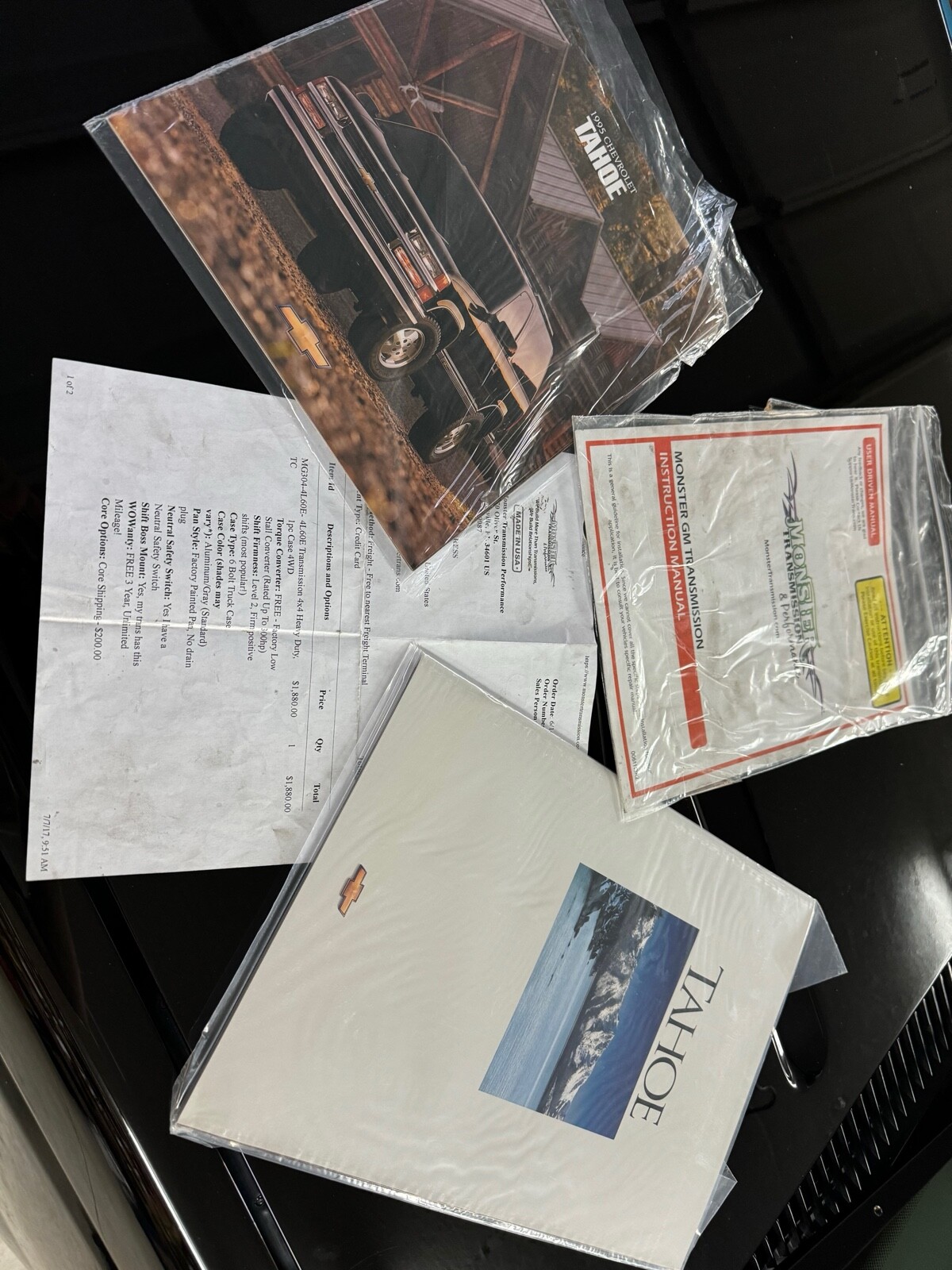 1995 Tahoe 2 Door 4x4 (Barn Doors) -North Carolina truck with no rot / rust -Just Inspected till 6/25 -Fresh Exterior Detail (Interior is exceptionally clean) -240,800 miles (new monster transmission installed at 232,635 miles) Runs Excellent - Zero Leaks -All stock except air filter, headers, and cat back exhaust (not annoyingly loud) -BFG All Terrains -Weather Tech Cover, Floor Mats, and Vent Visors -Misc extra spare parts from over the years -Body / Paint has some scratches and about 10 dings (not perfect but in good condition for 30 years old)Vehicle Details
