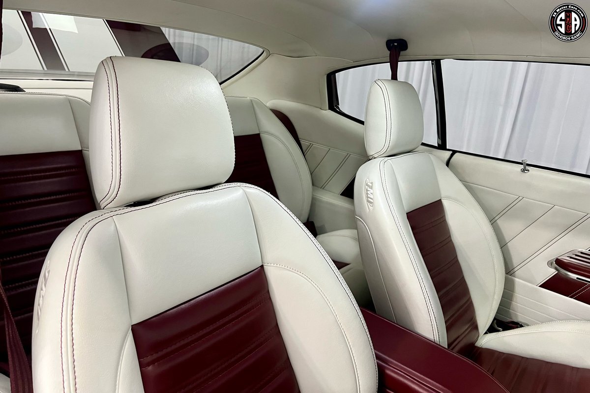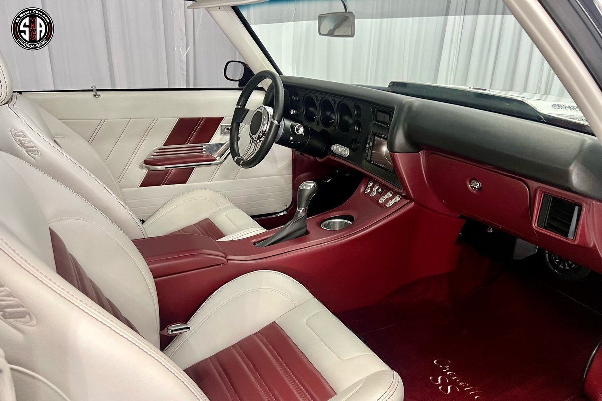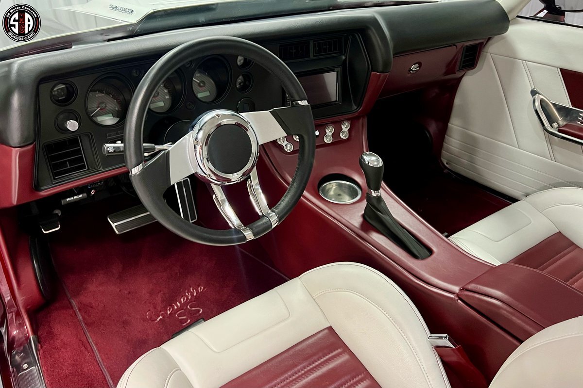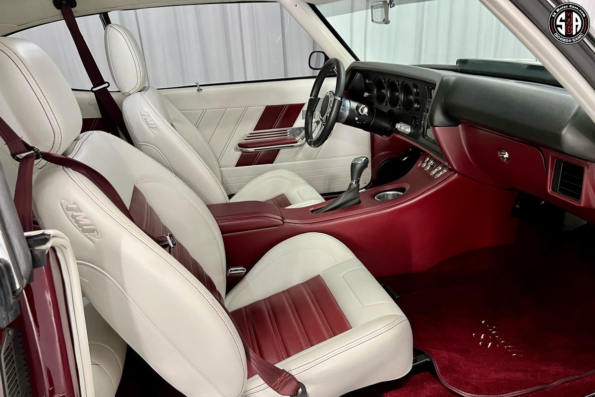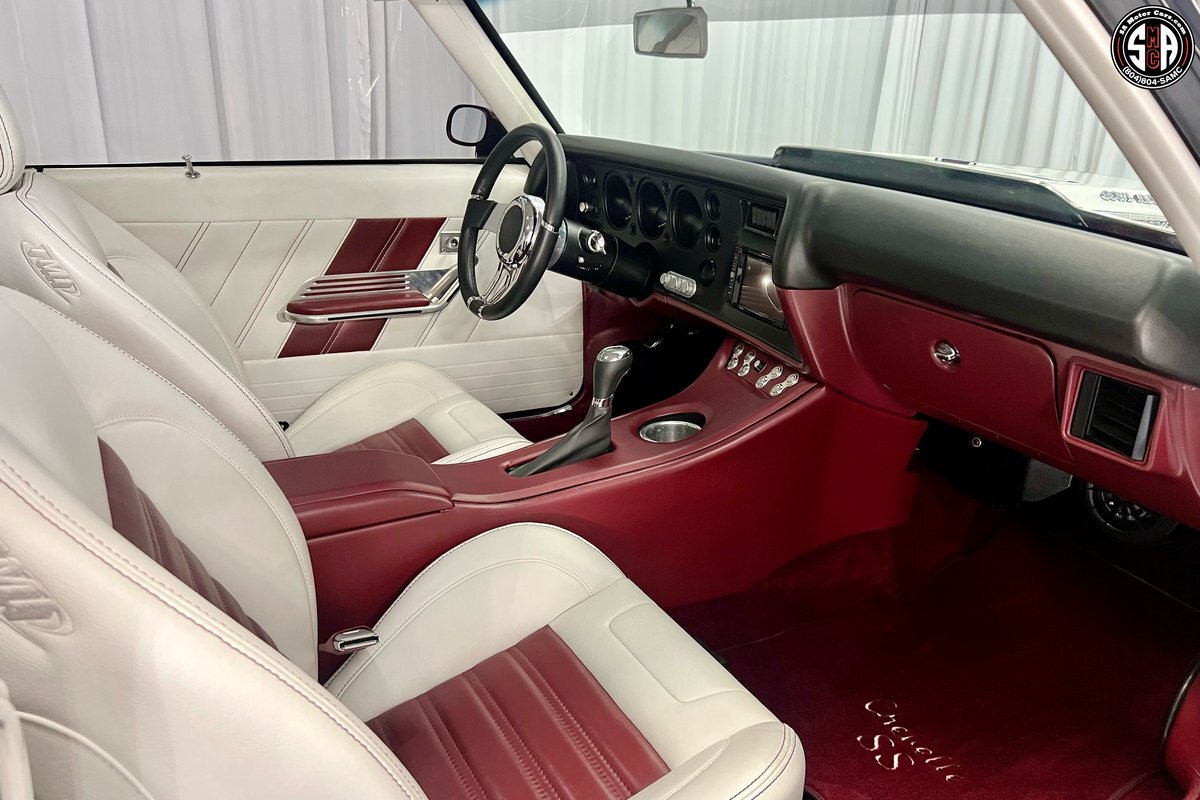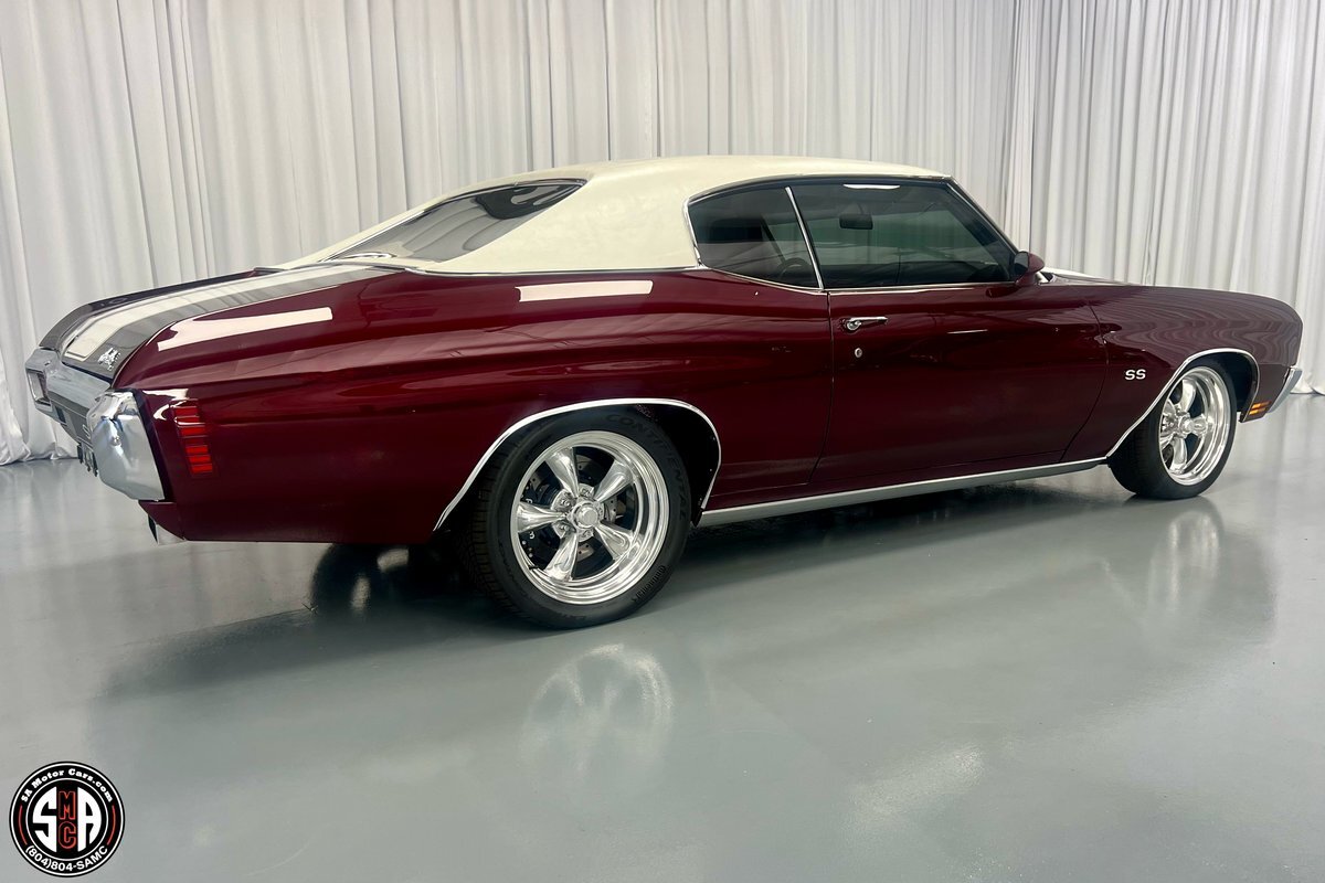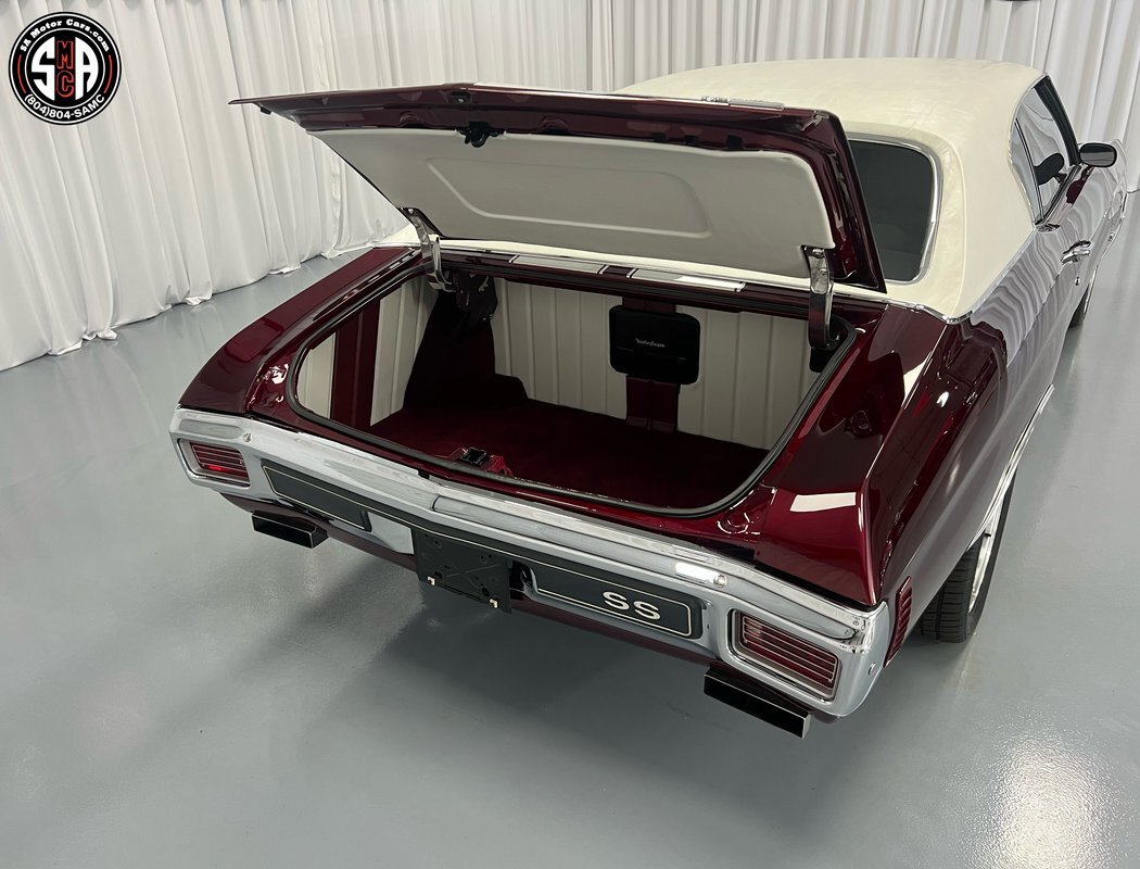 Check out this meticulous 1970 Chevrolet Chevelle Restomod! This Chevelle has undergone an extensive Frame-Off, Rotisserie Build. It has lots of custom and performance upgrades that were added during the process! Take a look at this beautifully straight body with Lowered Rocker Panels to hide visibility of the frame, Brandywine Exterior Paint with Pearl White Rally Stripes, Custom White Vinyl Top, Functional Cowl Hood with Hood Pins, 18'' Polished Aluminum American Racing Wheels with Continental Extreme Contact Tires, Aftermarket Headlights, Chrome Bumpers, Polished Trim, and Polished Exhaust Tips. The inside is sporting a Custom Interior with Burgundy and White Vinyl Upholstery, TMI Bucket Seating, Front Shoulder Belts and Rear Lap Belts, Power Windows, Flaming River Tilt Steering Column and 3-Spoke Steering wheel, Dakota Digital Dashboard Gauges, Custom Center Console, Floor Shifter with an LED Gear Indicator, Aftermarket Audio System, and a Custom Upholstered Trunk with Billet Aluminum Trunk Hinges.