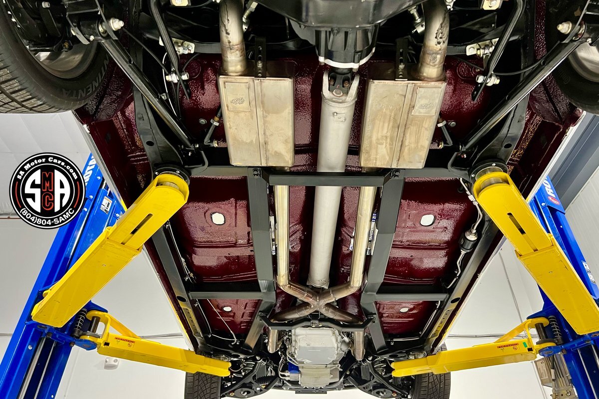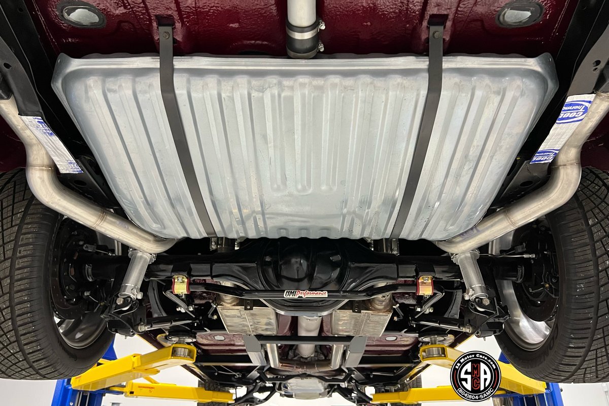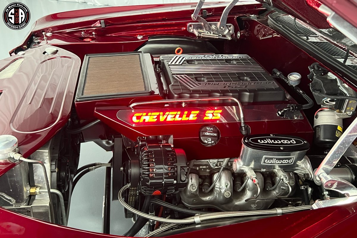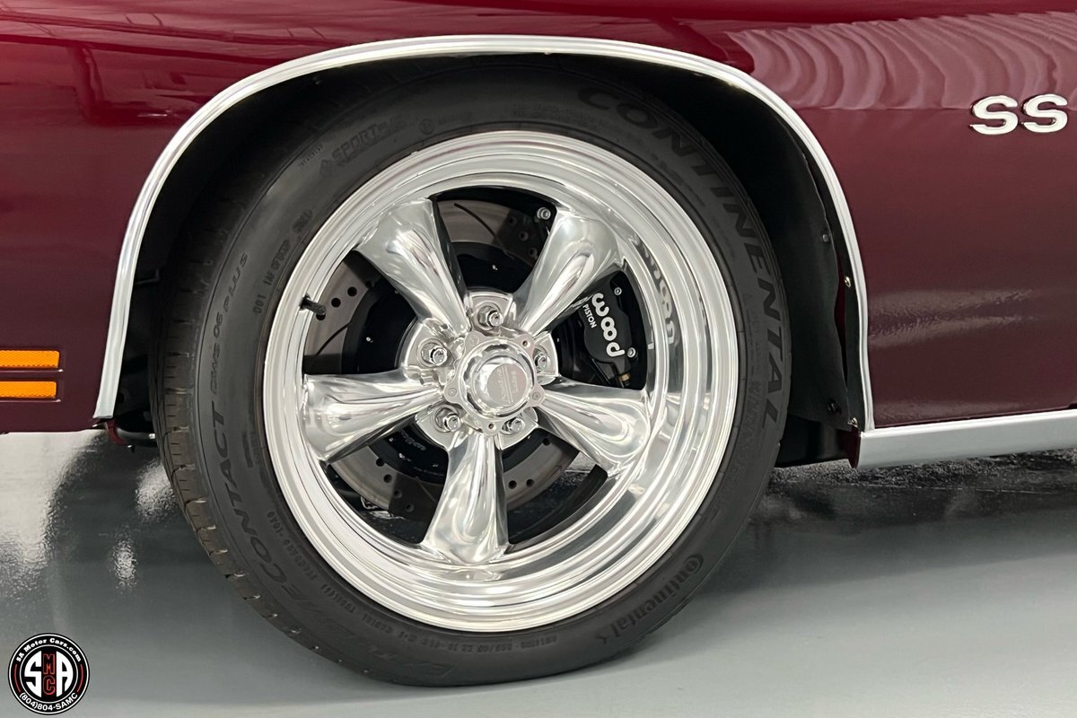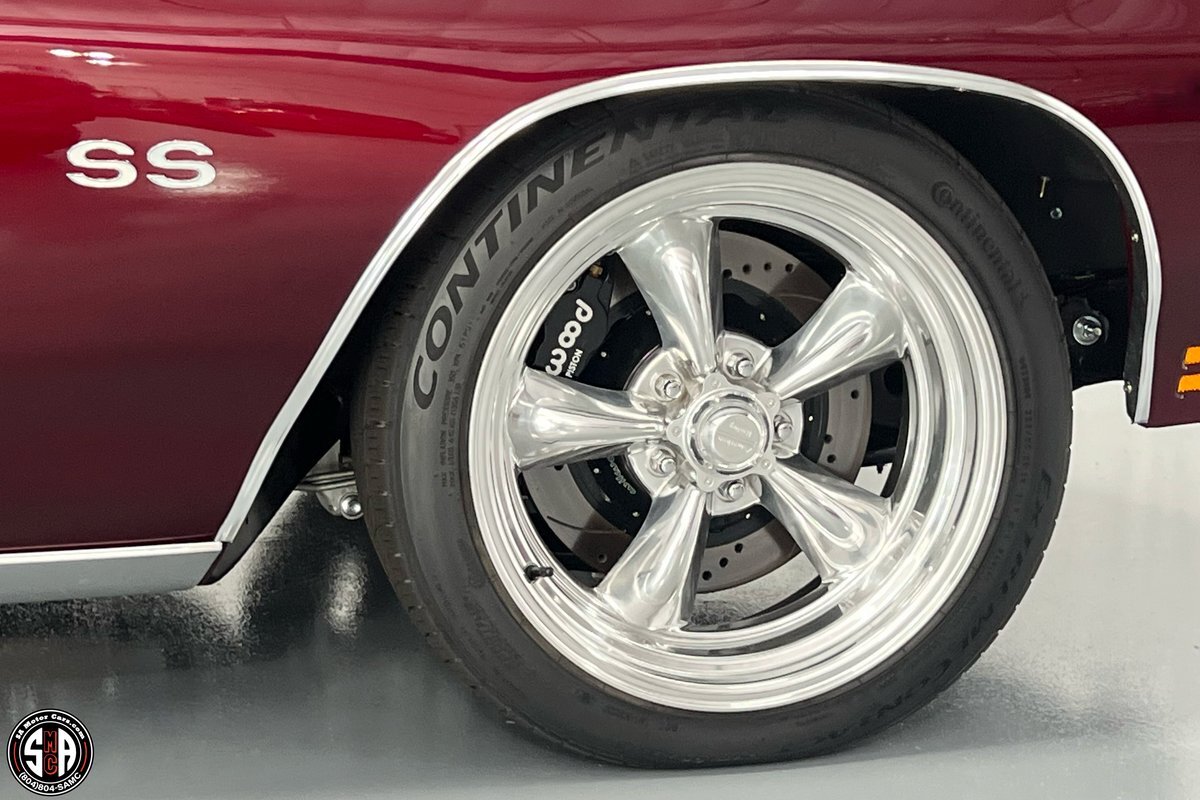 Under the hood sits an Electronically Fuel Injected LT4 Supercharged V8 Engine with 640 Horsepower! The engine bay of this Chevelle host Billet Aluminum Hood Hinges, Custom Radiator Closeout Panel, Smoothed Firewall, Braided Stainless Steel Lines, and the Custom Illuminated Engine Covers! Power is sent to the rear tires though an 8L90 8-Speed Automatic Transmission and a Ford 9'' Rear End with approximately 3.50:1 Gears and Posi in a Moser Housing! Driving this '70 is nothing short of a blast with Air Conditioning to keep you cool in the summer heat. Power Rack and Pinion Steering allows you to steer with precision. The stopping power is provided by Wilwood 4-Wheel Power Disc Brakes with 6-Piston Front Calipers, 4-Piston Rear Calipers, with Drilled and Slotted Rotors Front and Rear! The underside of this Chevelle looks just as amazing as the rest of the car! You won't hesitate to place a set of mirrors underneath this Chevy to display the beautiful condition of the Boxed Frame with an Additional Inboard Frame that includes Exhaust Pass-Through Holes, Body Color Rhino Lined Floorboards, New Fuel Tank, New Fuel and Brake Lines, Independent Front Suspension with UMI Performance Tubular Upper and Lower Control Arms, 4-Link Rear Suspension with Tubular Arms, Viking Coilover Shocks, UMI Performance Front and Rear Sway Bars, and the Stainless Steel Dual Exhaust System that's fitted with an X-Pipe and SpinTech Mufflers!
