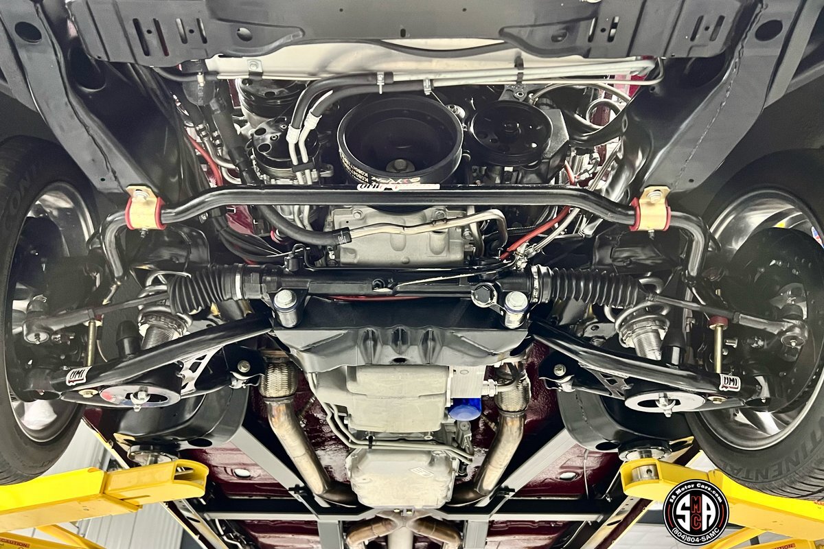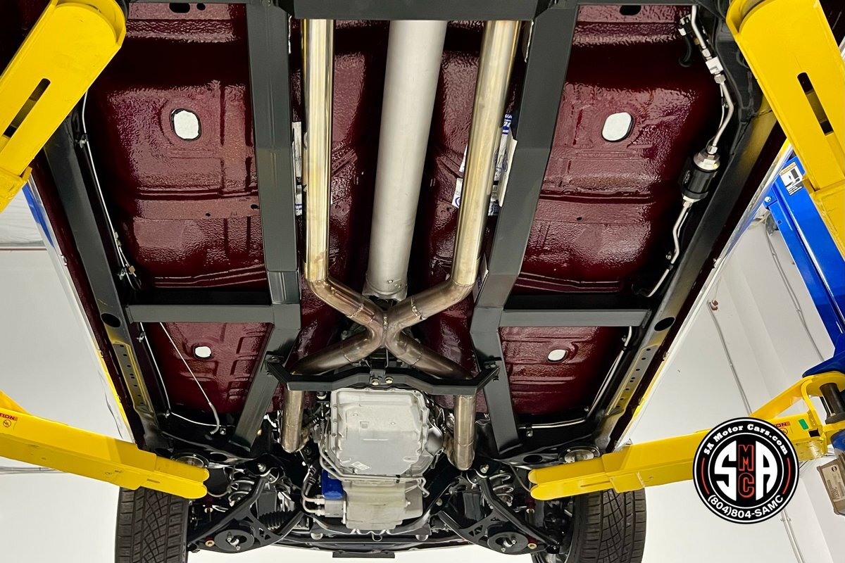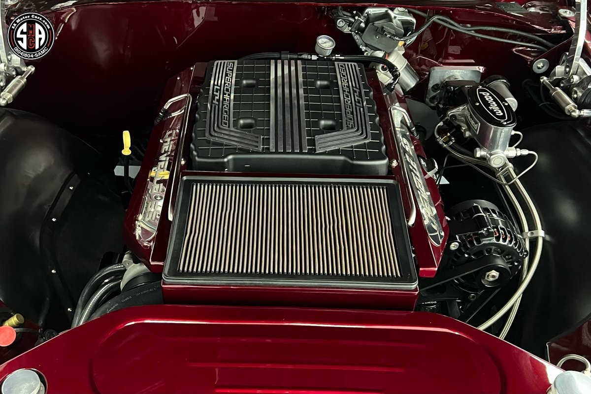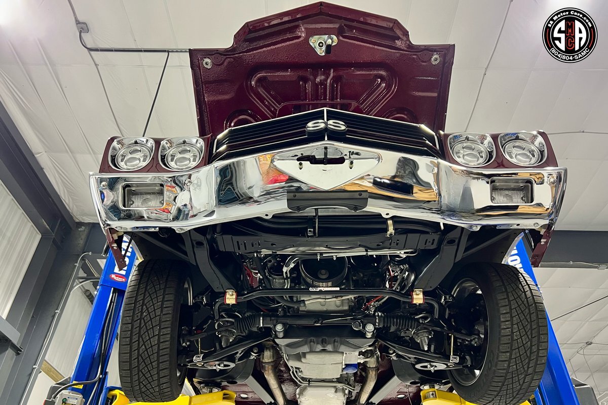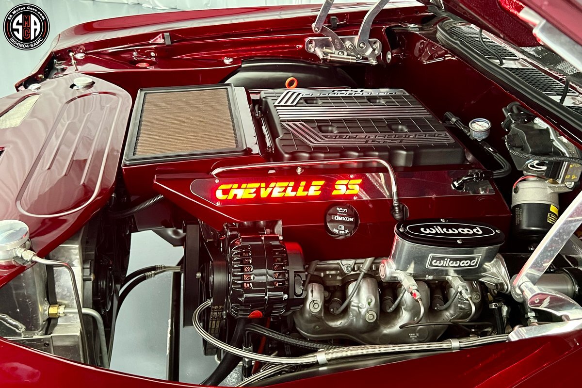 Under the hood sits an Electronically Fuel Injected LT4 Supercharged V8 Engine with 640 Horsepower! The engine bay of this Chevelle host Billet Aluminum Hood Hinges, Custom Radiator Closeout Panel, Smoothed Firewall, Braided Stainless Steel Lines, and the Custom Illuminated Engine Covers! Power is sent to the rear tires though an 8L90 8-Speed Automatic Transmission and a Ford 9'' Rear End with approximately 3.50:1 Gears and Posi in a Moser Housing! Driving this '70 is nothing short of a blast with Air Conditioning to keep you cool in the summer heat. Power Rack and Pinion Steering allows you to steer with precision. The stopping power is provided by Wilwood 4-Wheel Power Disc Brakes with 6-Piston Front Calipers, 4-Piston Rear Calipers, with Drilled and Slotted Rotors Front and Rear! The underside of this Chevelle looks just as amazing as the rest of the car! You won't hesitate to place a set of mirrors underneath this Chevy to display the beautiful condition of the Boxed Frame with an Additional Inboard Frame that includes Exhaust Pass-Through Holes, Body Color Rhino Lined Floorboards, New Fuel Tank, New Fuel and Brake Lines, Independent Front Suspension with UMI Performance Tubular Upper and Lower Control Arms, 4-Link Rear Suspension with Tubular Arms, Viking Coilover Shocks, UMI Performance Front and Rear Sway Bars, and the Stainless Steel Dual Exhaust System that's fitted with an X-Pipe and SpinTech Mufflers!