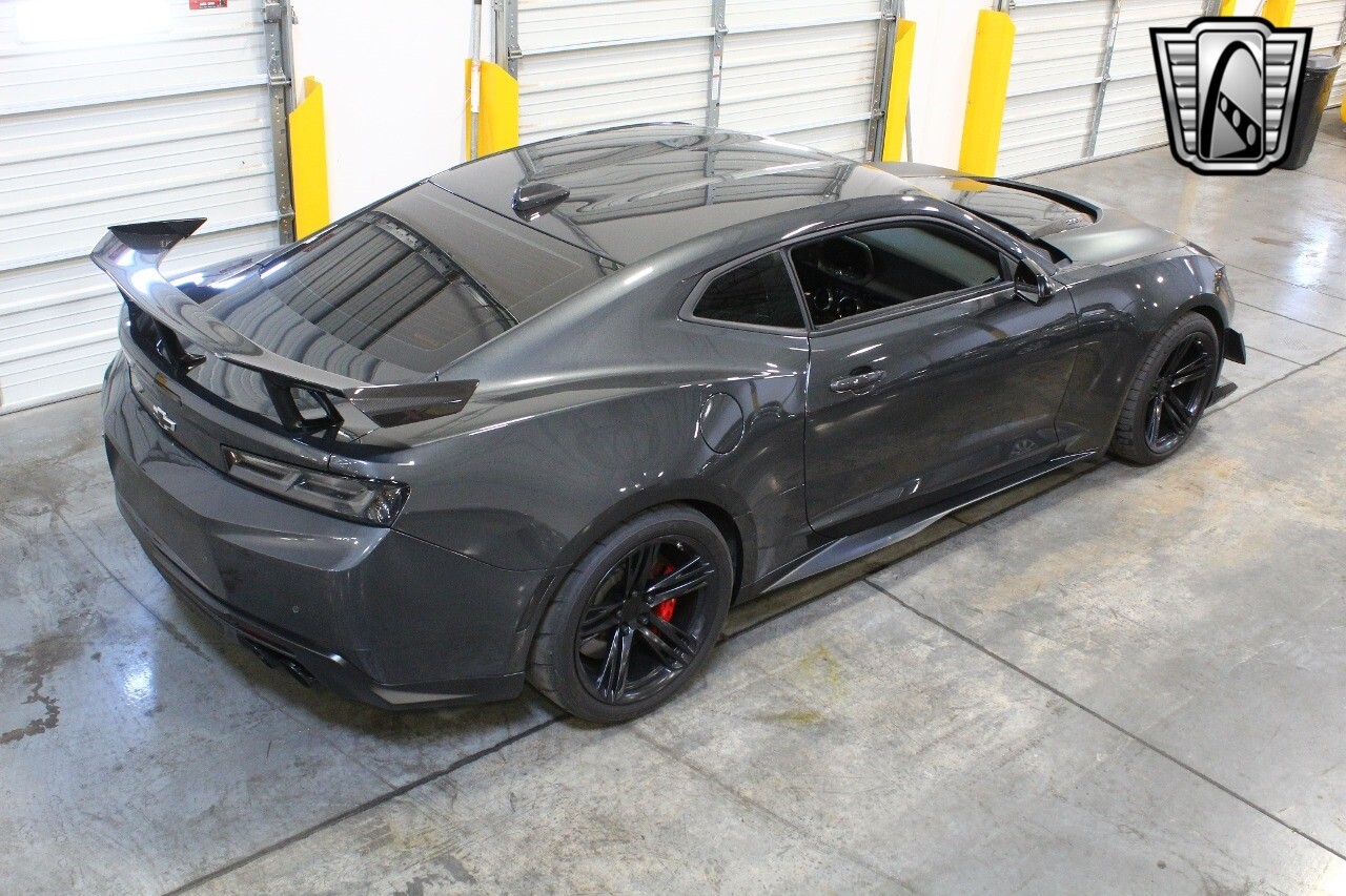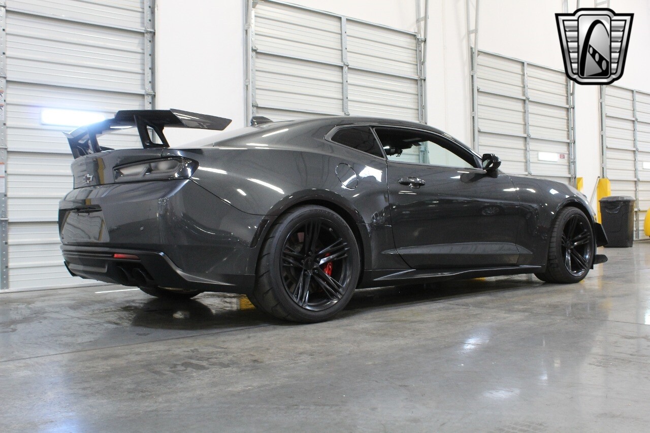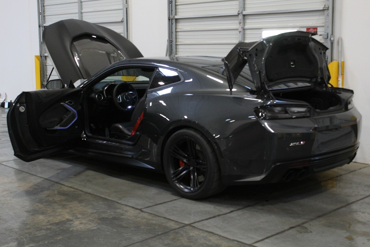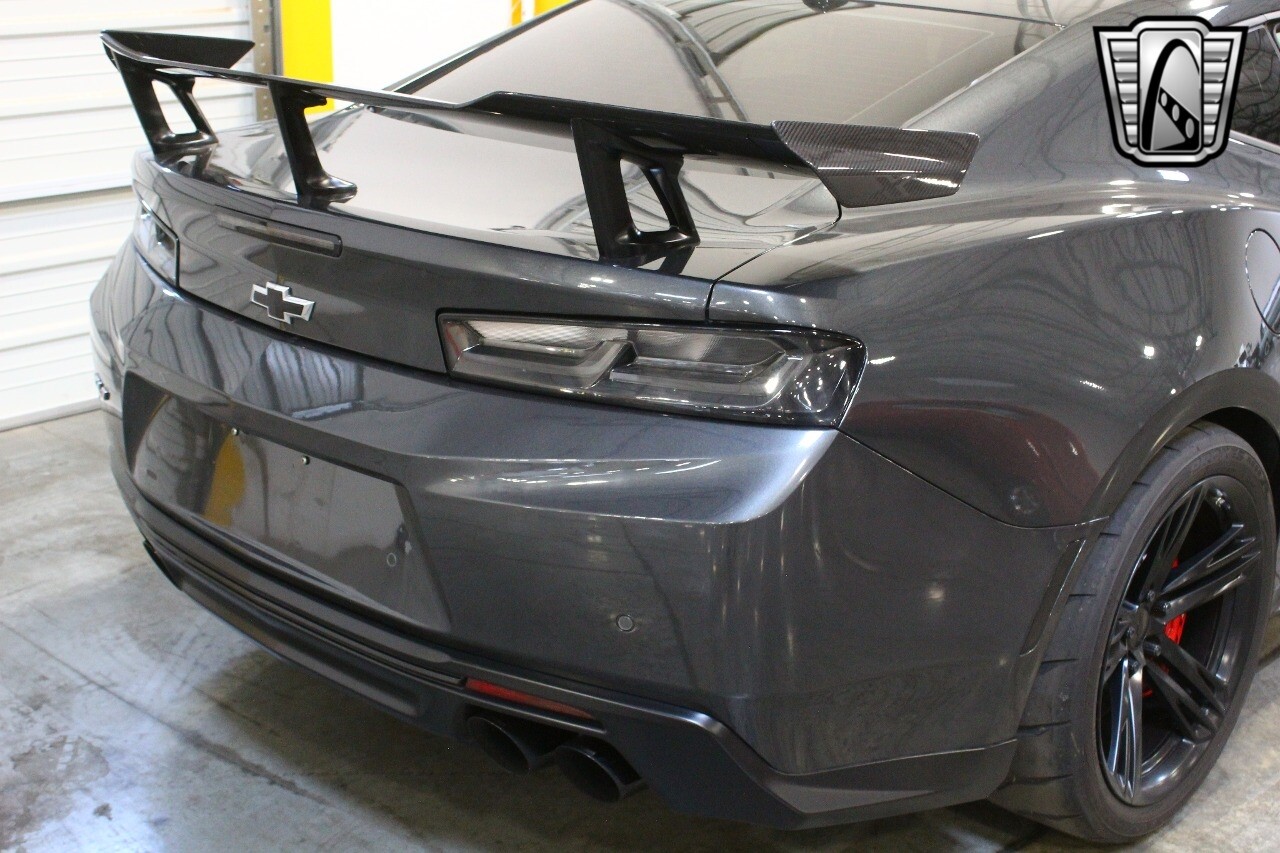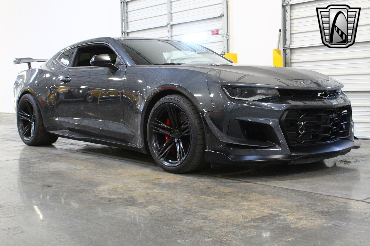 Gateway Classic Cars of Scottsdale is honored to present for sale, on consignment, this absolute beast of a 2018 Chevrolet Camaro ZL1 finished in Nightfall Gray exterior over Dark Gray interior. The current owner has supplied a Dynojet sheet revealing a peak 873hp and 742 ft lbs. of torque at 14.91 psi of boost thanks to a Magnuson Supercharger and supporting mods running E-85 fuel! This power is surprisingly manageable during standard driving, the clutch is easy, shifting is fluid and even the exhaust note is tame. A mere flick of your ankle brings this monster to life and creates a massive rush of adrenaline when you unleash that kind of power. This car has what you want, 19" forged aluminum wheels, summer tires, performance suspension, red calipers, satin black hood with carbon fiber insert, carbon fiber rear spoiler, front dive planes, front splitter, MyLink audio system w/ 8" touchscreen, LED Lighting, Recaro Seats, Red Seatbelts, 6 speed manual transmission and that beautiful 6.2L V8. Improving on a masterpiece can sometimes result in taking it too far but this car holds a delicate balance between a daily driver and a track monster. This car is well documented with aftermarket parts receipts, copy of the window sticker, dyno results and vehicle inspection sheet. A clean CarFax is available upon request. Other Features and Options include A/C, AM/FM/Bluetooth/Satellite Radio, Anti-Lock Brakes, Vented Discs, Cruise Control, Forged Wheels, Airbags, GPS, Heated Seats, Performance Tires, Power Brakes, Power Locks, Power Windows with Tint, Power Seats, Power Mirrors, Power Steering, Rear Defogger, Ride Control, Seatbelts, Tilt/Telescoping Wheel and Traction Control. I can't say enough about how cool this car is when you get behind the wheel, if an ear to ear grin is the feeling you want to have, hop behind the wheel of this car and you will not be disappointed. [ omitted ].