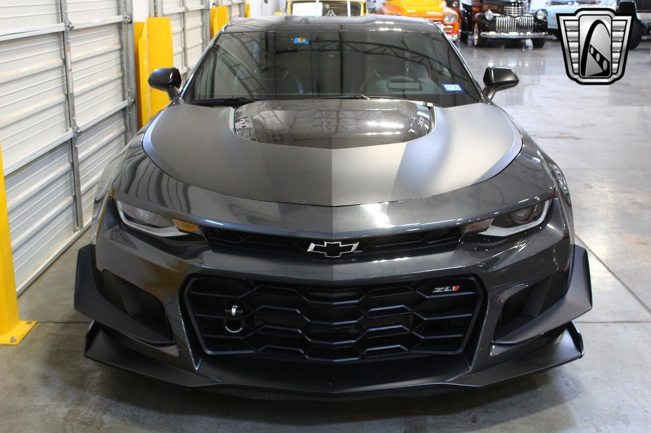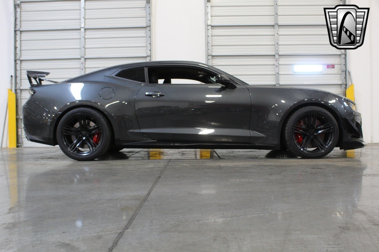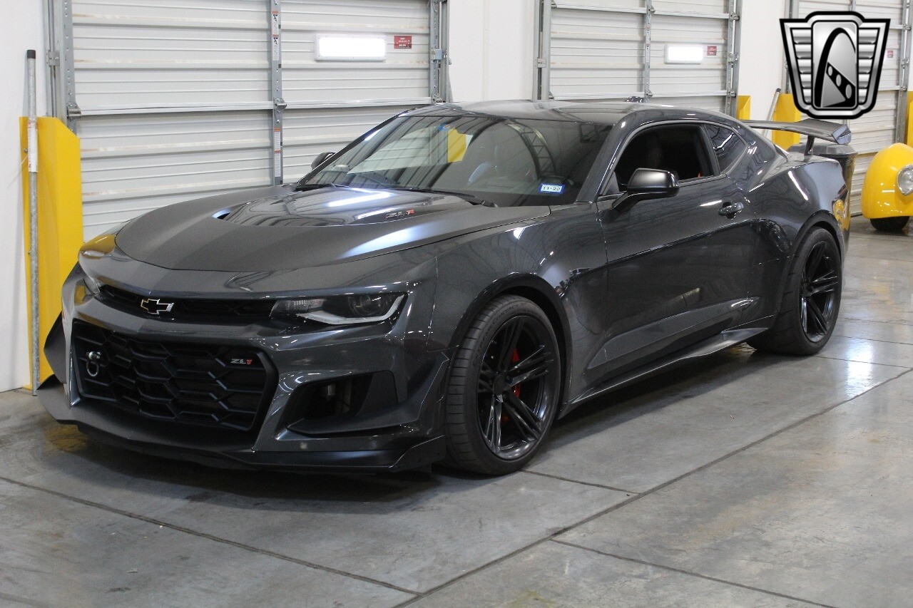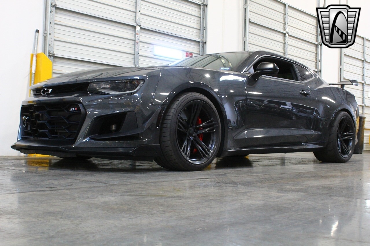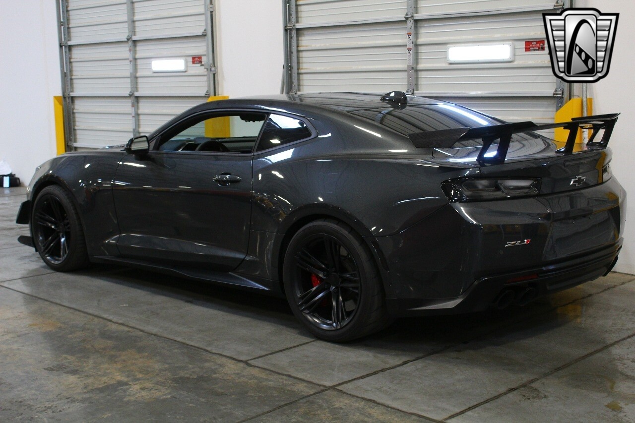Gateway Classic Cars of Scottsdale is honored to present for sale, on consignment, this absolute beast of a 2018 Chevrolet Camaro ZL1 finished in Nightfall Gray exterior over Dark Gray interior. The current owner has supplied a Dynojet sheet revealing a peak 873hp and 742 ft lbs. of torque at 14.91 psi of boost thanks to a Magnuson Supercharger and supporting mods running E-85 fuel! This power is surprisingly manageable during standard driving, the clutch is easy, shifting is fluid and even the exhaust note is tame. A mere flick of your ankle brings this monster to life and creates a massive rush of adrenaline when you unleash that kind of power. This car has what you want, 19" forged aluminum wheels, summer tires, performance suspension, red calipers, satin black hood with carbon fiber insert, carbon fiber rear spoiler, front dive planes, front splitter, MyLink audio system w/ 8" touchscreen, LED Lighting, Recaro Seats, Red Seatbelts, 6 speed manual transmission and that beautiful 6.2L V8. Improving on a masterpiece can sometimes result in taking it too far but this car holds a delicate balance between a daily driver and a track monster. This car is well documented with aftermarket parts receipts, copy of the window sticker, dyno results and vehicle inspection sheet. A clean CarFax is available upon request. Other Features and Options include A/C, AM/FM/Bluetooth/Satellite Radio, Anti-Lock Brakes, Vented Discs, Cruise Control, Forged Wheels, Airbags, GPS, Heated Seats, Performance Tires, Power Brakes, Power Locks, Power Windows with Tint, Power Seats, Power Mirrors, Power Steering, Rear Defogger, Ride Control, Seatbelts, Tilt/Telescoping Wheel and Traction Control. I can't say enough about how cool this car is when you get behind the wheel, if an ear to ear grin is the feeling you want to have, hop behind the wheel of this car and you will not be disappointed. [ omitted ].