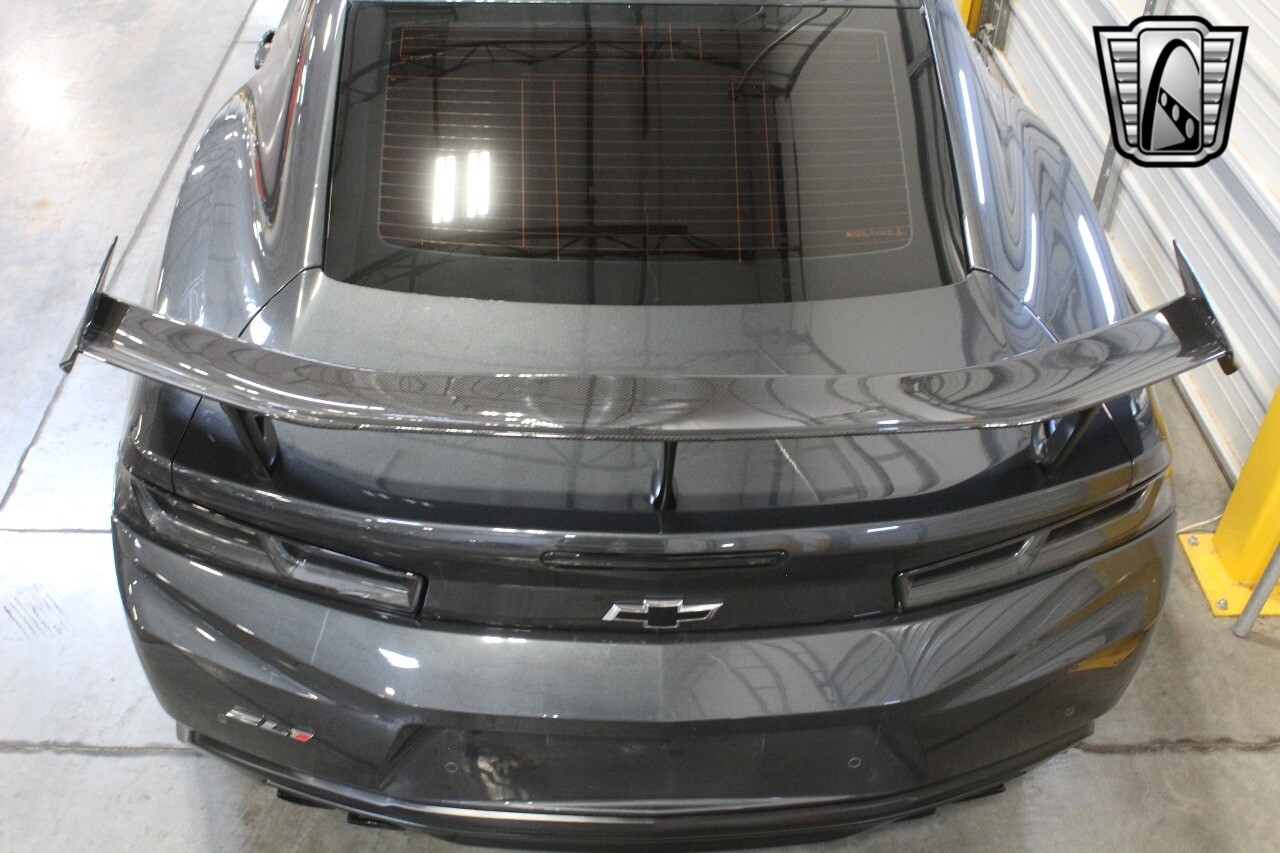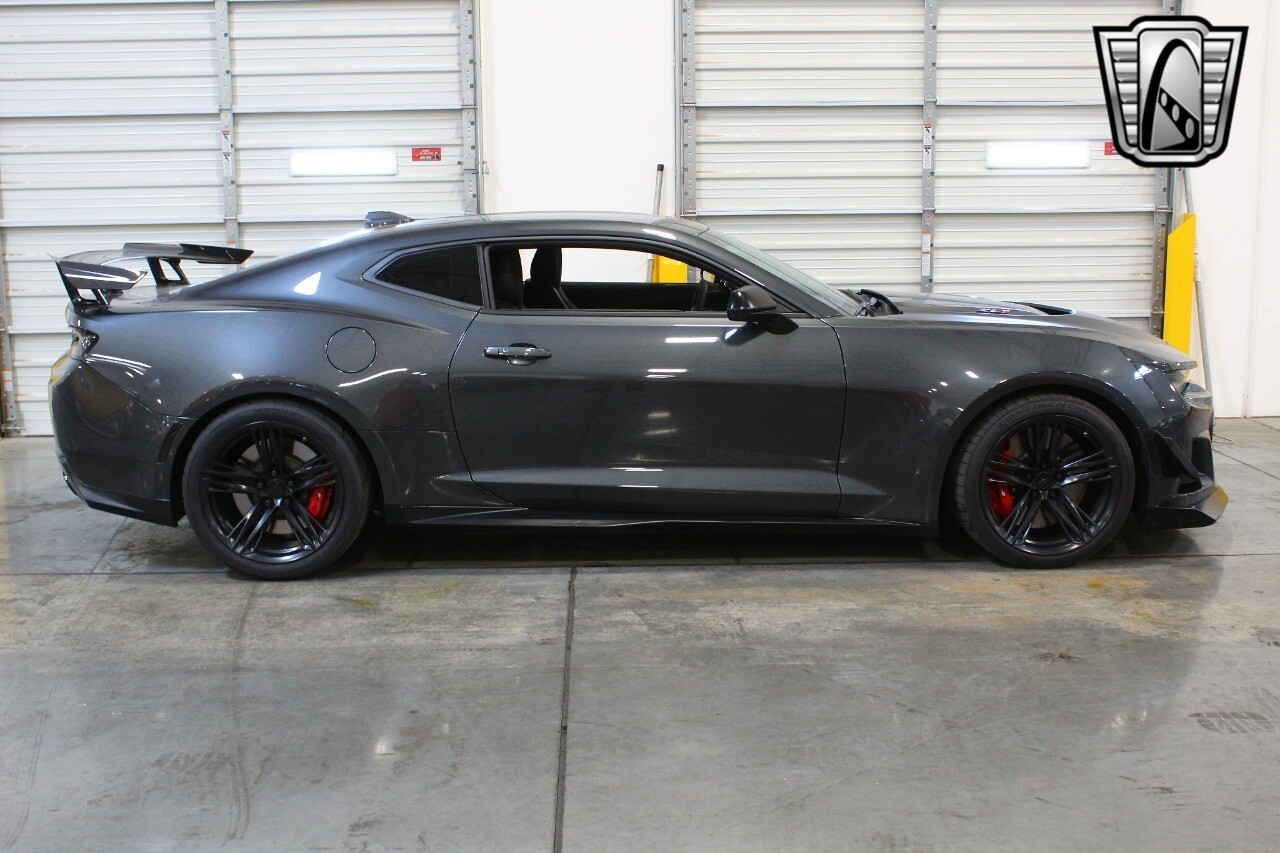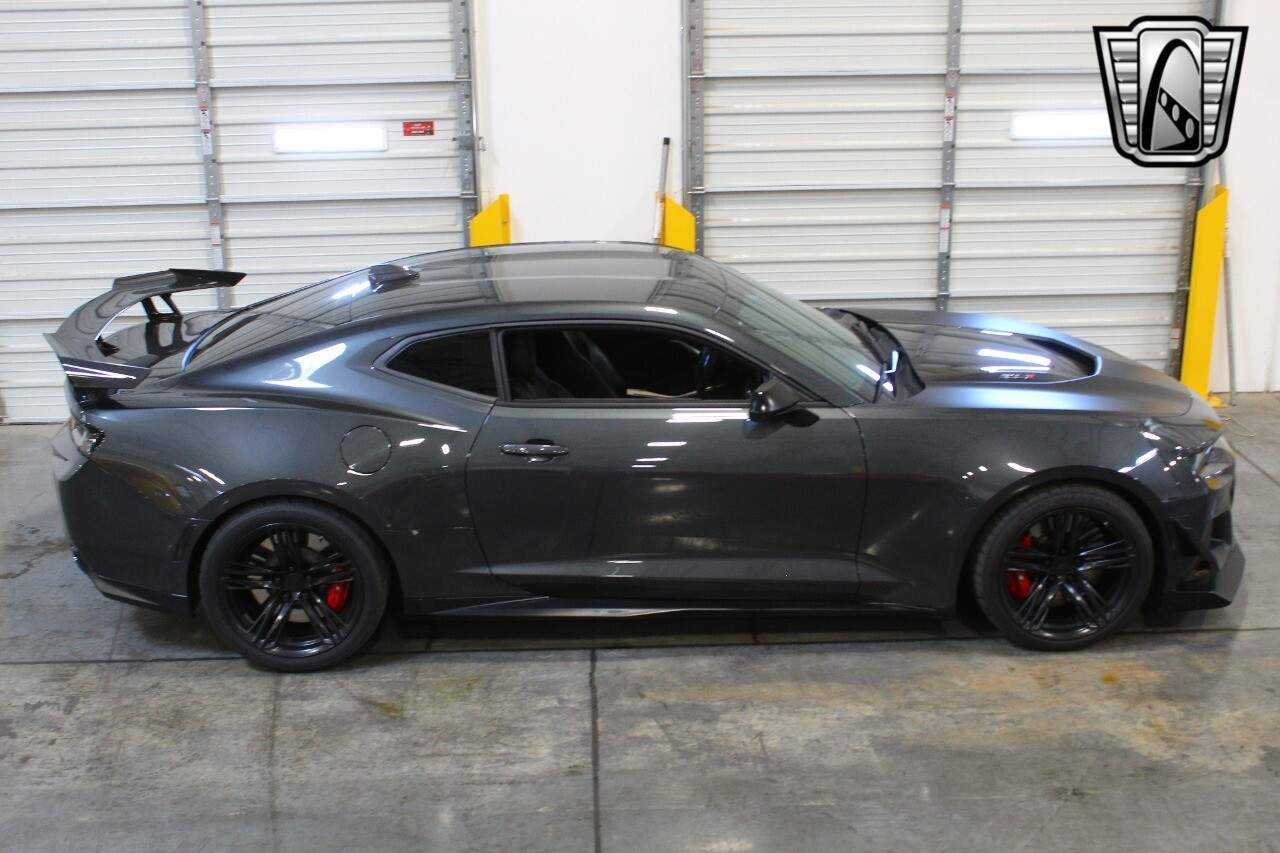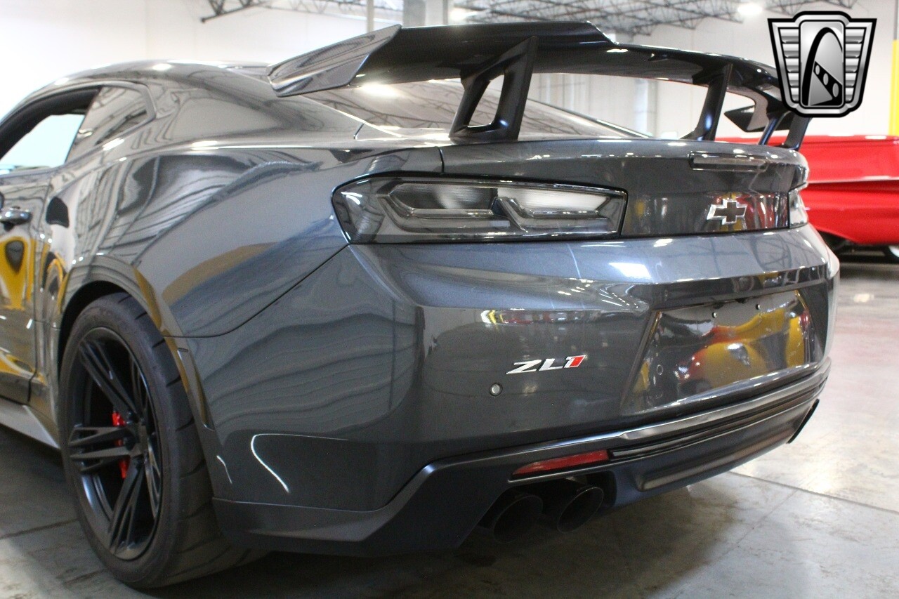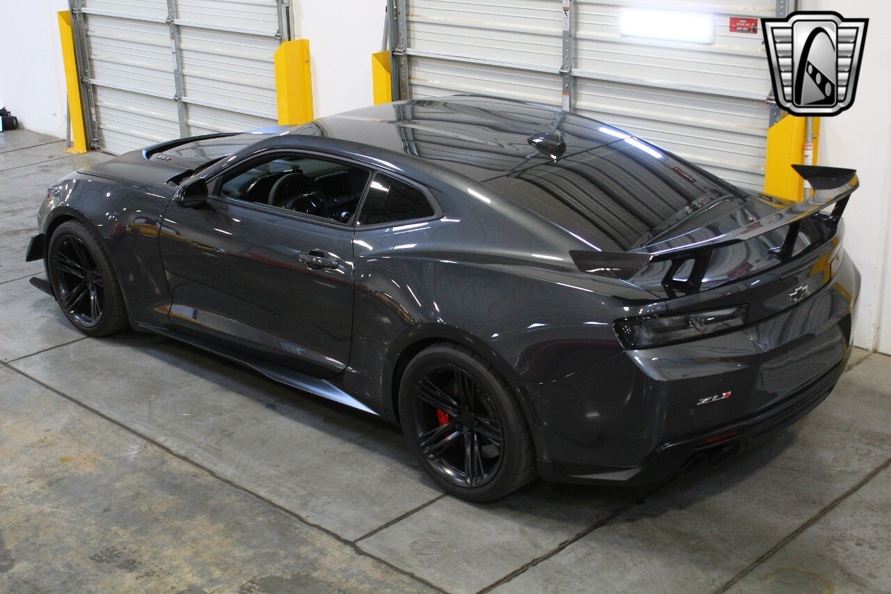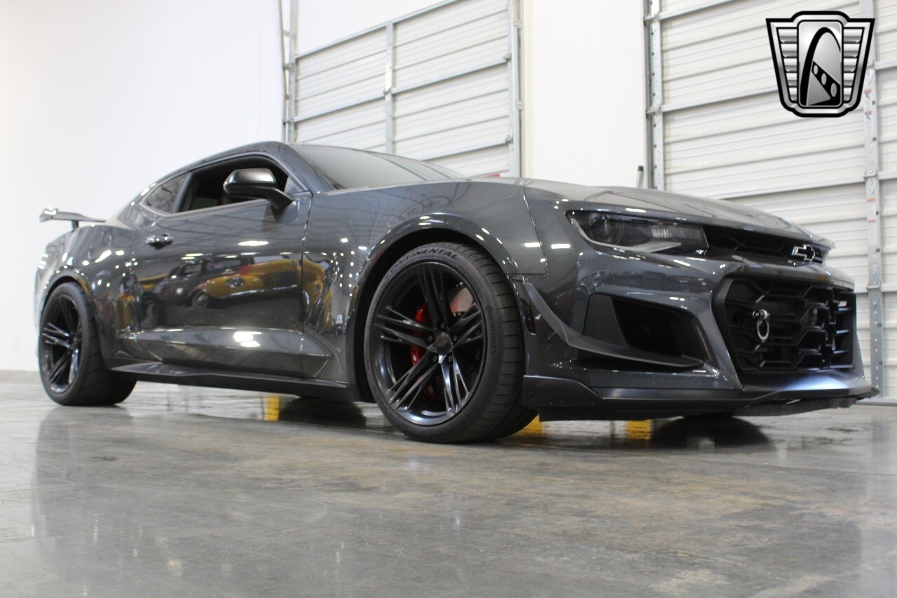 Gateway Classic Cars of Scottsdale is honored to present for sale, on consignment, this absolute beast of a 2018 Chevrolet Camaro ZL1 finished in Nightfall Gray exterior over Dark Gray interior. The current owner has supplied a Dynojet sheet revealing a peak 873hp and 742 ft lbs. of torque at 14.91 psi of boost thanks to a Magnuson Supercharger and supporting mods running E-85 fuel! This power is surprisingly manageable during standard driving, the clutch is easy, shifting is fluid and even the exhaust note is tame. A mere flick of your ankle brings this monster to life and creates a massive rush of adrenaline when you unleash that kind of power. This car has what you want, 19" forged aluminum wheels, summer tires, performance suspension, red calipers, satin black hood with carbon fiber insert, carbon fiber rear spoiler, front dive planes, front splitter, MyLink audio system w/ 8" touchscreen, LED Lighting, Recaro Seats, Red Seatbelts, 6 speed manual transmission and that beautiful 6.2L V8. Improving on a masterpiece can sometimes result in taking it too far but this car holds a delicate balance between a daily driver and a track monster. This car is well documented with aftermarket parts receipts, copy of the window sticker, dyno results and vehicle inspection sheet. A clean CarFax is available upon request. Other Features and Options include A/C, AM/FM/Bluetooth/Satellite Radio, Anti-Lock Brakes, Vented Discs, Cruise Control, Forged Wheels, Airbags, GPS, Heated Seats, Performance Tires, Power Brakes, Power Locks, Power Windows with Tint, Power Seats, Power Mirrors, Power Steering, Rear Defogger, Ride Control, Seatbelts, Tilt/Telescoping Wheel and Traction Control. I can't say enough about how cool this car is when you get behind the wheel, if an ear to ear grin is the feeling you want to have, hop behind the wheel of this car and you will not be disappointed. [ omitted ].