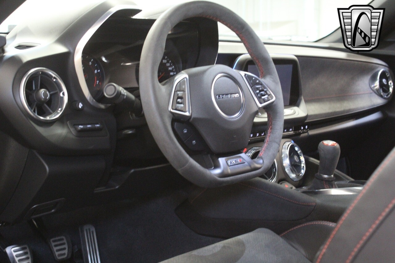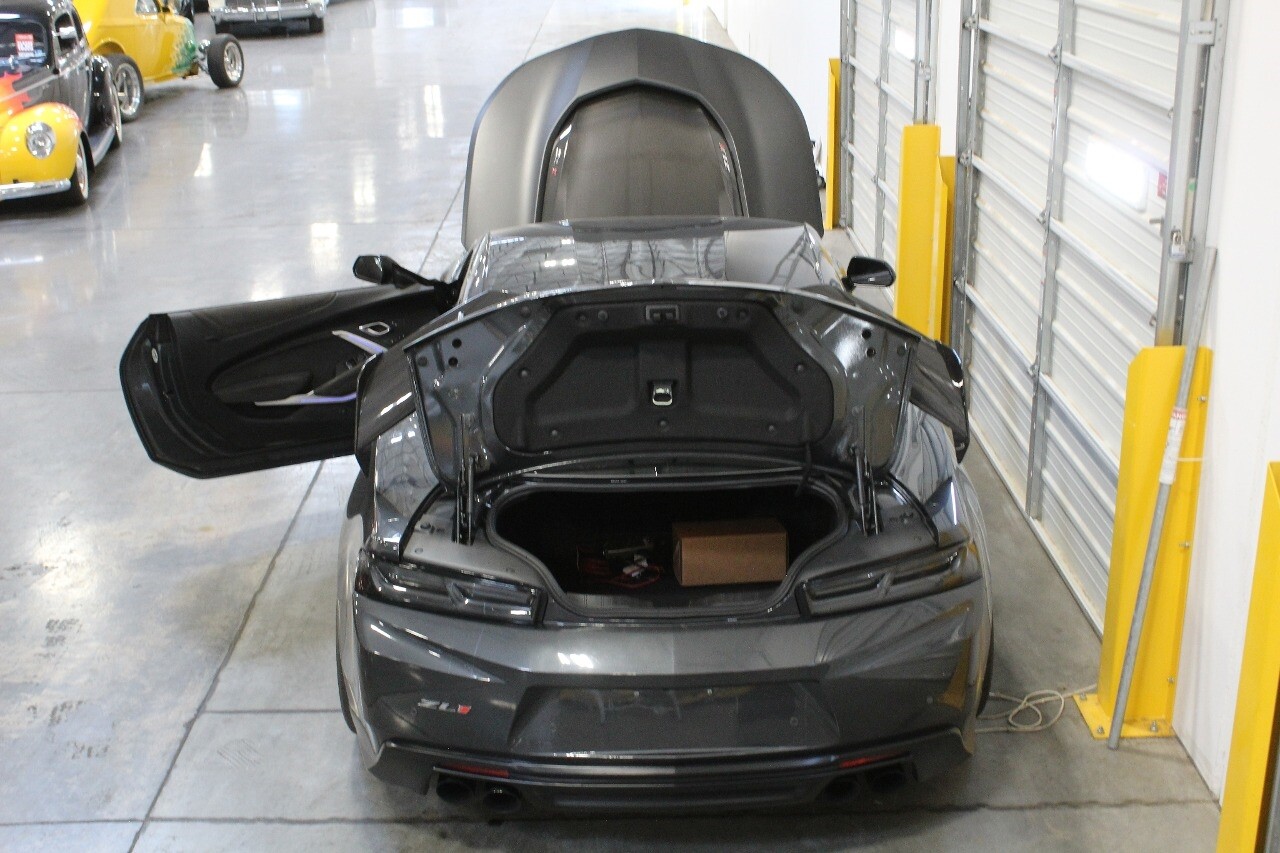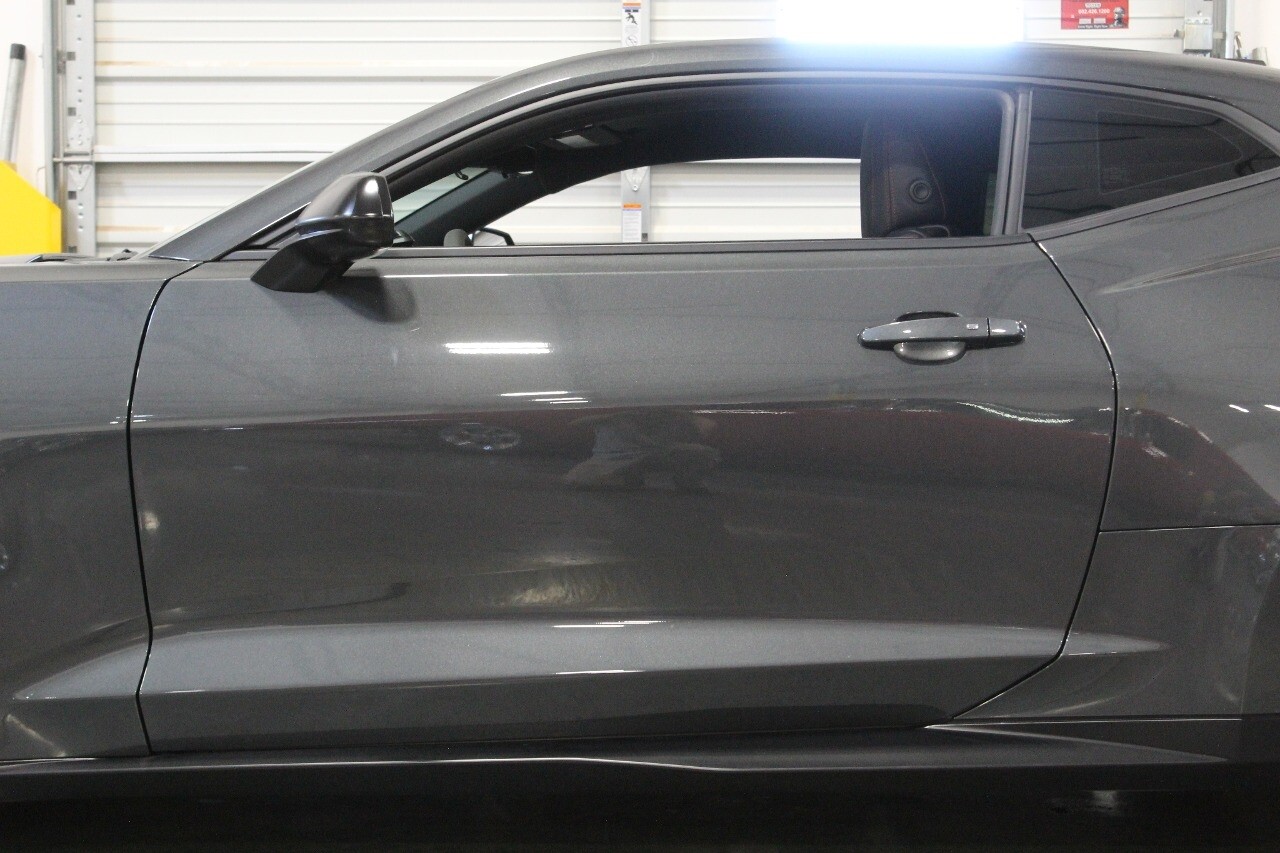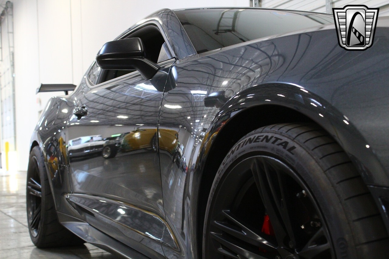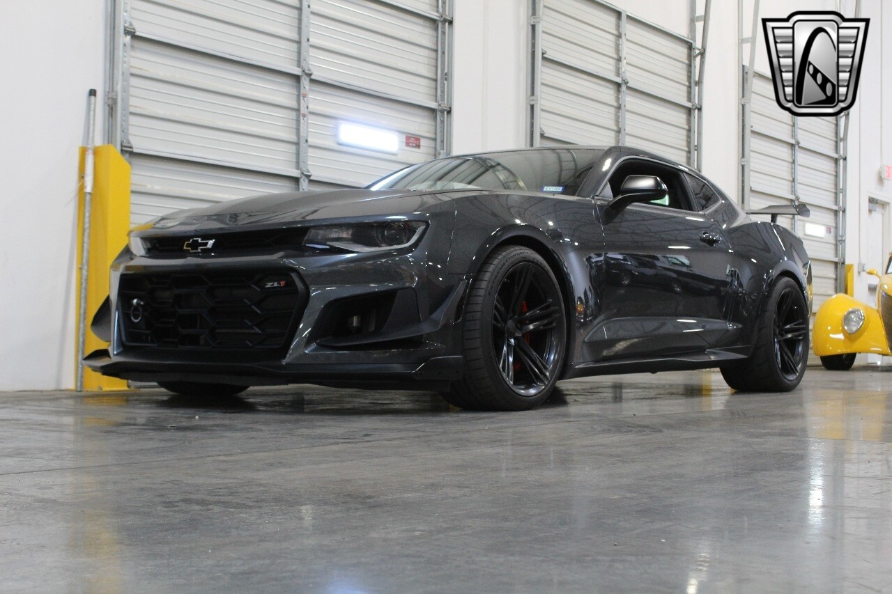 Gateway Classic Cars of Scottsdale is honored to present for sale, on consignment, this absolute beast of a 2018 Chevrolet Camaro ZL1 finished in Nightfall Gray exterior over Dark Gray interior. The current owner has supplied a Dynojet sheet revealing a peak 873hp and 742 ft lbs. of torque at 14.91 psi of boost thanks to a Magnuson Supercharger and supporting mods running E-85 fuel! This power is surprisingly manageable during standard driving, the clutch is easy, shifting is fluid and even the exhaust note is tame. A mere flick of your ankle brings this monster to life and creates a massive rush of adrenaline when you unleash that kind of power. This car has what you want, 19" forged aluminum wheels, summer tires, performance suspension, red calipers, satin black hood with carbon fiber insert, carbon fiber rear spoiler, front dive planes, front splitter, MyLink audio system w/ 8" touchscreen, LED Lighting, Recaro Seats, Red Seatbelts, 6 speed manual transmission and that beautiful 6.2L V8. Improving on a masterpiece can sometimes result in taking it too far but this car holds a delicate balance between a daily driver and a track monster. This car is well documented with aftermarket parts receipts, copy of the window sticker, dyno results and vehicle inspection sheet. A clean CarFax is available upon request. Other Features and Options include A/C, AM/FM/Bluetooth/Satellite Radio, Anti-Lock Brakes, Vented Discs, Cruise Control, Forged Wheels, Airbags, GPS, Heated Seats, Performance Tires, Power Brakes, Power Locks, Power Windows with Tint, Power Seats, Power Mirrors, Power Steering, Rear Defogger, Ride Control, Seatbelts, Tilt/Telescoping Wheel and Traction Control. I can't say enough about how cool this car is when you get behind the wheel, if an ear to ear grin is the feeling you want to have, hop behind the wheel of this car and you will not be disappointed. [ omitted ].