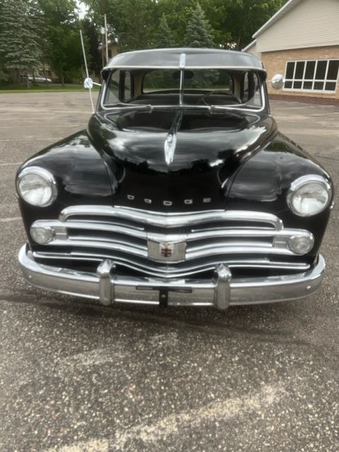1950 Dodge Coronet Club Coupe (2 Door) Only 62xxx documented miles. Awesome survivor. Southern Iowa farmer, only drove on gravel roads. Was the pride and joy of the family. Previous second owner has had for 30+ years. Also garaged, maintained and pampered. No rust, top or bottom. Stunning correct black re-finish. Stock smooth running big 6 cylinder and tight 3 speed transmission on the column. All mechanics excellent, nice brakes and all lights work. Gorgeous interior with clear gauges. Excellent door panels and carpet. Desirable optional radio with clock. All chrome and stainless in excellent condition. Like new tires with original jacks and spare. Straight body. Be different, everyone has a Ford or Chevy. Be the only one at the car shows. Ready to show off. She’s appreciating so drive for free. for more info call Jordan at866-733-4451