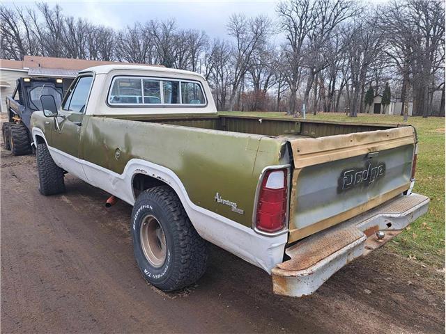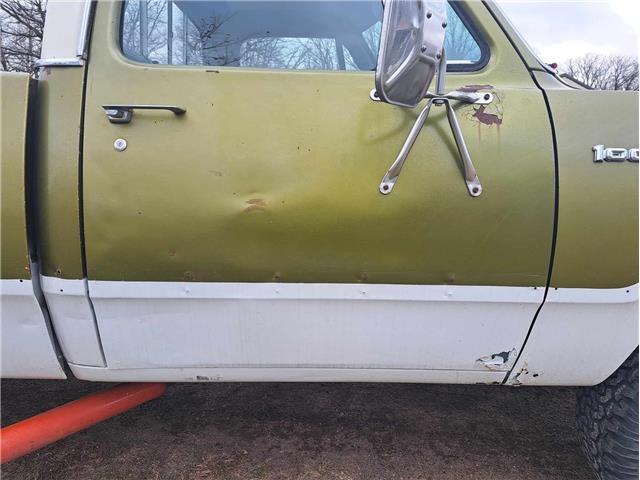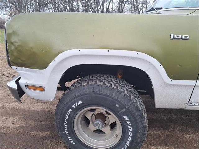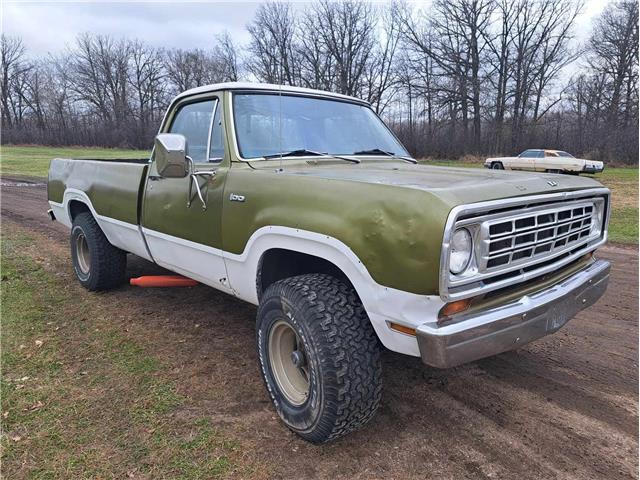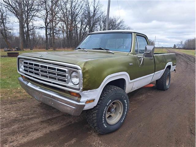 1974 Dodge D-100 4x4 1/2 Ton Pickup. Has the 360 v8 engine. Needs a carb kit to run good. Will turn over but sputter and dies. Will need to be winched on a trailer to leave our property. Body has bumps and bruises. Floorboards looked nice. Clean title. Asking $3500. Located in Thief River Falls, MN.