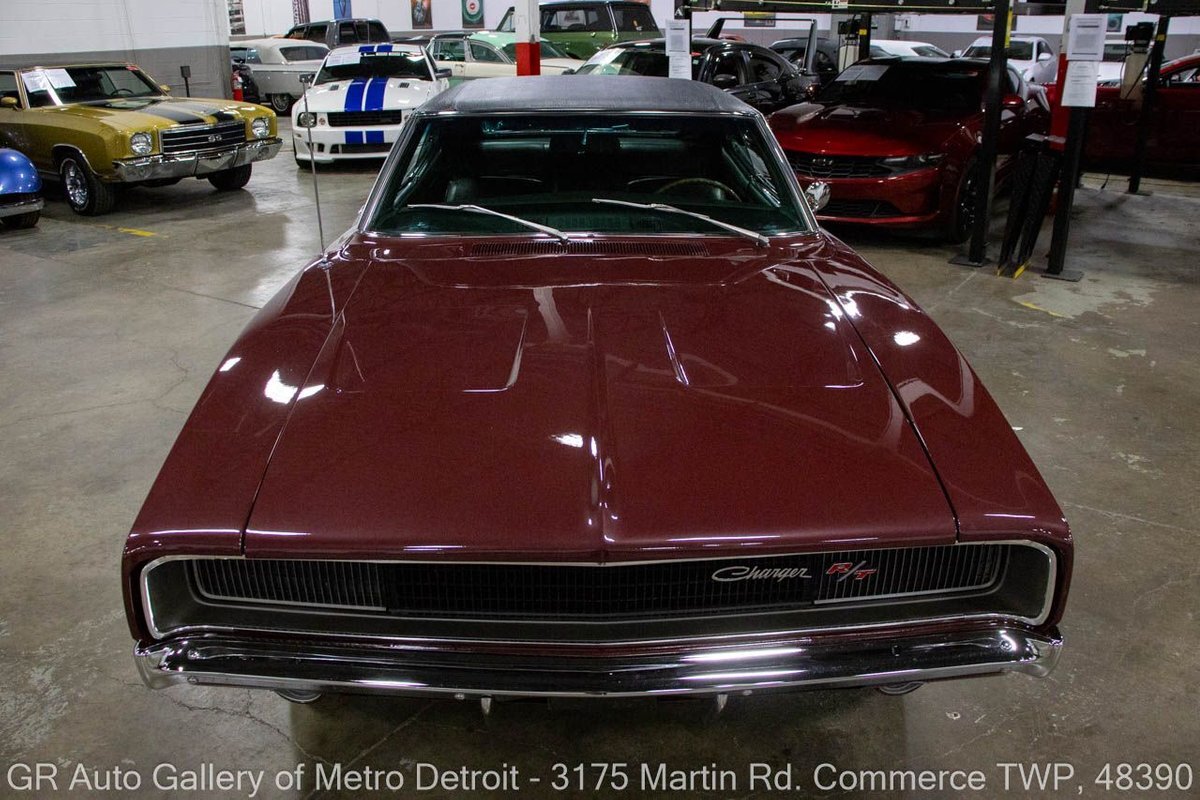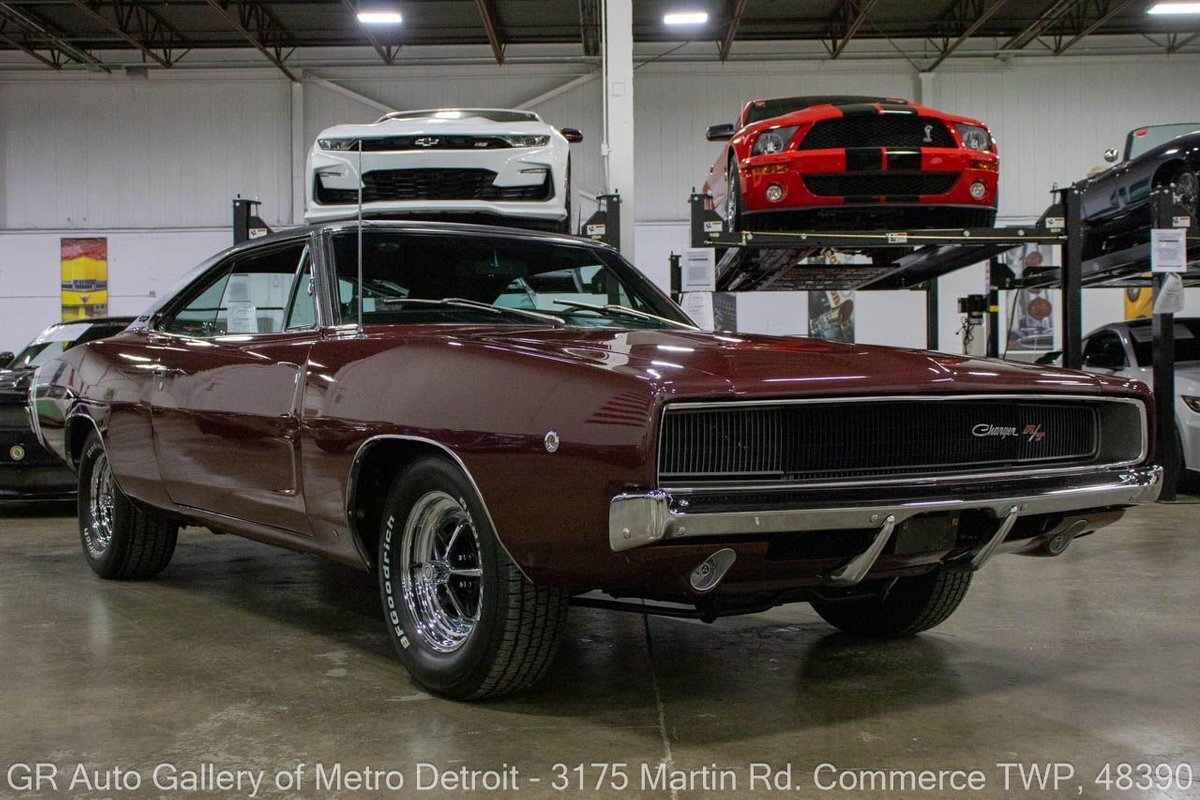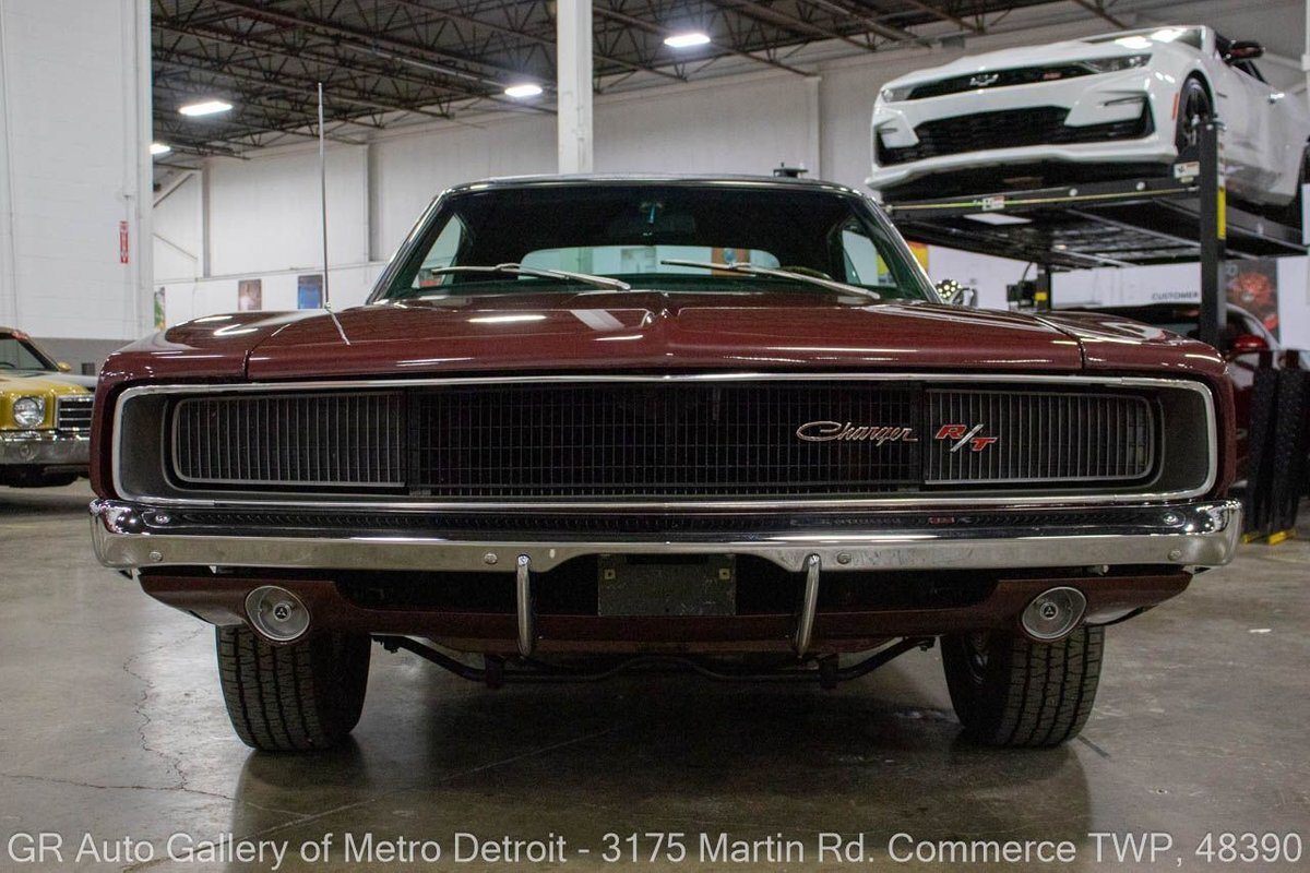 GR Auto Gallery is pleased to present this recently restored 1968 Dodge Charger R/T (true 440ci, 375hp, 4bbl hi-perf) for your consideration. This Charger is powered by an era-correct, non-numbers matching 440 cubic inch V8 engine (375 horsepower), paired with an 18 spline Hemi 4-speed manual transmission, and a 3.54 Dana 60 rear end. The Burgundy Metallic exterior is complemented by a sleek Black interior. This Charger has undergone a full rotisserie restoration, including a total engine rebuild with .030 over forged true pistons, performance hydraulic cam, 3 angled valve job completed, stock intake with Edelbrock 650 4 Barrell carburetor, HP exhaust manifolds, transmission rebuilt with all new brass, with a new center force clutch and pressure plate, transmission rebuild, all-new brakes, new bumpers, light assemblies, and more. This meticulously maintained Charger is the real deal for any collector. Drive this one out of our showroom or have us assist with shipping it to you anywhere in the United States! Don't hesitate to call us with any questions or for more information.