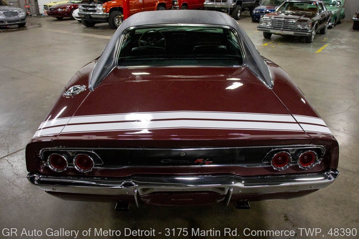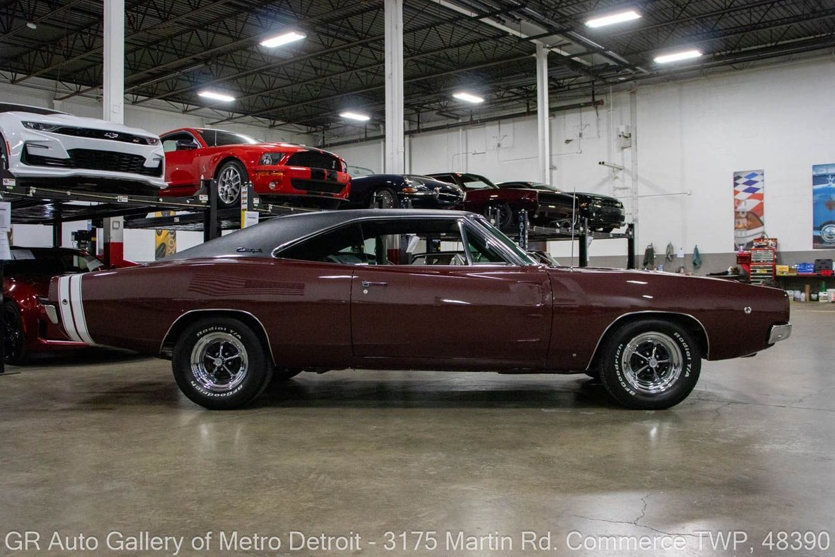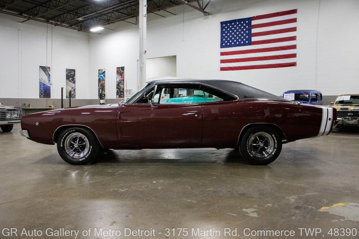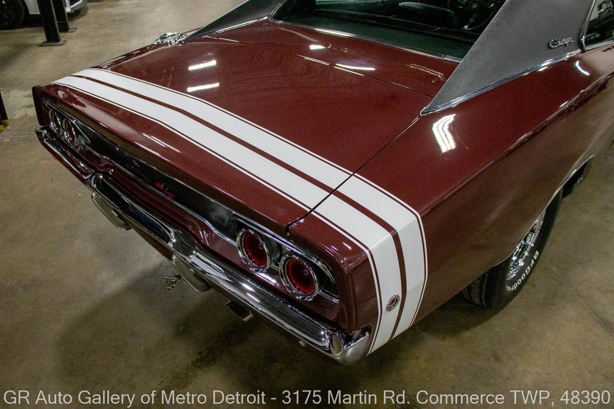 GR Auto Gallery is pleased to present this recently restored 1968 Dodge Charger R/T (true 440ci, 375hp, 4bbl hi-perf) for your consideration. This Charger is powered by an era-correct, non-numbers matching 440 cubic inch V8 engine (375 horsepower), paired with an 18 spline Hemi 4-speed manual transmission, and a 3.54 Dana 60 rear end. The Burgundy Metallic exterior is complemented by a sleek Black interior. This Charger has undergone a full rotisserie restoration, including a total engine rebuild with .030 over forged true pistons, performance hydraulic cam, 3 angled valve job completed, stock intake with Edelbrock 650 4 Barrell carburetor, HP exhaust manifolds, transmission rebuilt with all new brass, with a new center force clutch and pressure plate, transmission rebuild, all-new brakes, new bumpers, light assemblies, and more. This meticulously maintained Charger is the real deal for any collector. Drive this one out of our showroom or have us assist with shipping it to you anywhere in the United States! Don't hesitate to call us with any questions or for more information.