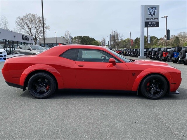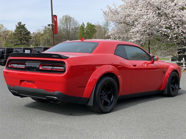 2018 Dodge Challenger SRT Demon Apple CarPlay, Alloy Wheels, All Routine Maintenance Up to Date, NONSmoker, Leather, Android Auto, Challenger SRT Demon, 2D Coupe, 6.2L Supercharged HEMI V8 SRT, 8-Speed Automatic, RWD, Torred Clearcoat, Black Artificial Leather, 18 Speakers Premium Audio System, ABS brakes, Alloy wheels, Apple CarPlay/Android Auto, Compass, Demon Car Cover, Demon Logo Laguna/Alcantara Seat, Demon Vehicle Storage Package, Electronic Stability Control, Front Bucket Seats, Front Center Armrest, Front dual zone A/C, Front Passenger Seat, harman/kardon GreenEdge Amp, Heated door mirrors, Heated Front Seats, Heated Steering Wheel, High-Intensity Discharge Headlights, Illuminated entry, Leather Trim Seats, Low tire pressure warning, MOPAR Battery Manager, Navigation System, ParkView Rear Back-Up Camera, Passenger door bin, Power 4-Way Driver Lumber Adjust, Quick Order Package 26M, Red Seat Belts, Remote keyless entry, Traction control, Ventilated Front Seats, Wheels: 18 x 11.0 Aluminum.
