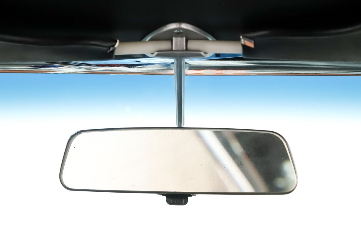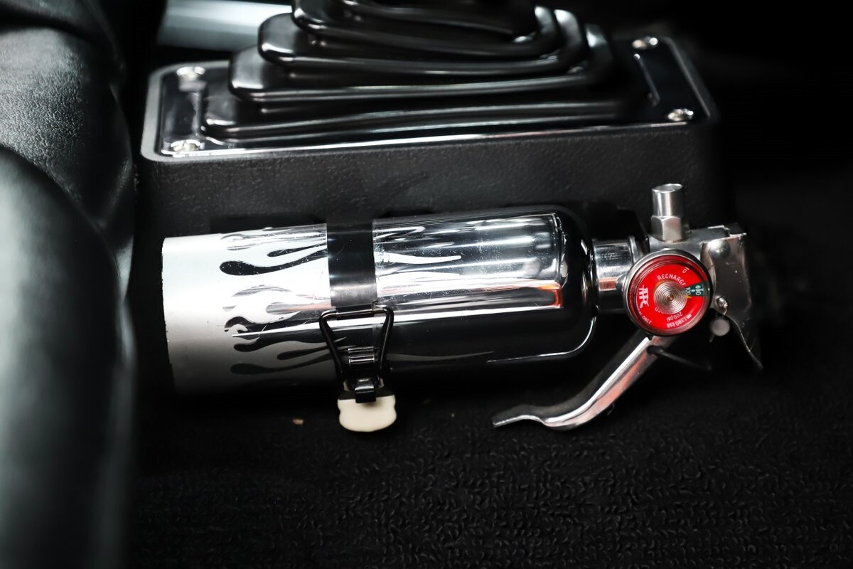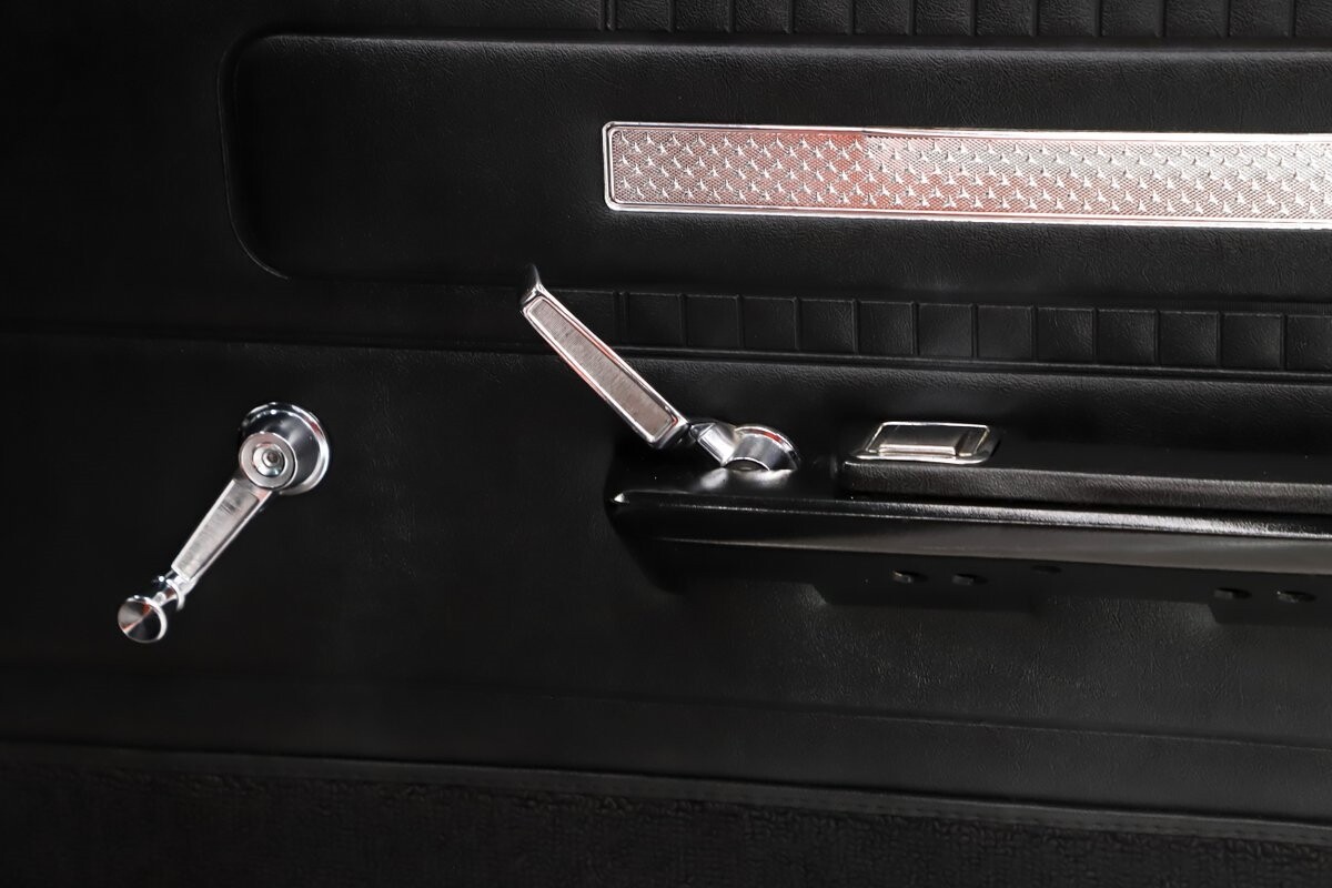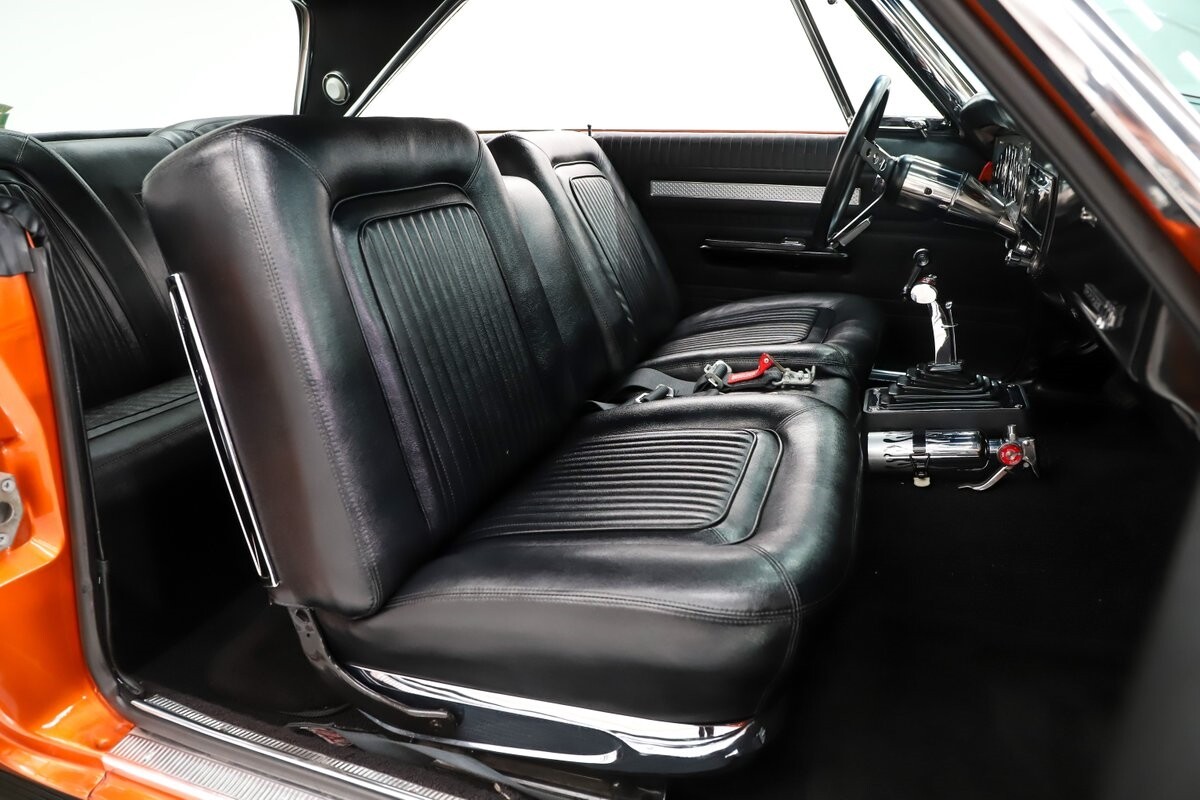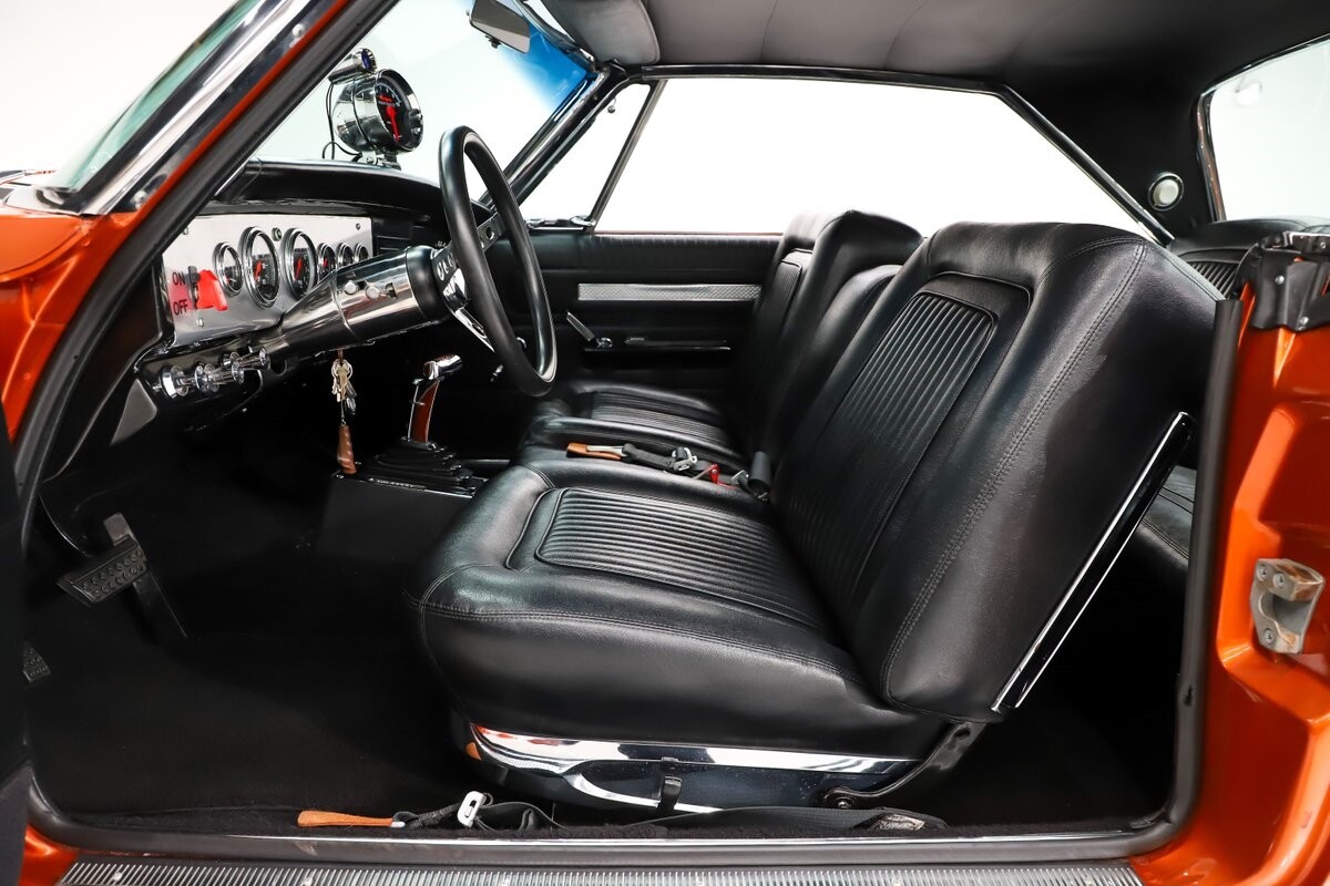 INTERIOR: It's a very well restored interior. Recushioned and upholstered seats. It looks like 4 bucket seats, in front it has a fold down armrest cushion. Reproduction door panels. It has a B&M ratchet shifter on the floor. In front of you is a custom instrument panel with a matched set of gauges. The giant tachometer is mounted on the dash. The tilt column has a vintage style cushion grip wheel. Racing style seat belts.