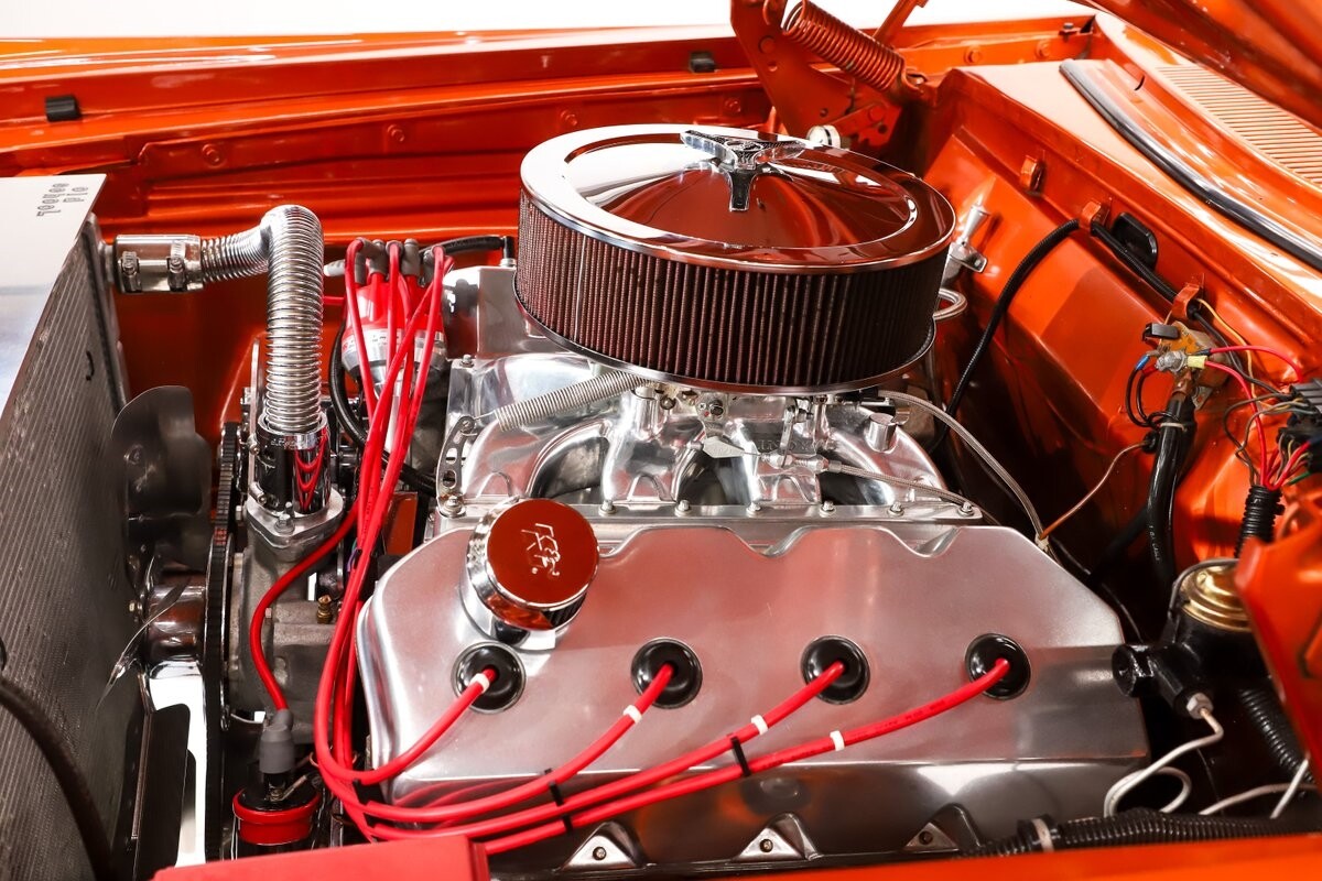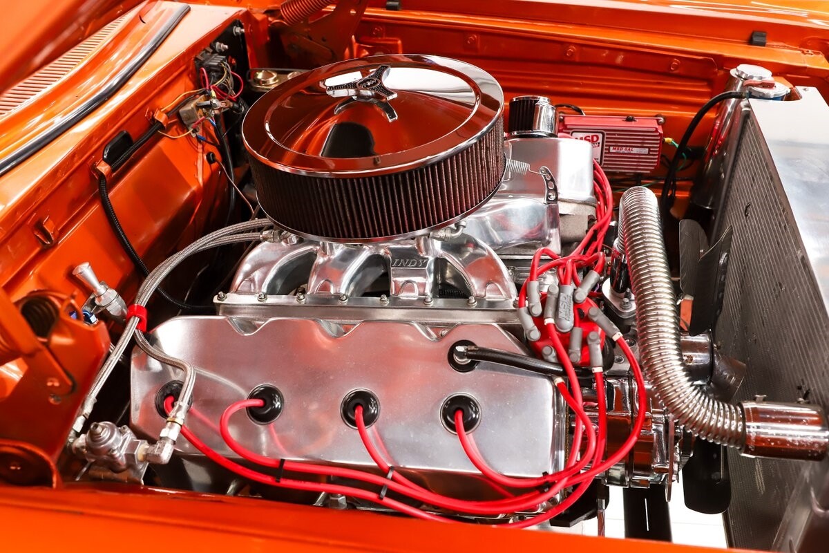ENGINE COMPARTMENT: Yes, it's a Hemi! 528ci block with Indy Legend aluminum heads, Indy intake, roller rockers, Doug's ceramic coated headers and MSD pro billet distributor. Runs on premium pump gas, 10.25:1 compression. Always runs cool with an aluminum water pump, radiator, and overflow bottle. It's made pretty with a polished intake, aluminum valve covers, stainless radiator hose, chrome alternator and pulleys.