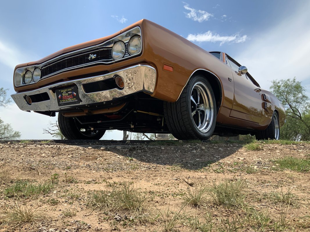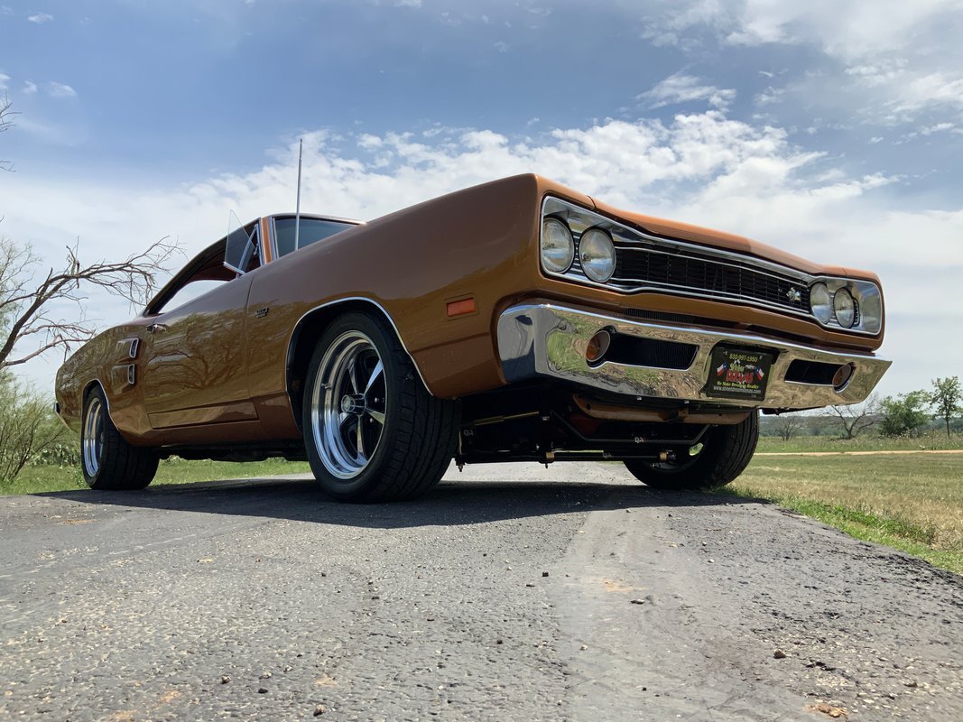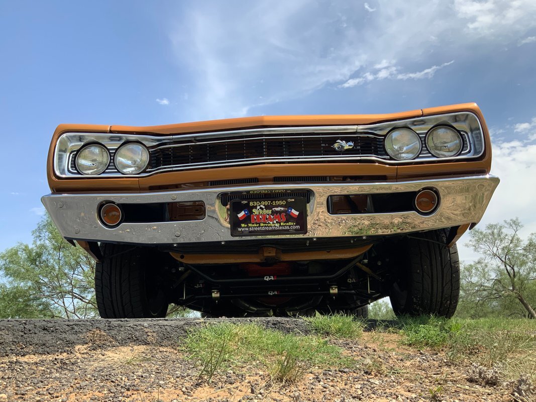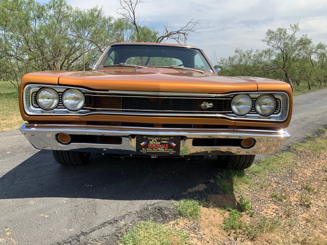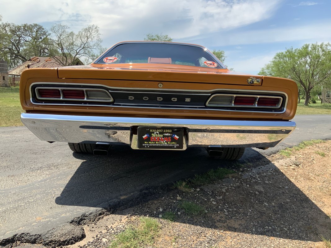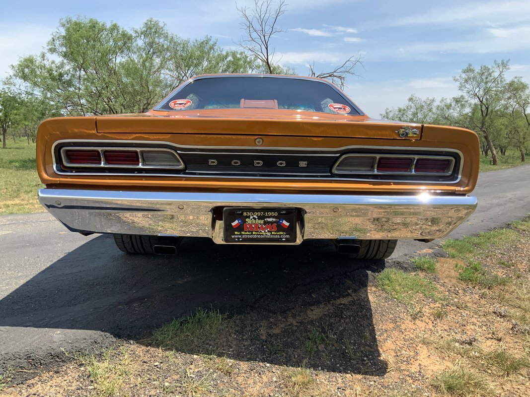 Welcome to Street Dreams as we celebrate our 25th year in the classic and muscle car business. When sales figures for Pontiac's 1964 GTO started coming in, the remainder of America's automobile manufacturers scrambled to develop similar performance packages. The recipe was simple; stuff the largest engine possible into an affordable mid-size car and sprinkle with graphics, scoops, and exciting colors. In 1968 a quirky collaboration between Warner Brothers and Plymouth resulted in the Road Runner, a wildly successful car that more than doubled expected sales. Envious Dodge dealers demanded a similar product, and the Super Bee was born. This amazing Bronze Fire Metallic (T5) 1969 Dodge Super Bee is an excellent and unique example of classic Mopar muscle. Lift the sculpted hood and you'll be greeted by the strong 383 Magnum V8 big block (E63) that's been fortified with a Holley carburetor, an Edelbrock aluminum intake manifold, and an aluminum radiator. Additional features include power steering, front disc brakes, correct A833 4-speed manual transmission (D21) with pistol grip shifter, stunning bespoke custom leather interior and trunk, QA1 adjustable tie rods, lower A-arms, and shocks, a stout front stabilizer bar, optional Quarter scoops (M46), Rallye Gauge Cluster (A62), AM radio (R11), transverse stripe delete (V88), and aggressive tires (245/45ZR17 F, 315/35ZR17 R) wrapped around alloy wheels. This classic should really be seen/smelled in person; it smells like a fine Italian leather store! One more magnificent Mopar from the Texas Hill Country's premier source for classic cars and the team that can make your dream a reality. Street Dreams 830-997-1950) is a full service dealership that can assist with worldwide delivery, insurance, and financing options.