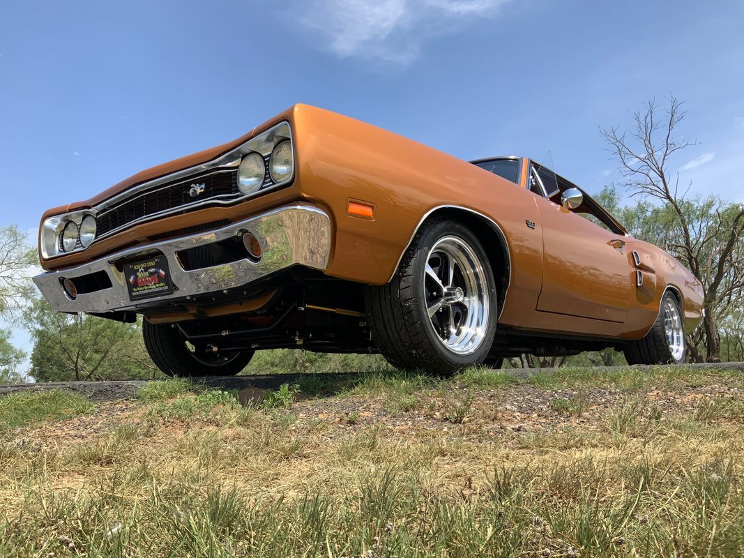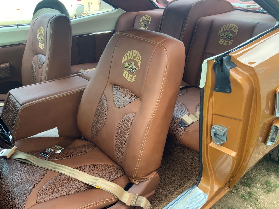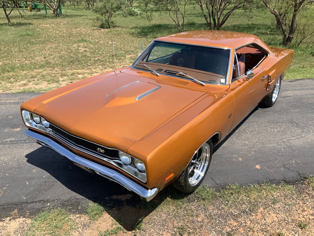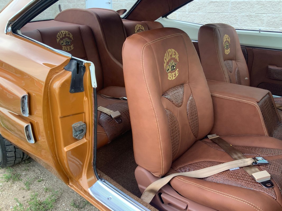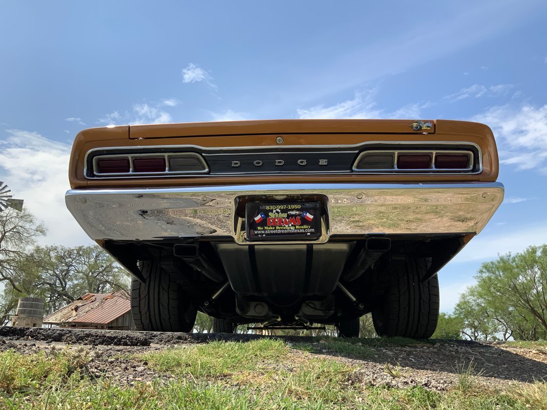 Welcome to Street Dreams as we celebrate our 25th year in the classic and muscle car business. When sales figures for Pontiac's 1964 GTO started coming in, the remainder of America's automobile manufacturers scrambled to develop similar performance packages. The recipe was simple; stuff the largest engine possible into an affordable mid-size car and sprinkle with graphics, scoops, and exciting colors. In 1968 a quirky collaboration between Warner Brothers and Plymouth resulted in the Road Runner, a wildly successful car that more than doubled expected sales. Envious Dodge dealers demanded a similar product, and the Super Bee was born. This amazing Bronze Fire Metallic (T5) 1969 Dodge Super Bee is an excellent and unique example of classic Mopar muscle. Lift the sculpted hood and you'll be greeted by the strong 383 Magnum V8 big block (E63) that's been fortified with a Holley carburetor, an Edelbrock aluminum intake manifold, and an aluminum radiator. Additional features include power steering, front disc brakes, correct A833 4-speed manual transmission (D21) with pistol grip shifter, stunning bespoke custom leather interior and trunk, QA1 adjustable tie rods, lower A-arms, and shocks, a stout front stabilizer bar, optional Quarter scoops (M46), Rallye Gauge Cluster (A62), AM radio (R11), transverse stripe delete (V88), and aggressive tires (245/45ZR17 F, 315/35ZR17 R) wrapped around alloy wheels. This classic should really be seen/smelled in person; it smells like a fine Italian leather store! One more magnificent Mopar from the Texas Hill Country's premier source for classic cars and the team that can make your dream a reality. Street Dreams 830-997-1950) is a full service dealership that can assist with worldwide delivery, insurance, and financing options.