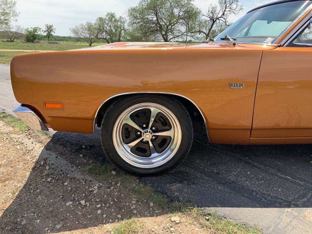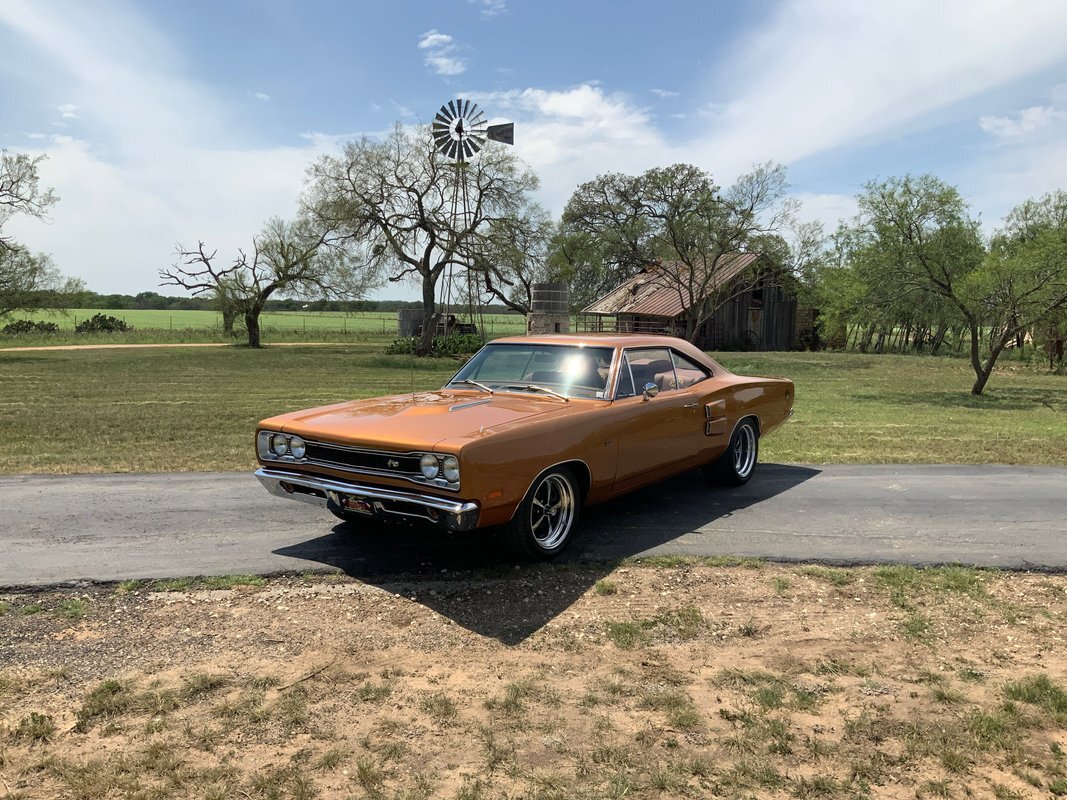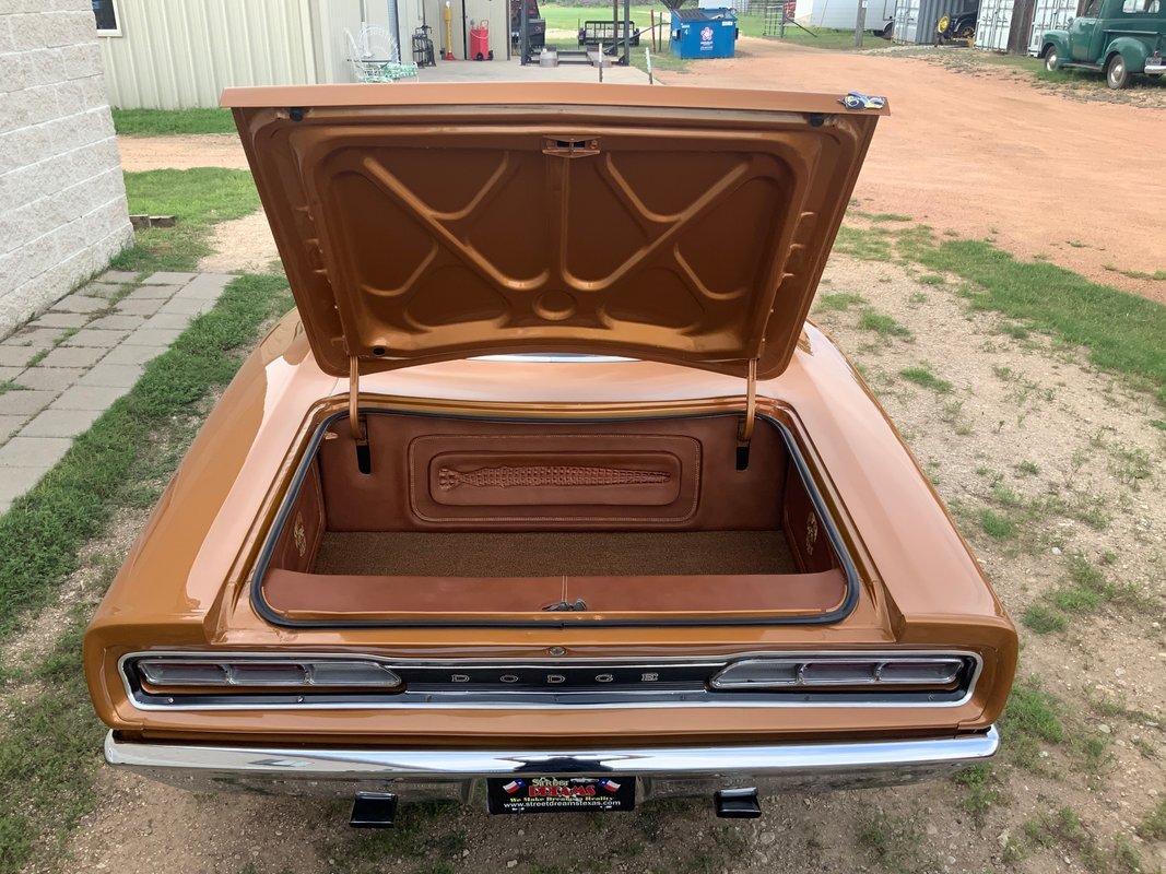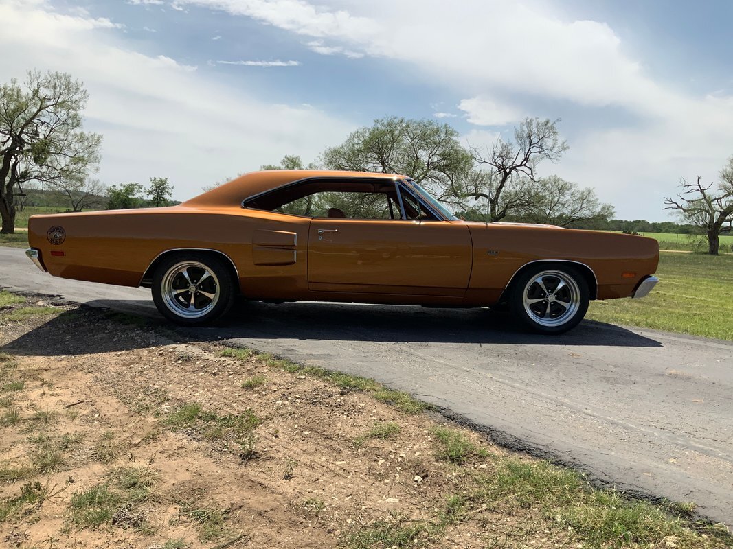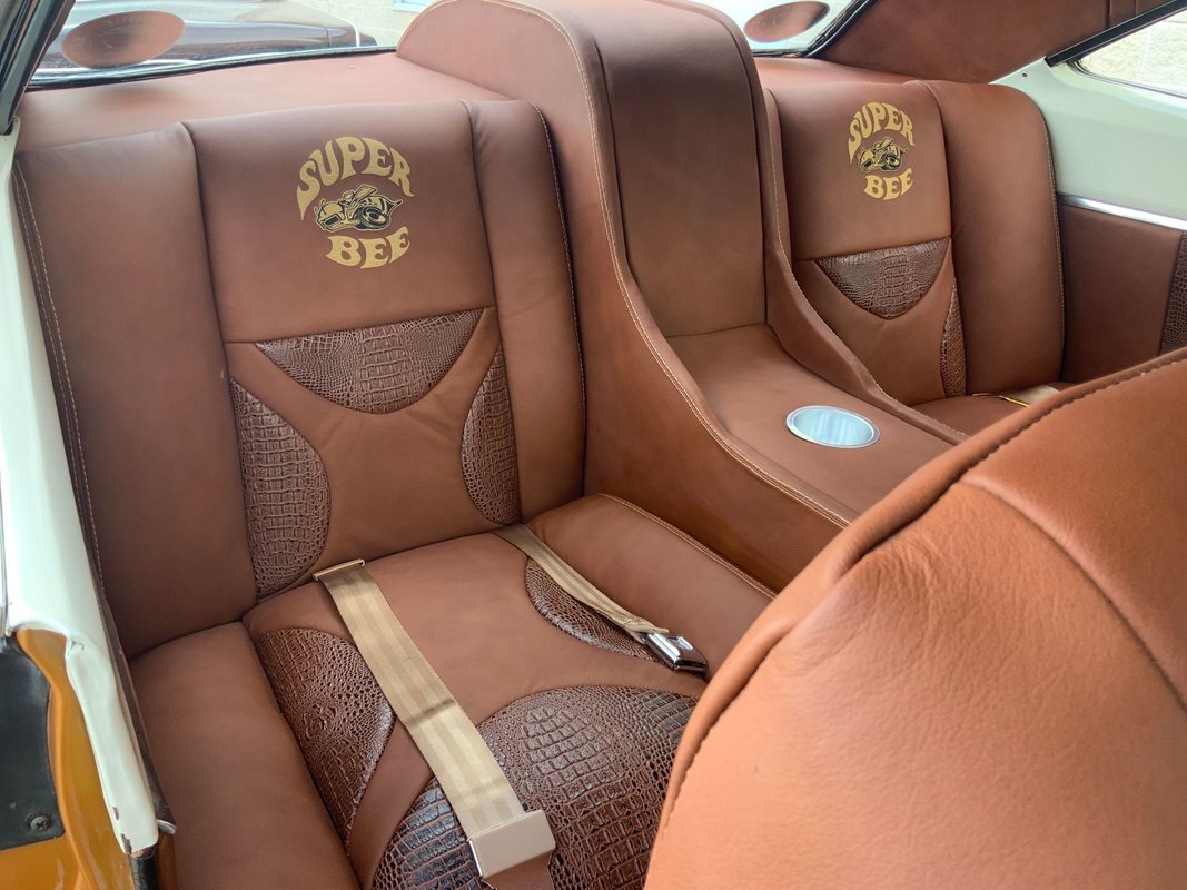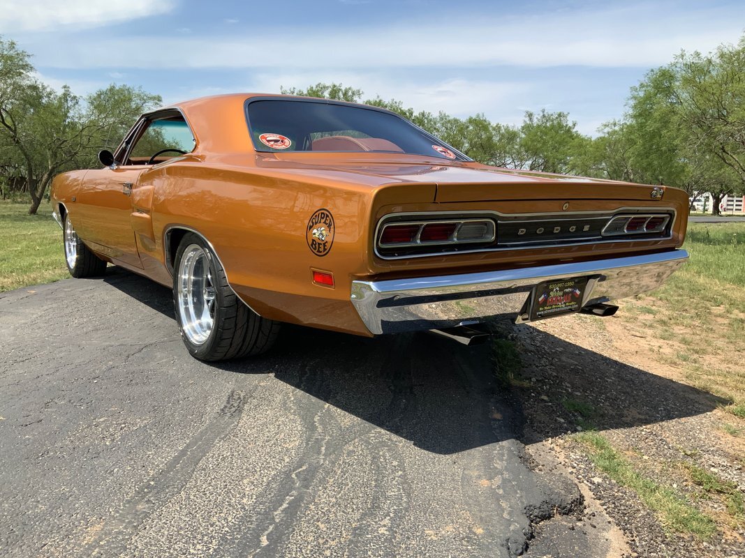 Welcome to Street Dreams as we celebrate our 25th year in the classic and muscle car business. When sales figures for Pontiac's 1964 GTO started coming in, the remainder of America's automobile manufacturers scrambled to develop similar performance packages. The recipe was simple; stuff the largest engine possible into an affordable mid-size car and sprinkle with graphics, scoops, and exciting colors. In 1968 a quirky collaboration between Warner Brothers and Plymouth resulted in the Road Runner, a wildly successful car that more than doubled expected sales. Envious Dodge dealers demanded a similar product, and the Super Bee was born. This amazing Bronze Fire Metallic (T5) 1969 Dodge Super Bee is an excellent and unique example of classic Mopar muscle. Lift the sculpted hood and you'll be greeted by the strong 383 Magnum V8 big block (E63) that's been fortified with a Holley carburetor, an Edelbrock aluminum intake manifold, and an aluminum radiator. Additional features include power steering, front disc brakes, correct A833 4-speed manual transmission (D21) with pistol grip shifter, stunning bespoke custom leather interior and trunk, QA1 adjustable tie rods, lower A-arms, and shocks, a stout front stabilizer bar, optional Quarter scoops (M46), Rallye Gauge Cluster (A62), AM radio (R11), transverse stripe delete (V88), and aggressive tires (245/45ZR17 F, 315/35ZR17 R) wrapped around alloy wheels. This classic should really be seen/smelled in person; it smells like a fine Italian leather store! One more magnificent Mopar from the Texas Hill Country's premier source for classic cars and the team that can make your dream a reality. Street Dreams 830-997-1950) is a full service dealership that can assist with worldwide delivery, insurance, and financing options.