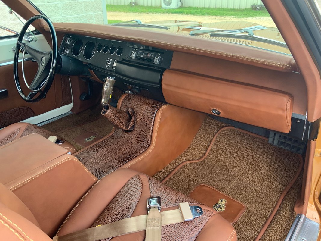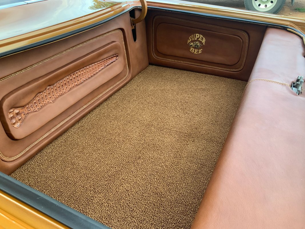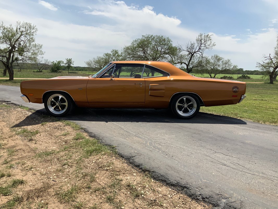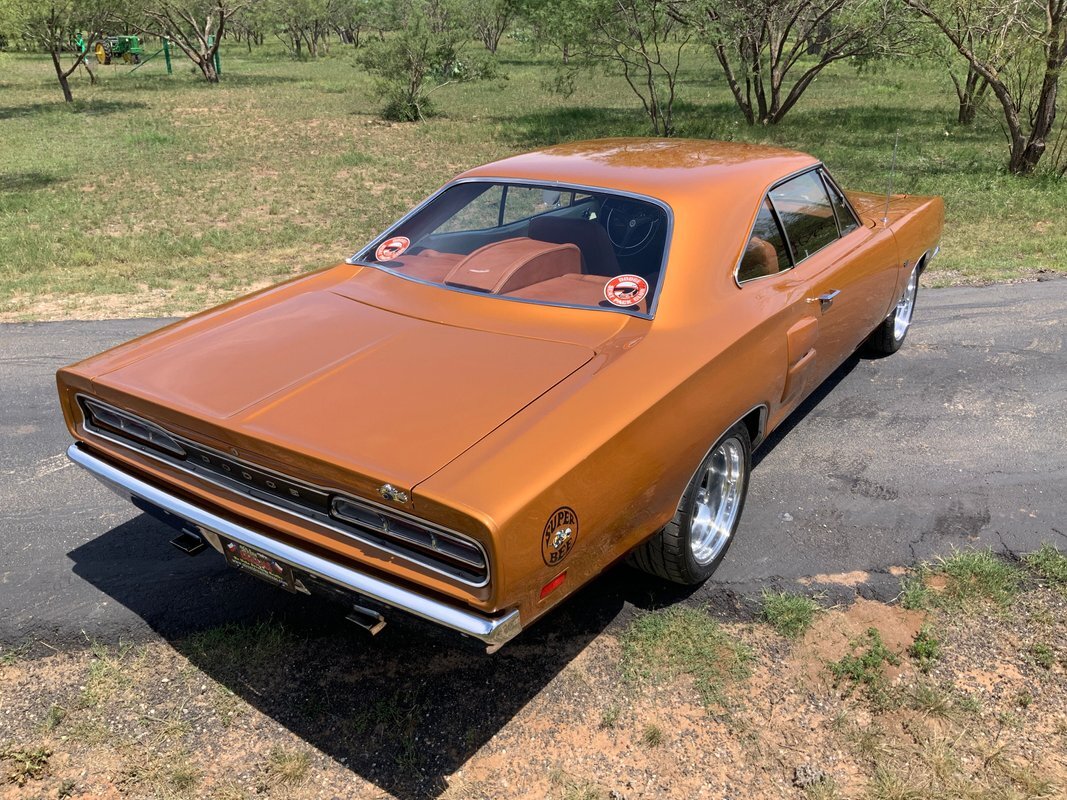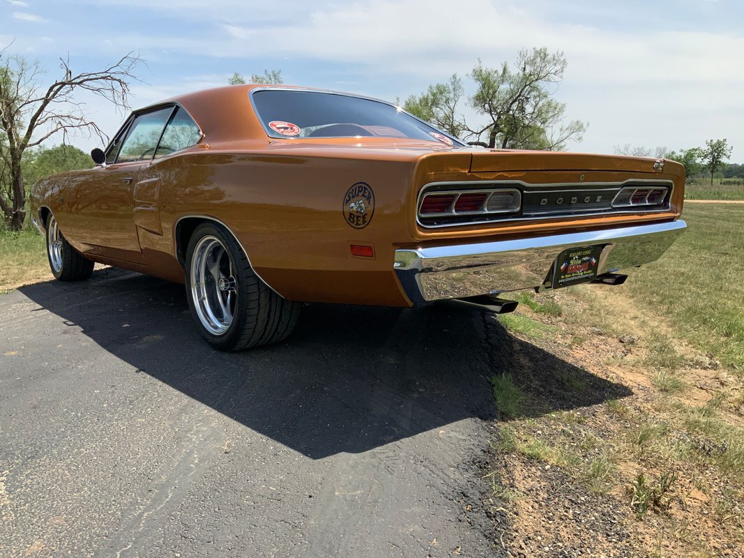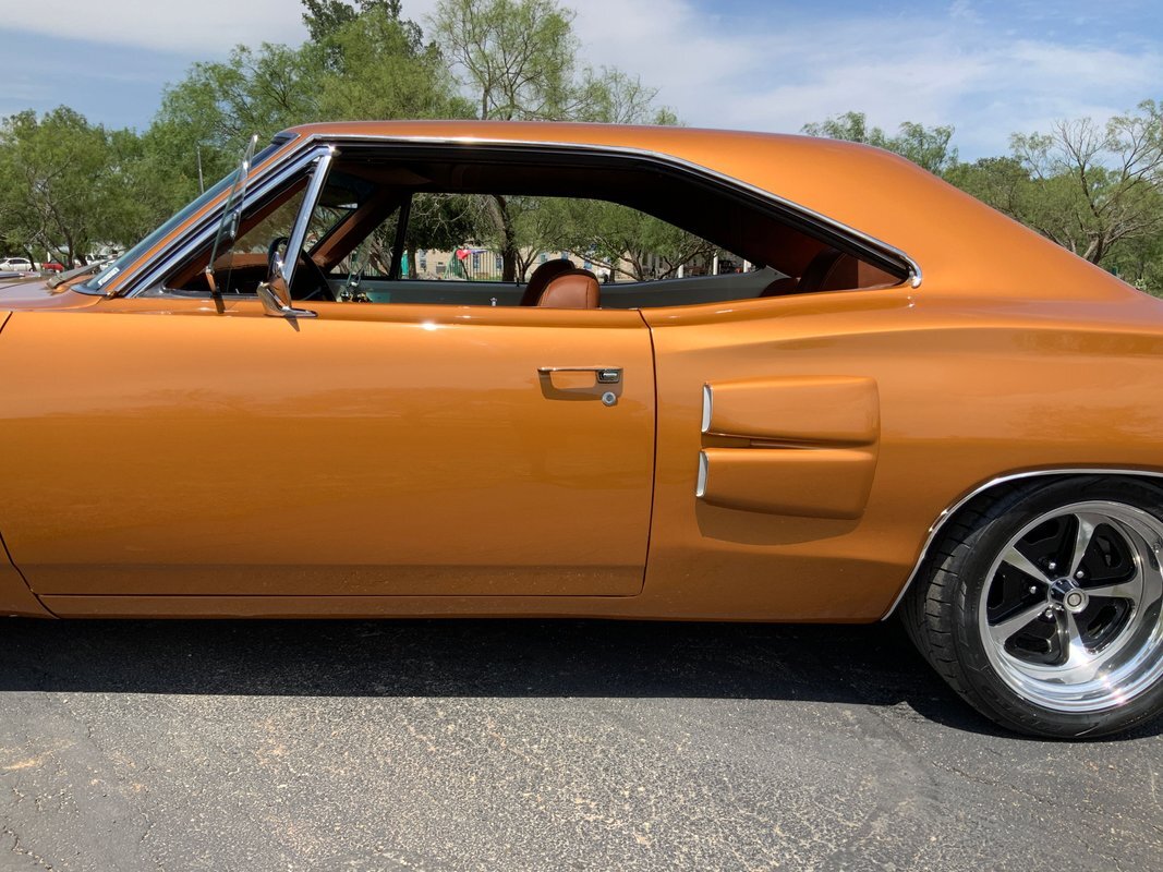 Welcome to Street Dreams as we celebrate our 25th year in the classic and muscle car business. When sales figures for Pontiac's 1964 GTO started coming in, the remainder of America's automobile manufacturers scrambled to develop similar performance packages. The recipe was simple; stuff the largest engine possible into an affordable mid-size car and sprinkle with graphics, scoops, and exciting colors. In 1968 a quirky collaboration between Warner Brothers and Plymouth resulted in the Road Runner, a wildly successful car that more than doubled expected sales. Envious Dodge dealers demanded a similar product, and the Super Bee was born. This amazing Bronze Fire Metallic (T5) 1969 Dodge Super Bee is an excellent and unique example of classic Mopar muscle. Lift the sculpted hood and you'll be greeted by the strong 383 Magnum V8 big block (E63) that's been fortified with a Holley carburetor, an Edelbrock aluminum intake manifold, and an aluminum radiator. Additional features include power steering, front disc brakes, correct A833 4-speed manual transmission (D21) with pistol grip shifter, stunning bespoke custom leather interior and trunk, QA1 adjustable tie rods, lower A-arms, and shocks, a stout front stabilizer bar, optional Quarter scoops (M46), Rallye Gauge Cluster (A62), AM radio (R11), transverse stripe delete (V88), and aggressive tires (245/45ZR17 F, 315/35ZR17 R) wrapped around alloy wheels. This classic should really be seen/smelled in person; it smells like a fine Italian leather store! One more magnificent Mopar from the Texas Hill Country's premier source for classic cars and the team that can make your dream a reality. Street Dreams 830-997-1950) is a full service dealership that can assist with worldwide delivery, insurance, and financing options.