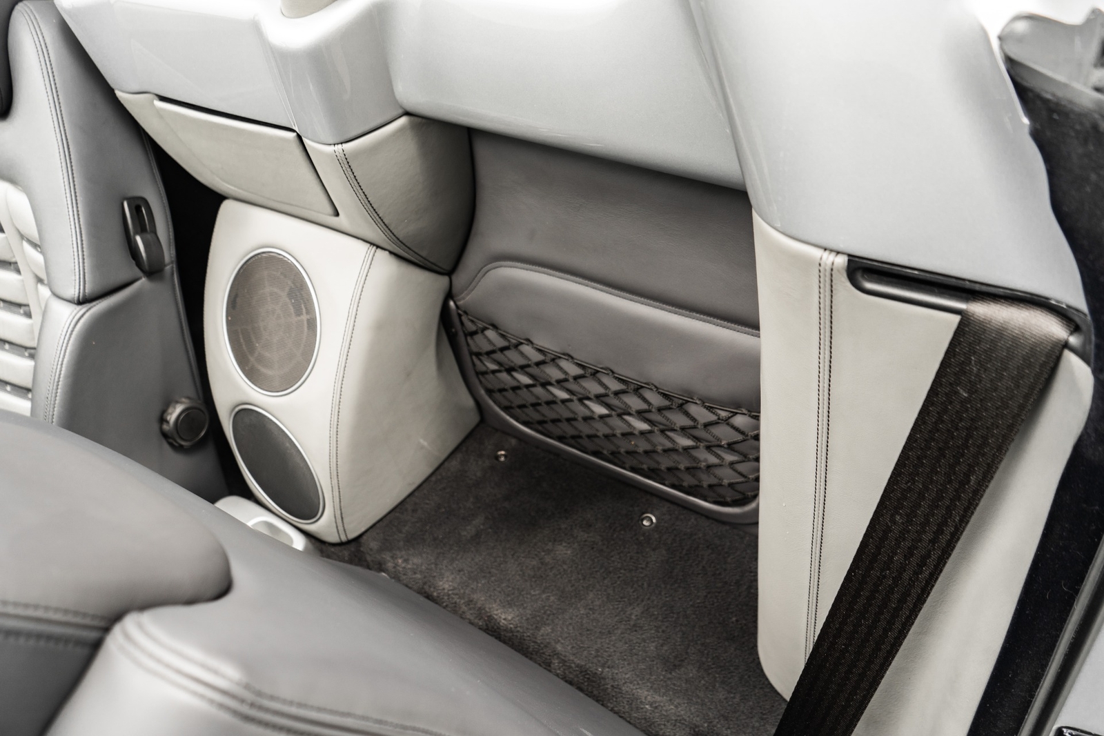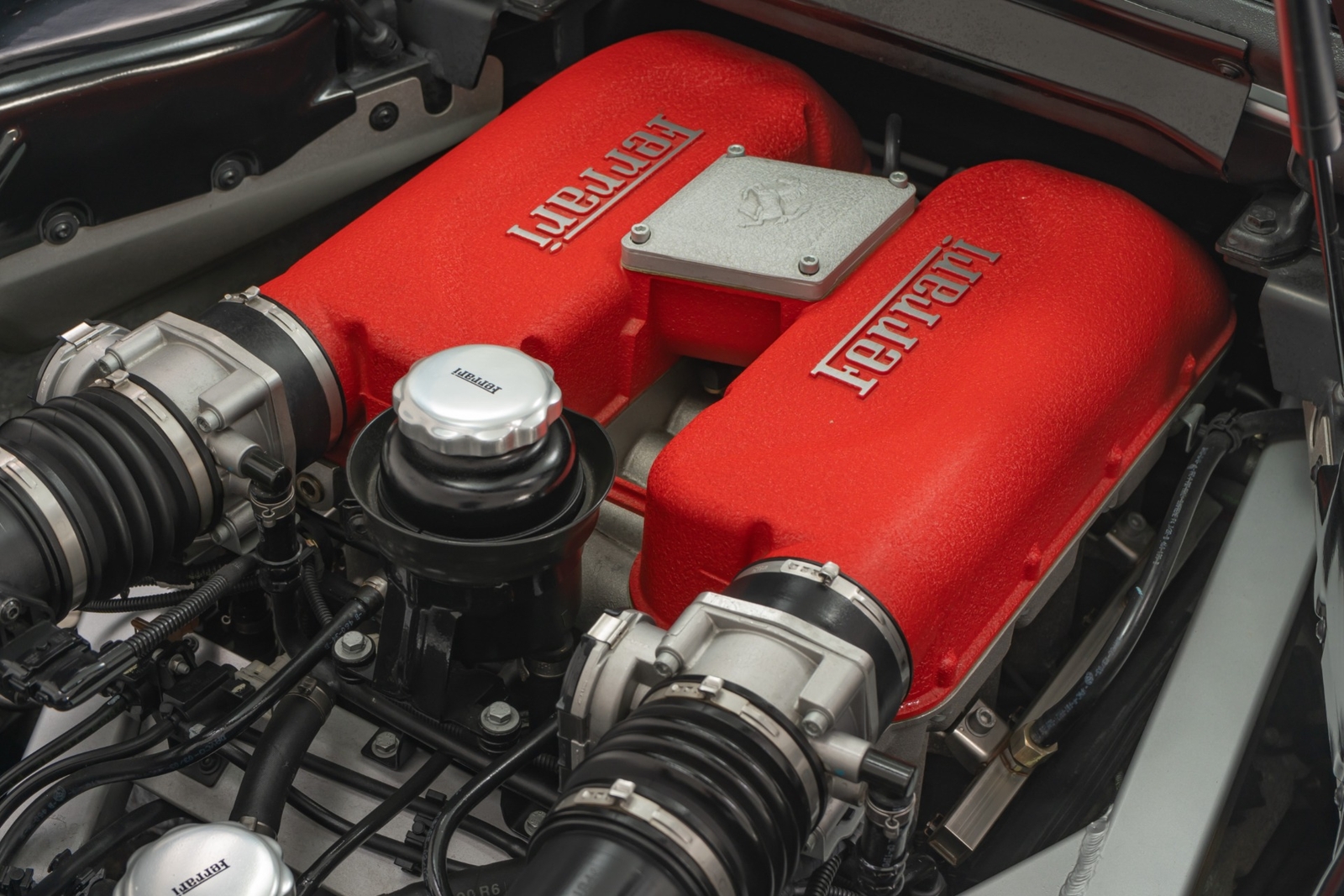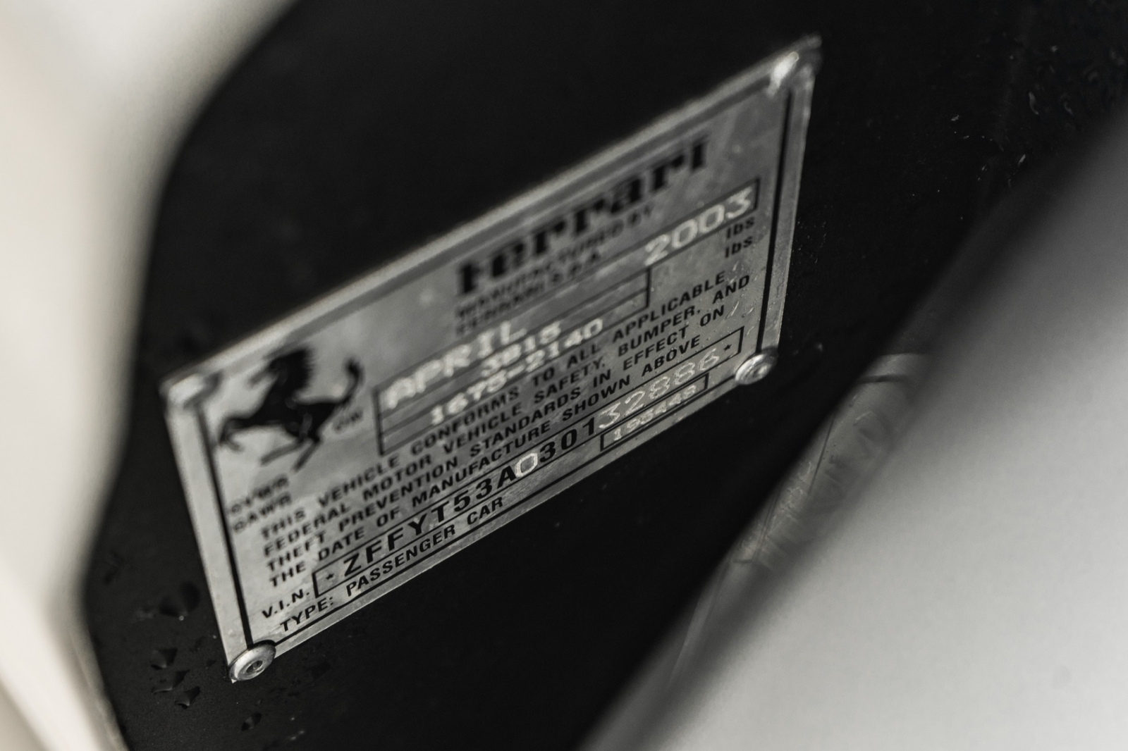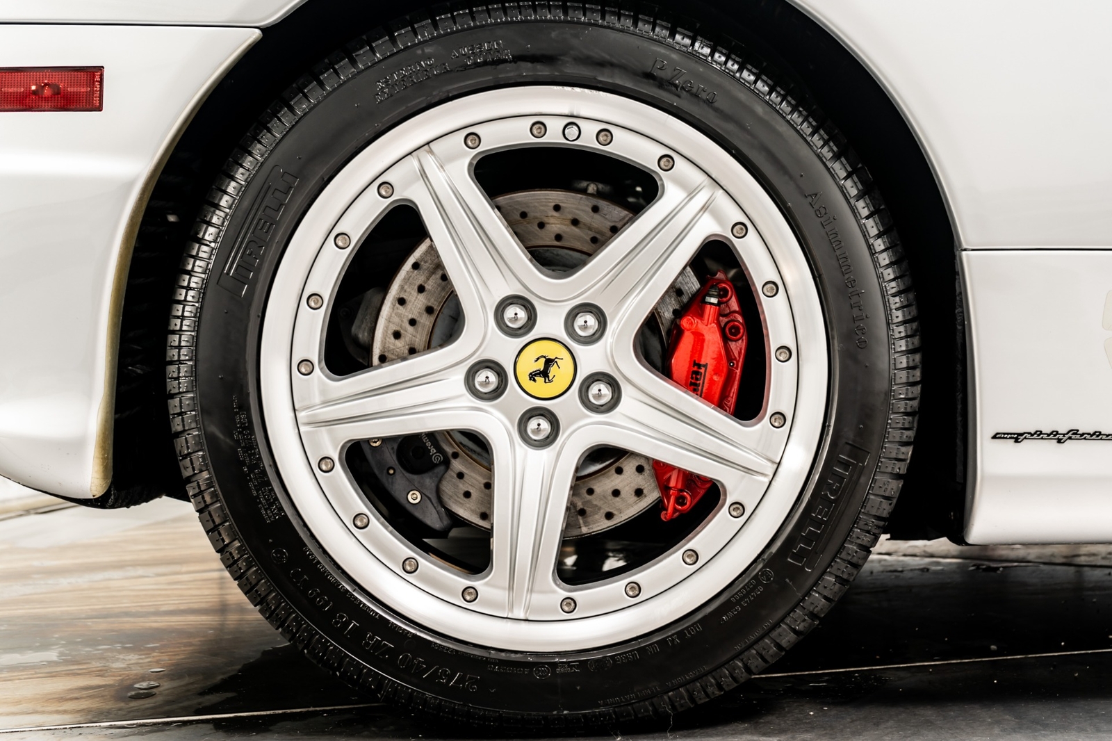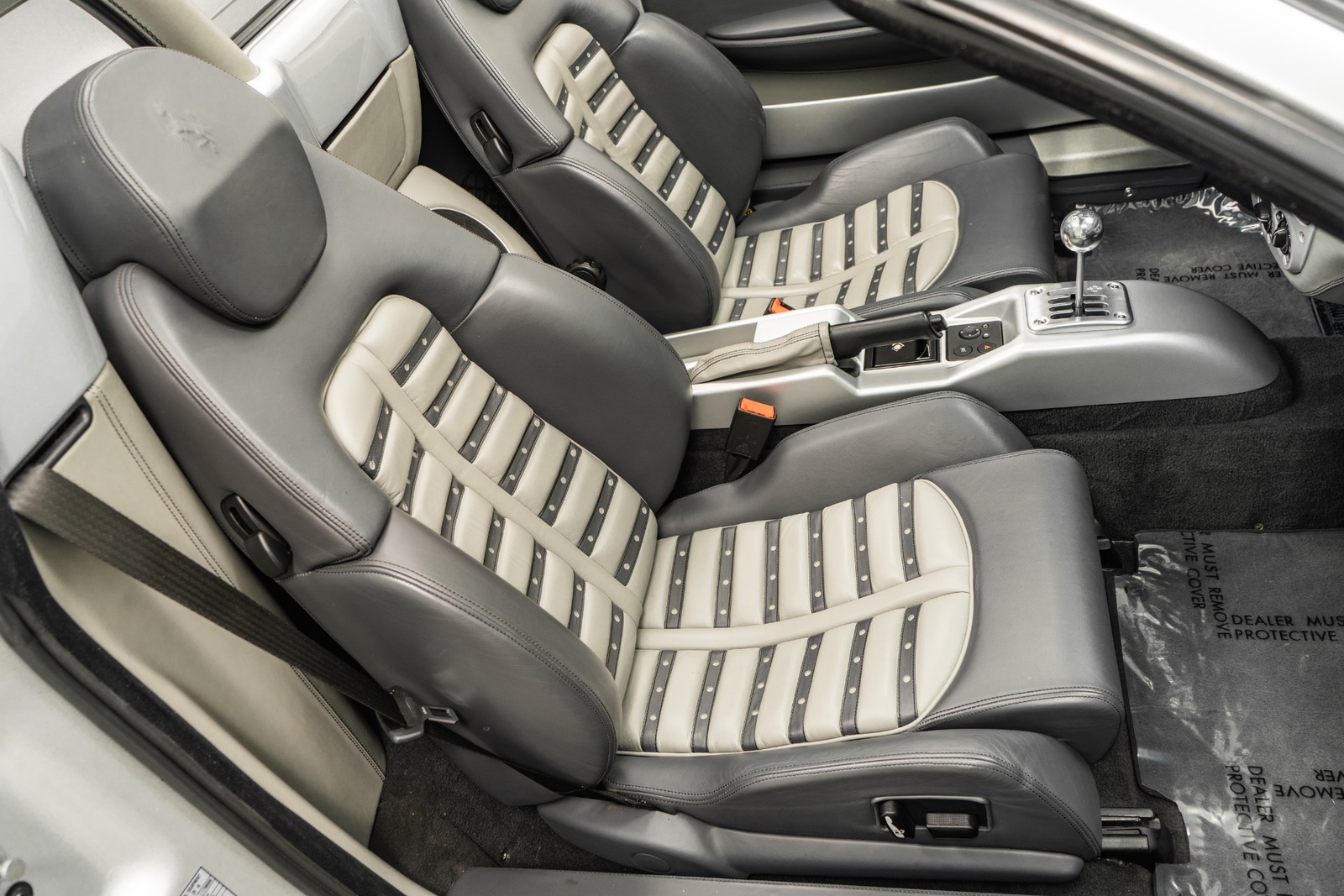 We have just added to our extensive exotic car inventory a beautiful 2003 Ferrari 360 Spider in Argento Nurburgring with Grigio Scuro leather interior and only 9,407 miles. This 360 is equipped with: 3.6 Liter 5 valve V8, RARE 6 speed manual transmission, dedication plate, red brake calipers, 18 inch modular wheels, Challenge style rear grille, Challenge style front grille inserts, high power HiFi, power seats with Daytona style seat upholstery, Daytona inserts in Grigio, upper dash in Grigio Scuro, lower dash in Grigio, two tone steering wheel, roll bar hoops in Grigio, leather rear wall and extended sills, black convertible top and much more. Also included are the tool kit, tire inflator, Charge-O-Mat charger, car cover and service records. A belt and fluid service performed the second week of March 2023 and new tires were installed last fall. We sold this car in the summer of 2007, and it was so nice we kept tabs on it. When it became available again we didn't hesitate to bring it back!