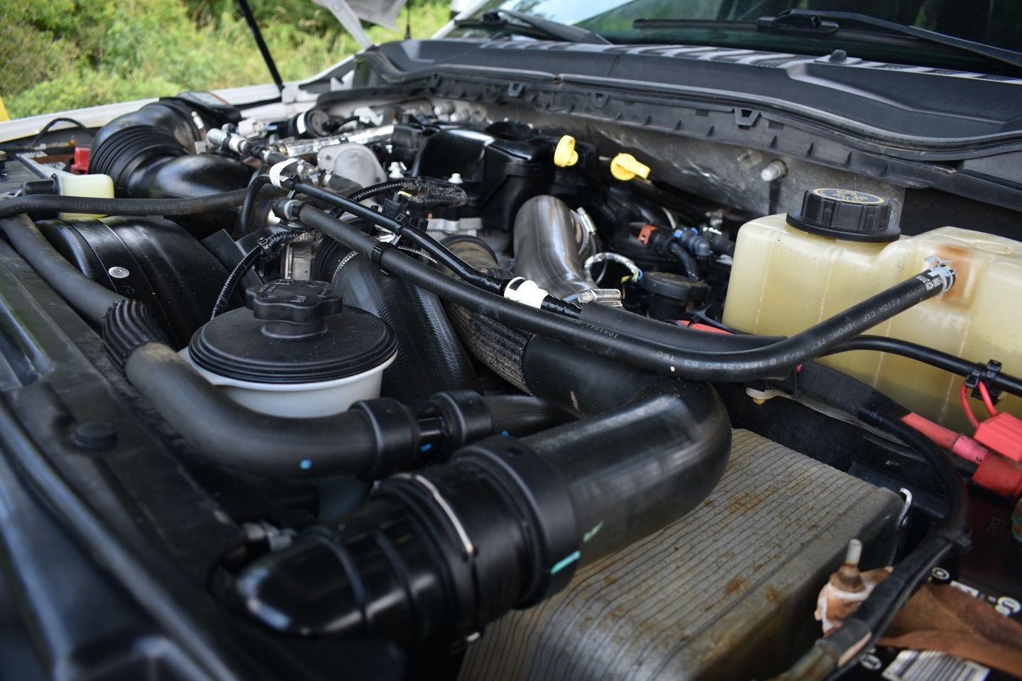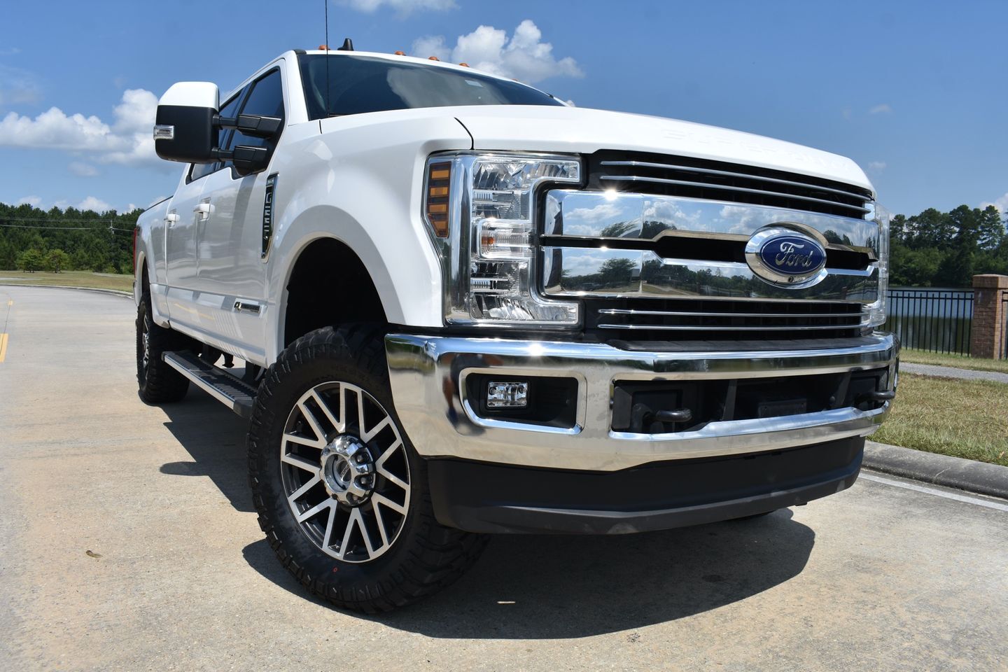 You are looking at a 2019 Ford F-250 Crew Cab Lariat FX4 . It is powered with a 6.7L Powerstroke Diesel V-8 and automatic transmission. It is equipped with tilt, cruise, power windows, power locks, power mirrors, factory navigation with am/fm/cd player, spray in bed liner , factory gooseneck hitch, and receiver hitch. Also included are the owner's manuals and one keyless remote.