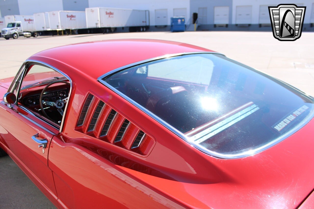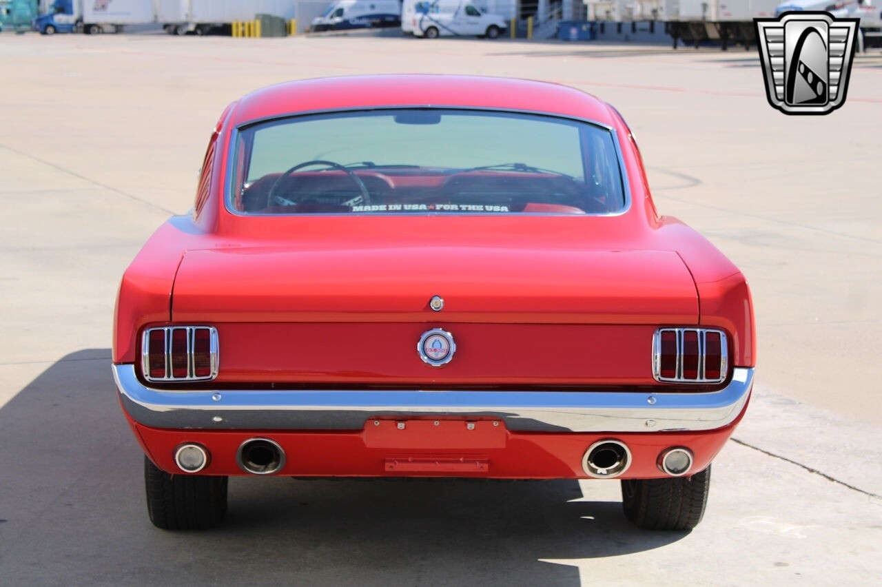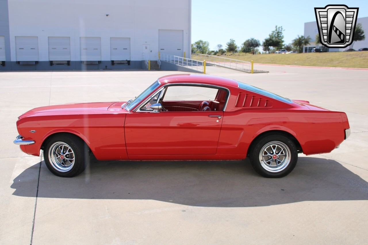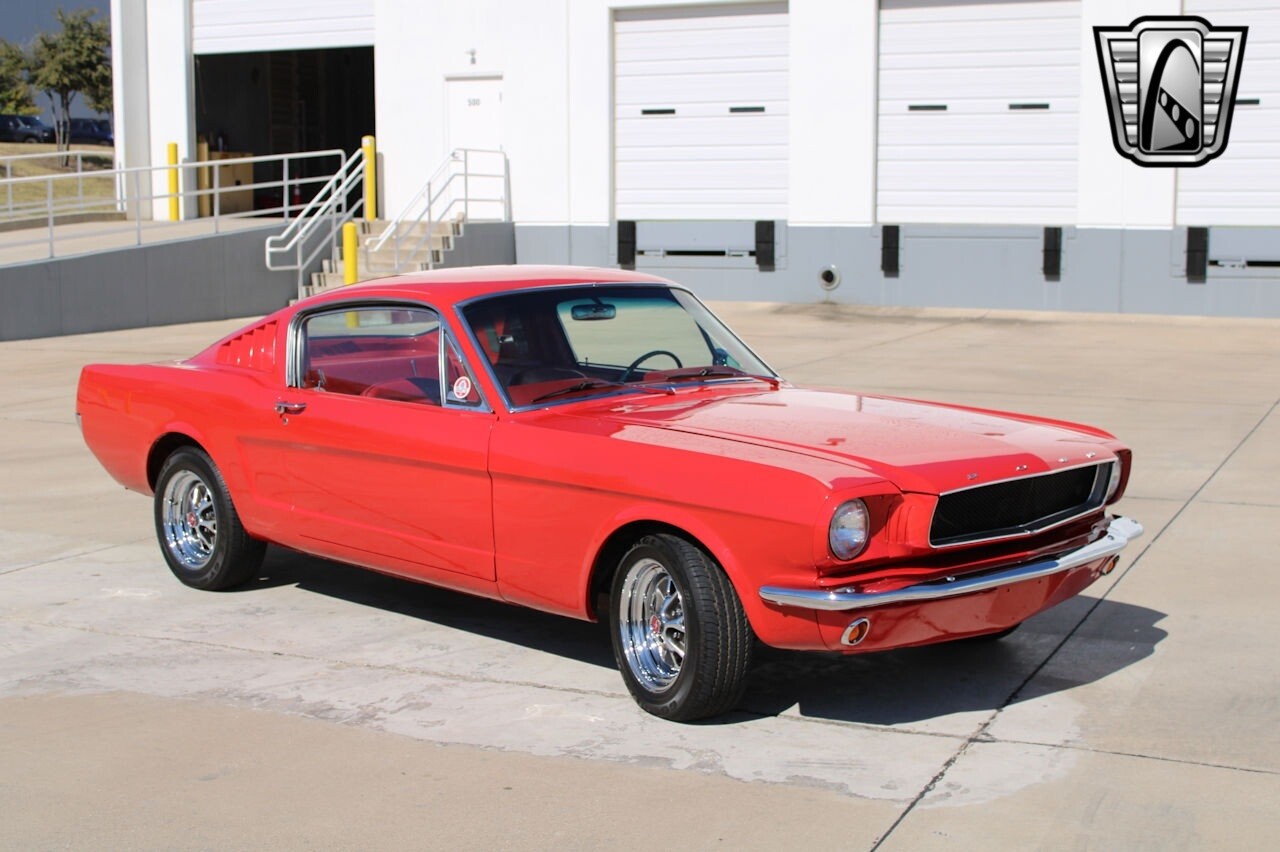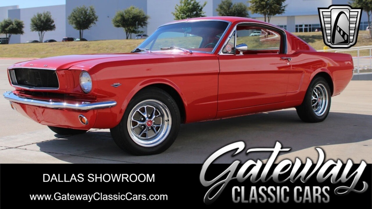 Gateway Classic Cars of Dallas is excited to present this sharp 1965 Ford Mustang 2+2 Fastback. This 1965 Ford Mustang is a C-code fastback that has had a subsequent multi-year refurbishment performed. Some work included repairing and refinishing the body in red, refurbishing the color-coordinated cabin, overhauling the suspension, and rebuilding the 289ci V8 and three-speed automatic transmission. Some options include 15" chrome wheels with radial tires, tubular headers, a GT-style rear valance, a limited-slip differential, and a push-button AM radio. The previous owner enjoyed this Mustang for about 24-years and states that the work performed by Sargent's Auto Rebuild in Snohomish, Washington. Some items accomplished were to have stripped the car before replacing portions of the front end, taillight panel, and weather seals. The chrome and stainless-steel trim were replaced according to the seller. The car was modified with a GT-style rear valance with integrated exhaust exits as well as LED lighting, and the front section of the wiring harness has reportedly been replaced. Additional updates include front hubs and rear drum components, replacement suspension, Sway bar, Tie rods, ball joints, Bushings, Control arms, Front coil shocks, rear leaf springs, Idler arm, front bucket seats reupholstered in red vinyl, accompanied by a matching rear bench along with a color-coordinated dashboard, door panels, and carpets. Equipment includes a heater, lap belts for the front occupants, a center console, crank windows, and wood-rimmed steering wheel fronts a horizontal 120-mph speedometer flanked by auxiliary gauges. An AutoMeter 8k-rpm tachometer is mounted to the steering column. The five-digit odometer shows 6k miles, and total mileage is unknown. Previous owner states that ARP hardware, a COMP Cams camshaft, high-flow water pump, oil pumps, and PerTronix ignition were fitted. Additional modifications include an Edelbrock intake manifold and carburetor, ceramic-coated headers, a dual exhaust system, and a gold-finished air cleaner and valve covers. 289 CID V8 power is delivered to the rear wheels via a three-speed C4 automatic transmission said to have been rebuilt and fitted with a shift kit. The 3.25:1 limited slip differential was installed in 2005, and the third member was replaced in August 200. If you are looking for a 1st generation fastback, this example should be considered. [ omitted ]. [ omitted ]. Our Dallas Showroom is located at 1250 Mustang Drive Suite 500, Grapevine, TX 76051. [ omitted ].