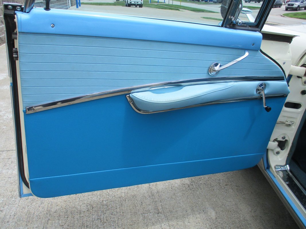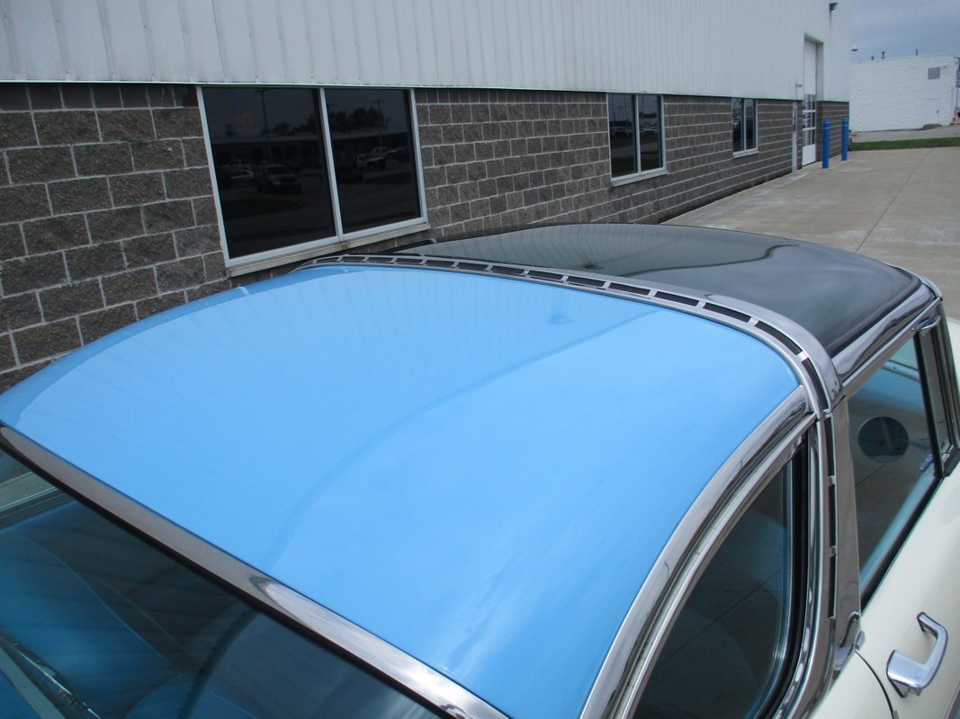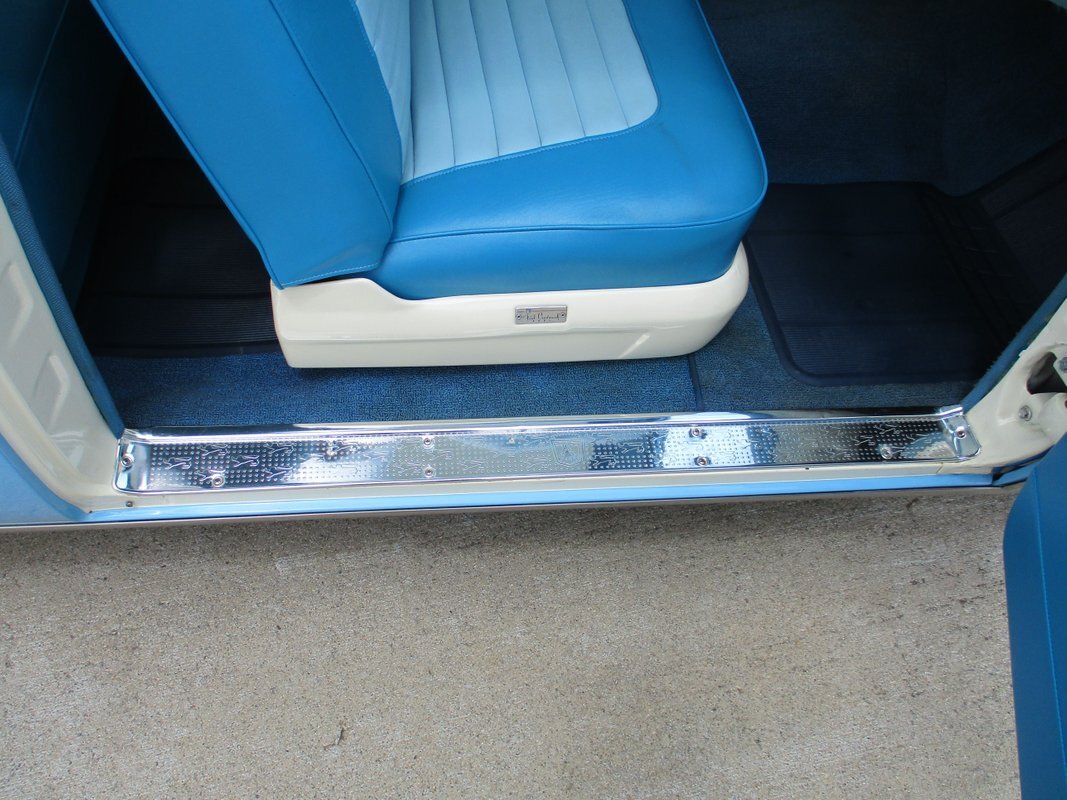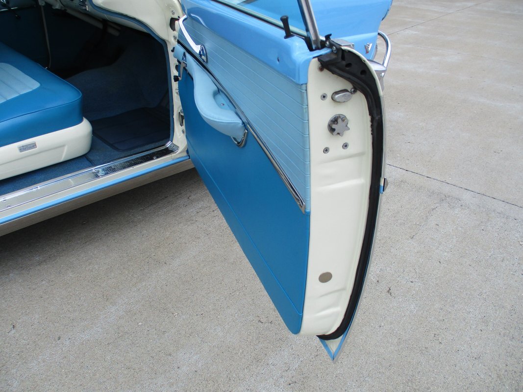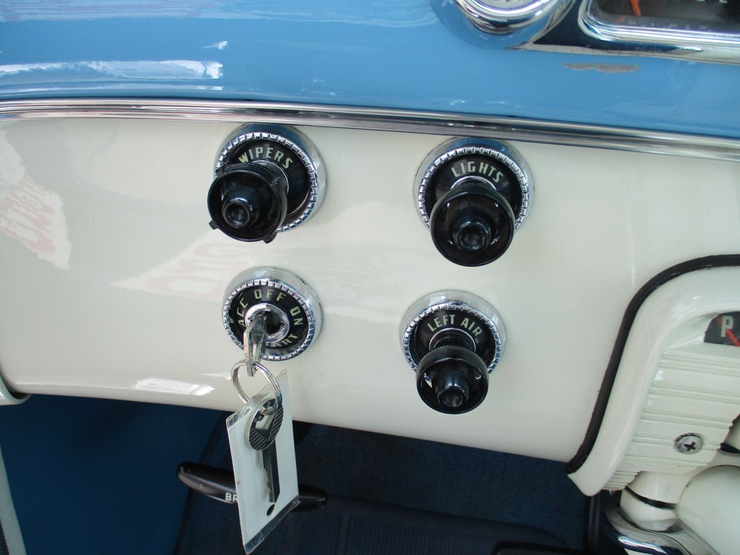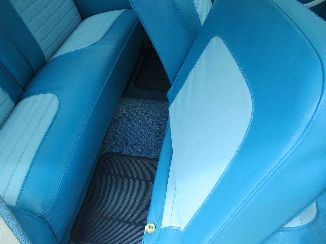 Painted in the captivating Waterfall Blue with a pristine white exterior, every curve and contour of this classic beauty tells a story of timeless elegance. Stepping inside, you're greeted by a luxurious interior adorned in blue and white vinyl, meticulously crafted to evoke a sense of nostalgia and comfort.
