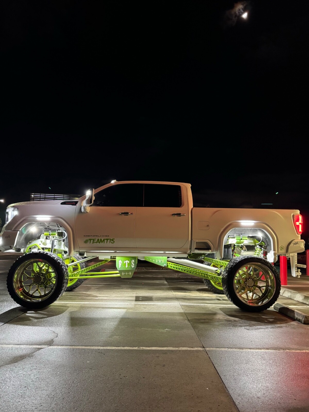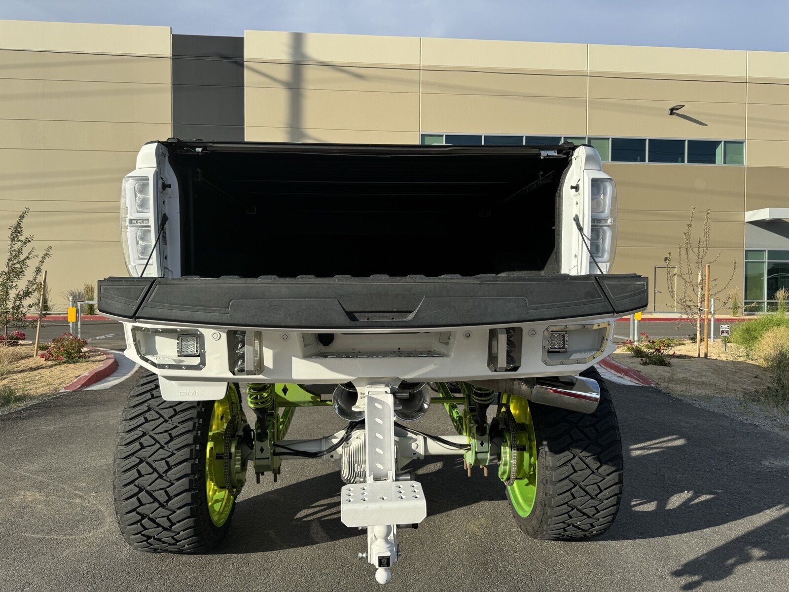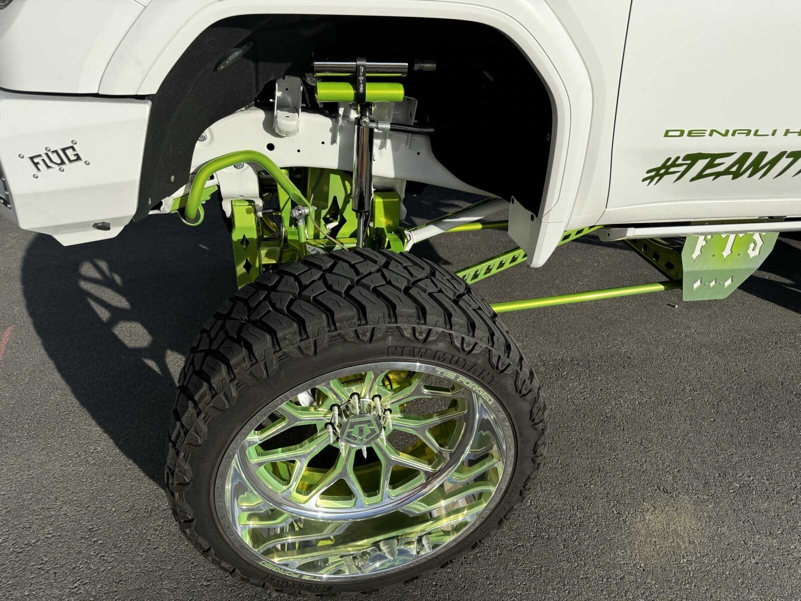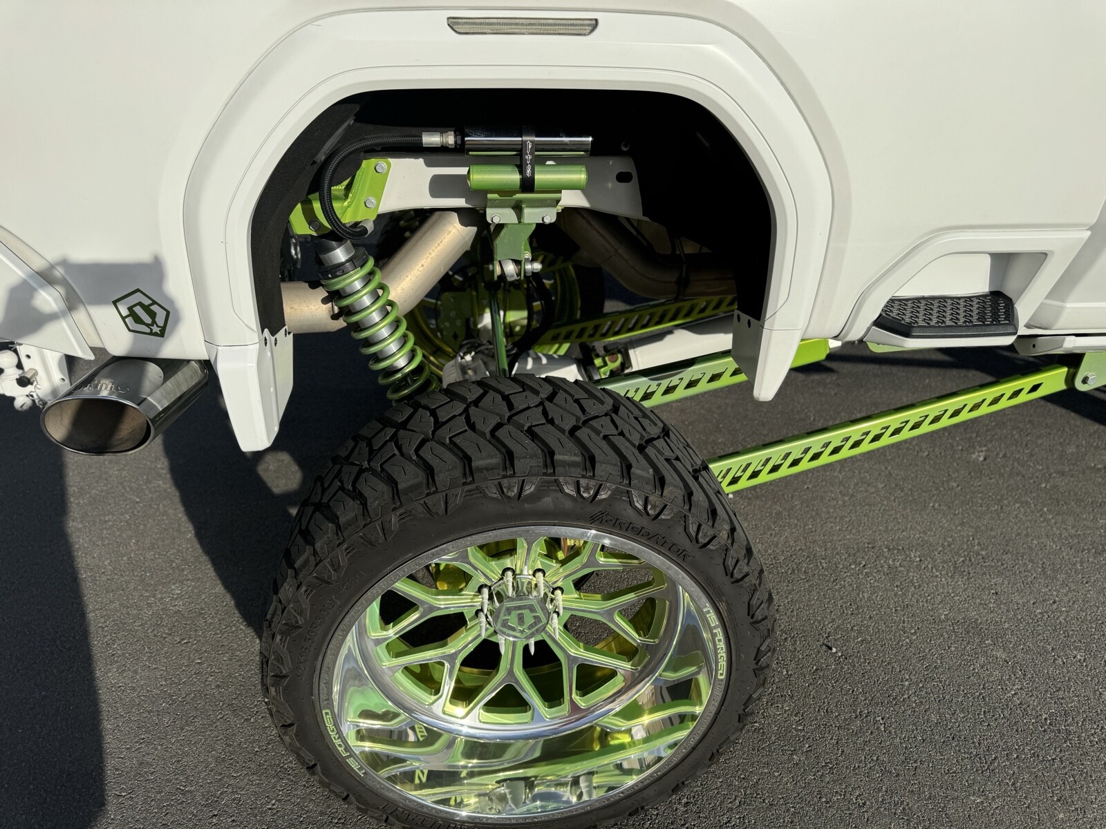 2020 GMC DENALI HD, 22 SEMA truck, 1 Owner, 26.5k miles, 6.6L L5P Duramax diesel, Allison 10 speed transmission, heads up display, Sunroof, window tint 20% and 5%, Avery Dennison Satin white wrap, white frame, 20 inch (FTS) lift kit (King of the bolt ons), box shape track bar upgrade, kryptonite tie rods, Flog steel demon bumpers w/pod upgrades front/back, 30x16 TIS Polished forged wheels, 4216.50 x30 predator new mutant XMT's, 2 inch billet spacers, KapKing floater billet caps, True Spike Lug nuts, 8 piston SSBC Barbarian Brakes, ceramic pads, banks diff cover, Banks catback exhaust, Hornblasters train horns (Admiral), Go recon color matched taillights, color matched headlights white marker switchback, rear view mirrors white lights/switchbacks, white cab lights, 16 Super bright white Rock lights, white wheels rings and pod lights, chrome light up white light grille (All Lighting Trendz), amp electric steps, bulletproof 16 inch drop hitch w/dual ball, have stabilizers never mounted, 4 JL audio w-7 eight inch woofers. Ported box under seat, 3k watt gladen amp, retrax sliding bed cover.