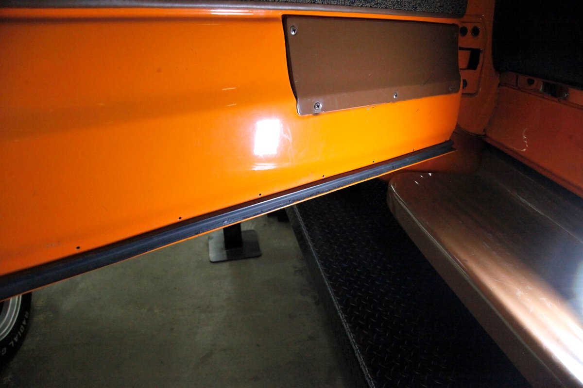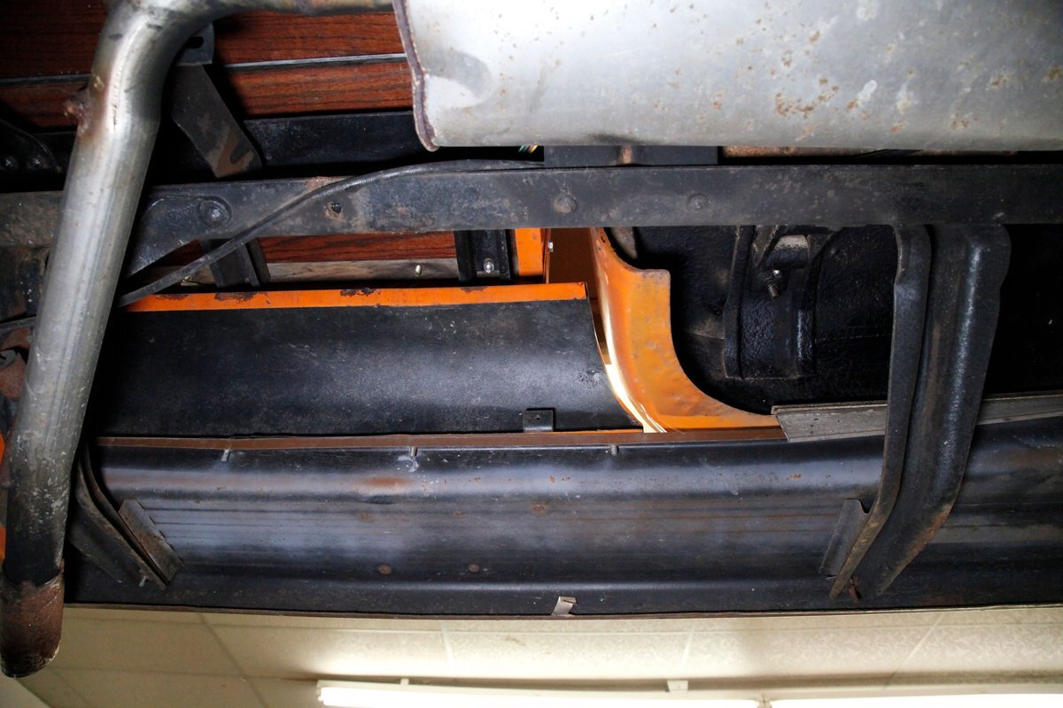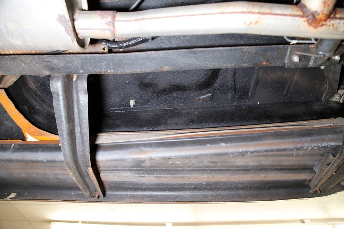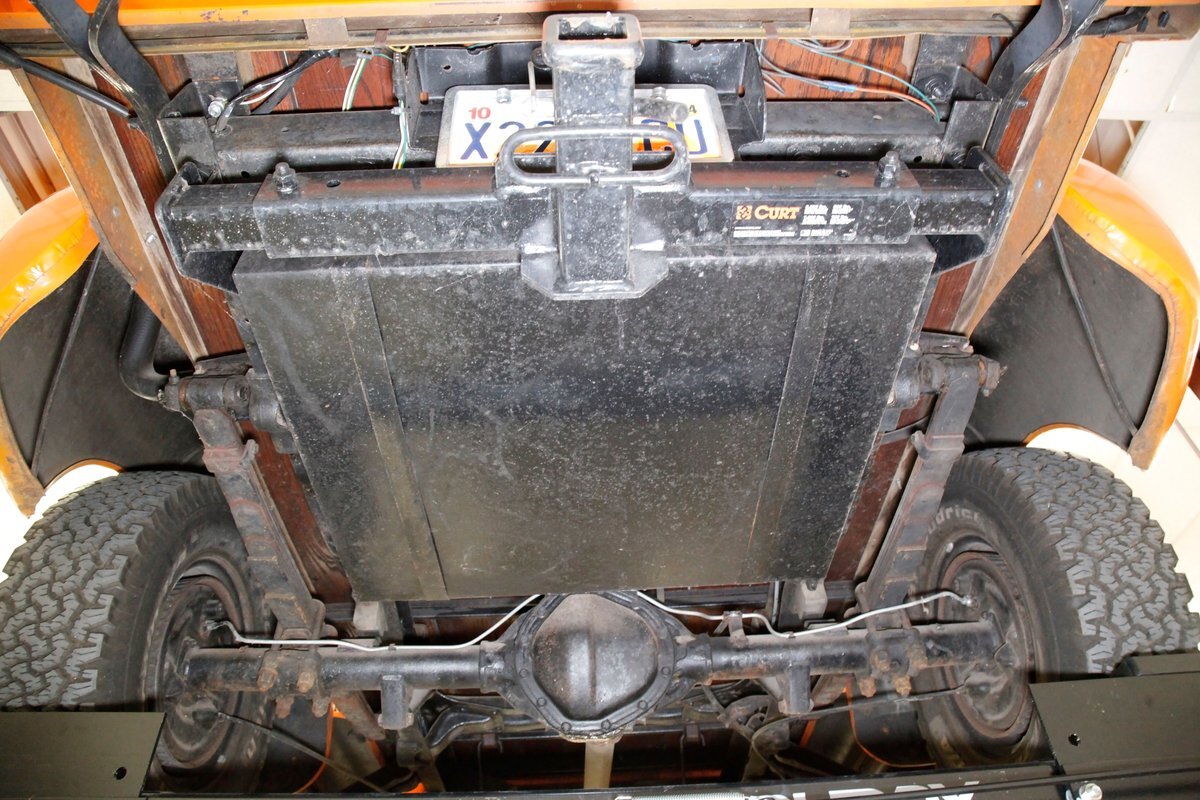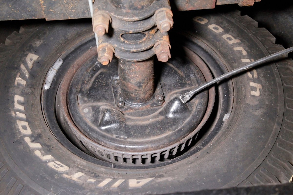 A 350ci Chevrolet engine now graces the dusty but restored engine bay. It codes out as circa 1969 to 1979 and is certainly all buttoned up with its black twin snorkel air cleaner assembly and black valve covers. Inside a few mods have been added in the form of a mild cam and an Edelbrock intake is fed by a 4-barrel carburetor. A TH350 3-speed automatic transmission pushes power from the mill rearward to a 12-bolt rear axle. Oh, and lest I forget the train horns added in the engine bay to clear the path in front of you.