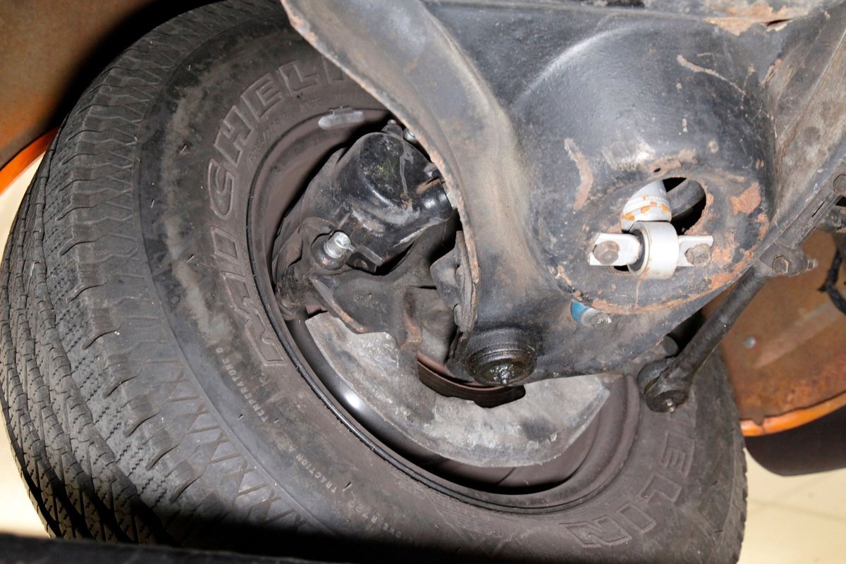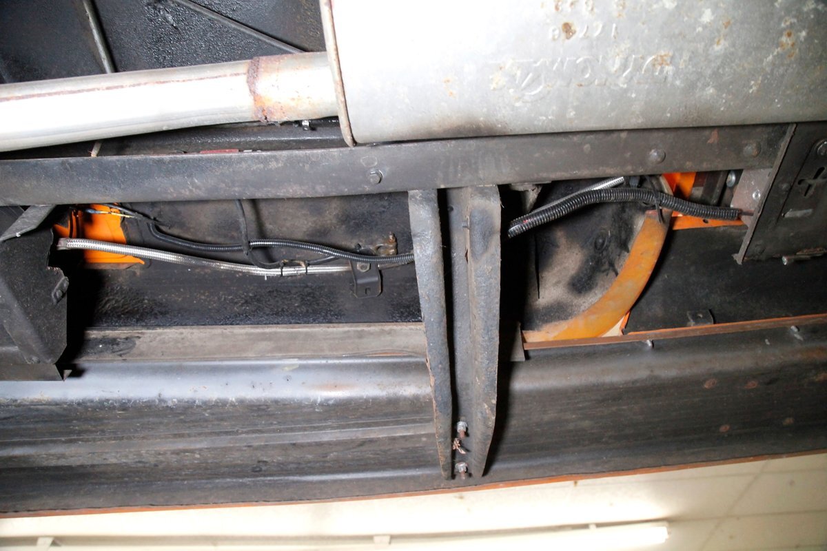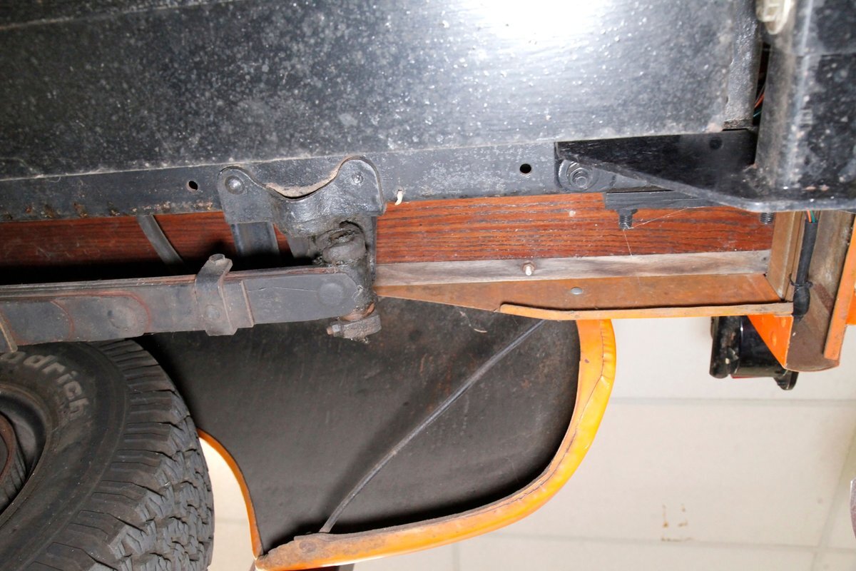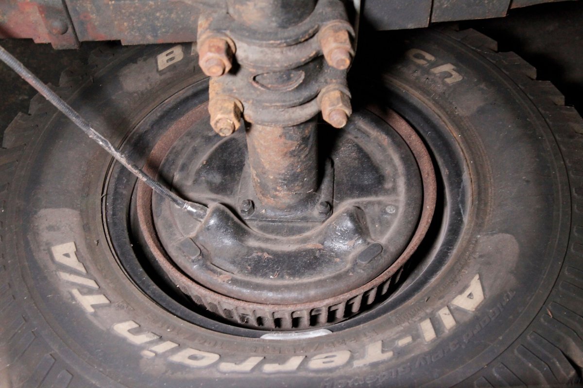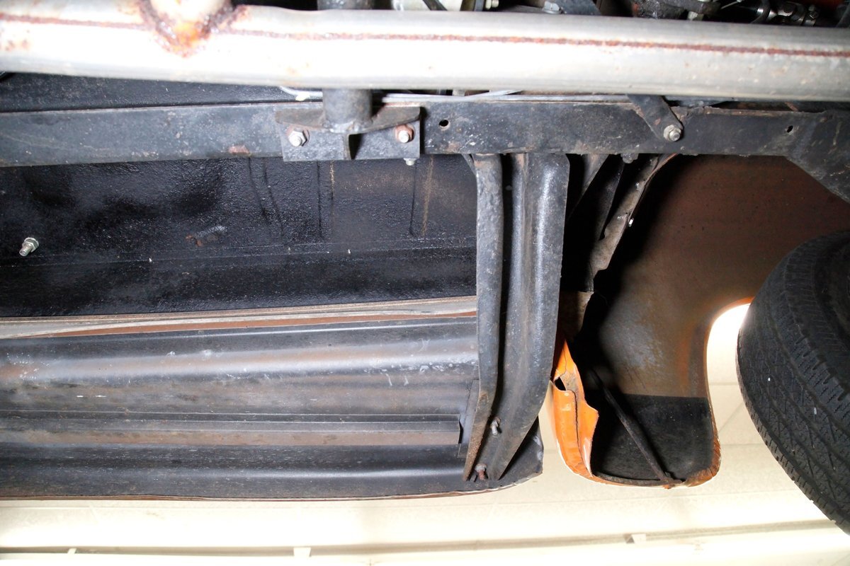 A 350ci Chevrolet engine now graces the dusty but restored engine bay. It codes out as circa 1969 to 1979 and is certainly all buttoned up with its black twin snorkel air cleaner assembly and black valve covers. Inside a few mods have been added in the form of a mild cam and an Edelbrock intake is fed by a 4-barrel carburetor. A TH350 3-speed automatic transmission pushes power from the mill rearward to a 12-bolt rear axle. Oh, and lest I forget the train horns added in the engine bay to clear the path in front of you.