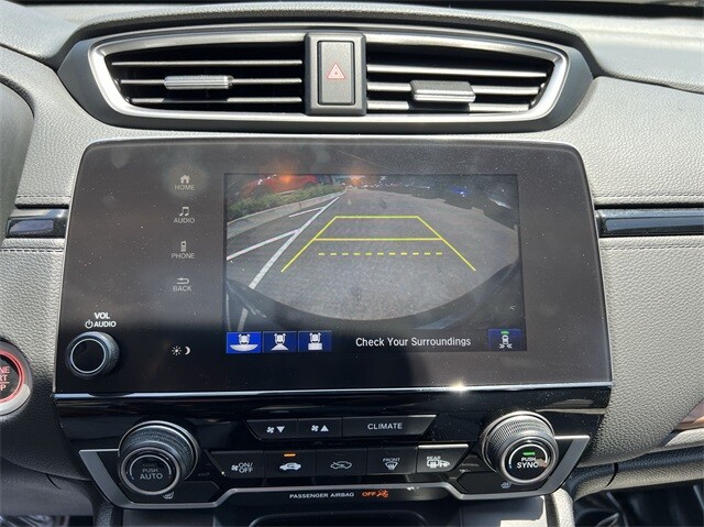 This CR-V EX is nicely equipped with AWD, Adaptive Cruise Control: Adaptive Cruise Control (ACC) with Low-Speed Follow, Apple CarPlay/Android Auto, Auto High-beam Headlights, Automatic temperature control, Blind Spot Information (BSI) System warning, Brake assist, Compass, Electronic Stability Control, Exterior Parking Camera Rear, Forward collision: Collision Mitigation Braking System (CMBS) + FCW mitigation, Four wheel independent suspension, Front dual zone A/C, Heated door mirrors, Heated Front Bucket Seats, Illuminated entry, Outside temperature display, Overhead console, Panic alarm, Power door mirrors, Power driver seat, Power moonroof, Power steering, Power windows, Radio data system, Radio: 180-Watt AM/FM/HD/SiriusXM Audio System, Rear window defroster, Rear window wiper, Remote keyless entry, Security system, Speed control, Speed-sensing steering, Steering wheel mounted audio controls, Traction control, Turn signal indicator mirrors, 18 Alloy Wheels, 4-Wheel Disc Brakes, 5.64 Axle Ratio, 6 Speakers, ABS brakes, Air Conditioning, Alloy wheels, AM/FM radio: SiriusXM, Bumpers: body-color, Cloth Seat Trim, Delay-off headlights, Driver door bin, Driver vanity mirror, Dual front impact airbags, Dual front side impact airbags, Front anti-roll bar, Front Bucket Seats, Front Center Armrest, Front fog lights, Front reading lights, Heated front seats, Low tire pressure warning, Occupant sensing airbag, Overhead airbag, Passenger door bin, Passenger vanity mirror, Rear anti-roll bar, Rear seat center armrest, Speed-Sensitive Wipers, Split folding rear seat, Spoiler, Tachometer, Telescoping steering wheel, Tilt steering wheel, Trip computer, and Variably intermittent wipers.