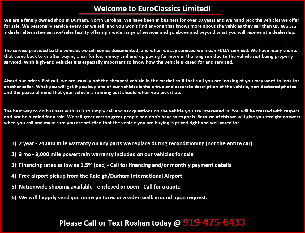 Notice to Bidders: All of the vehicles we list on eBay are for sale locally. We reserve the right to end an auction early. All cars are immediately ready for delivery upon sale.