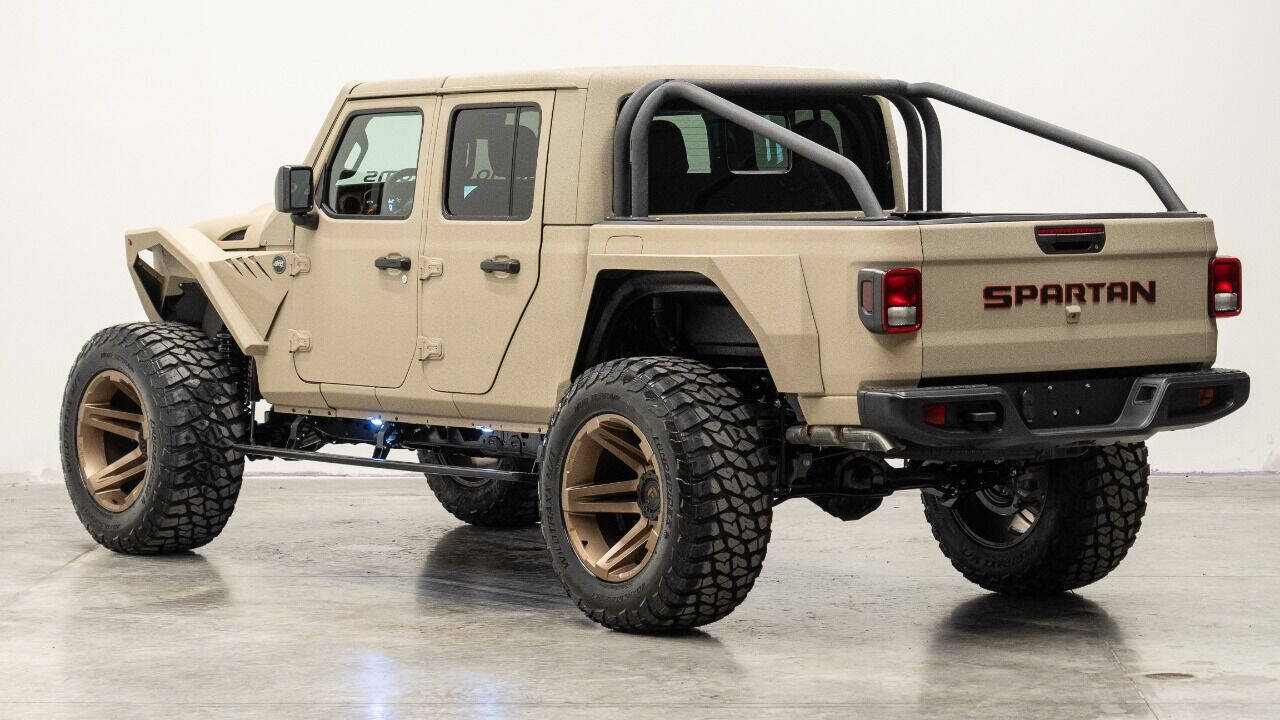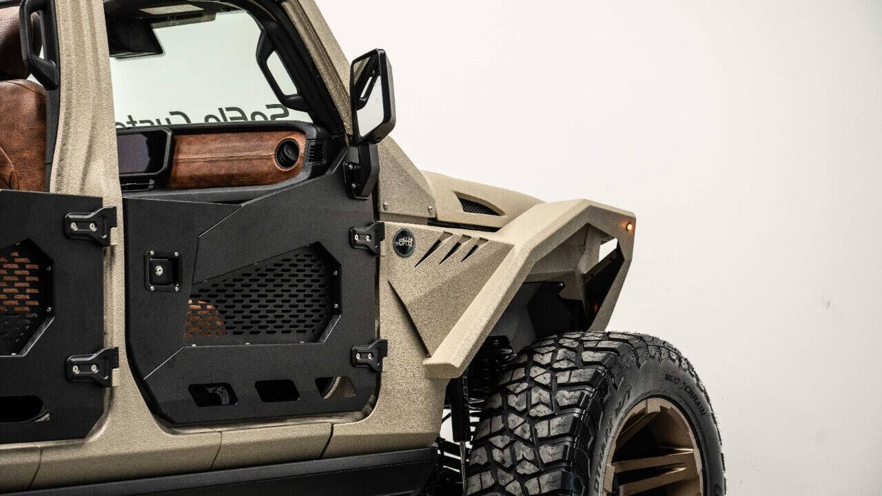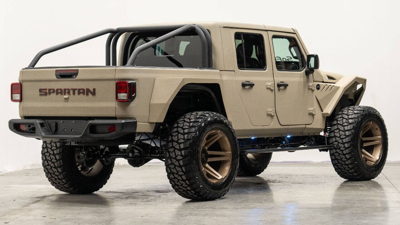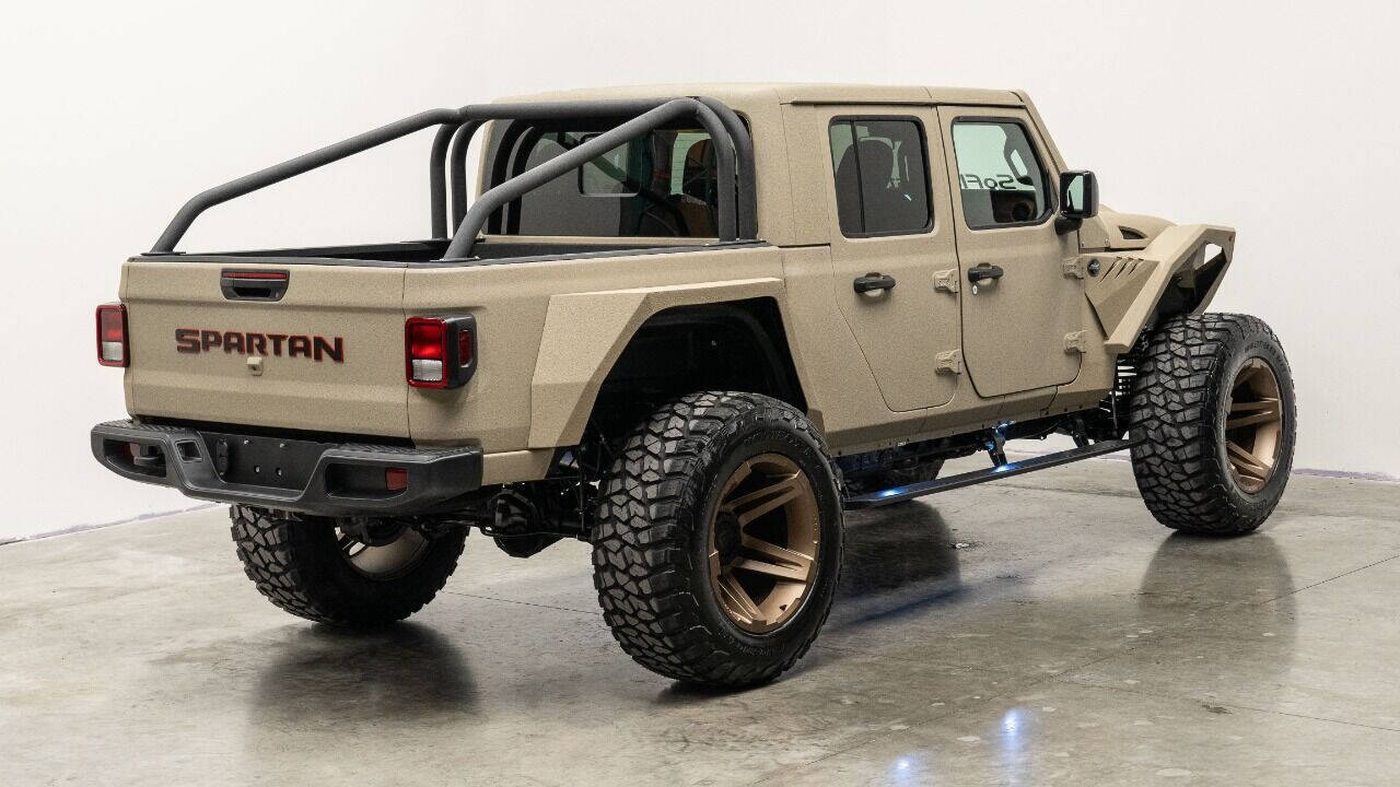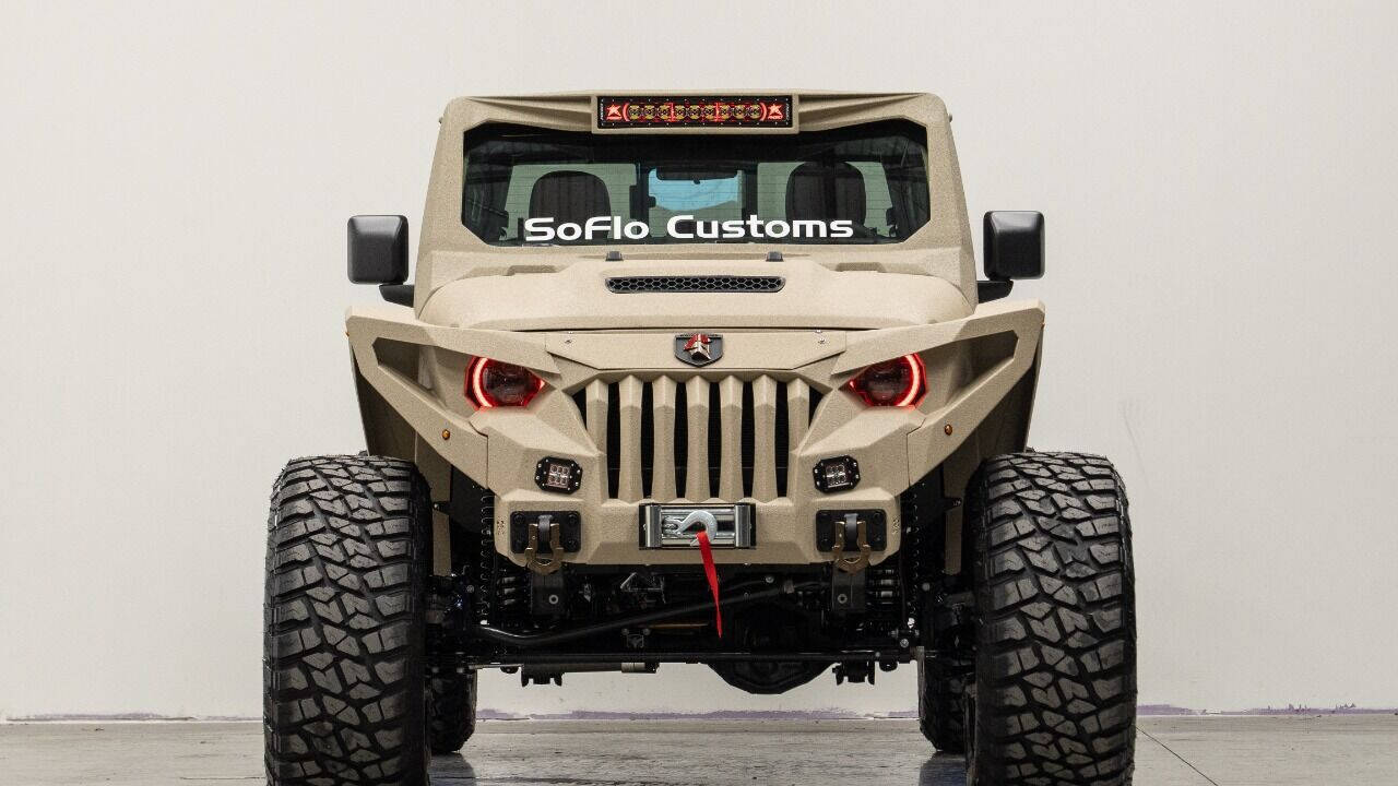 YEAR: 2023 COLOR: Sandstorm Tan Armor TRIM: SoFlo Spartan LIFT: 4” TIRES: 40 RIMS: 22 SFJ HOOD: Raider GRILL: 300 SoFlo Grumper with Winch SIDESTEPS: Powersteps HEADLIGHTS: 9” Halo SPECIAL FEATURES: Spartan Wrap-Around Fenders, Aluminum Fender Liners, Aluminum Rollcage Covered in Off Road Armor, Windshield Guardian WEATHERPROOF INTERIOR: Cowboy Saddle WHAT MAKES THIS TRUCK SPECIAL: The SoFlo Spartan is a unique beast that visually looks unlike anything else on the road today. Only 300 will ever be built. CALL US OR COME SEE THESE CUSTOM TRUCKS IN PERSON Location 1: 1430 W Broward, BLVD Fort Lauderdale, FL 33312 855-873-7632 Location 2: 2720 Okeechobee BLVD West Palm Beach, FL 33406 855-873-7632 NEW E-PURCHASE SYSTEM - Customers never have to leave the comfort of their home couch to purchase a SoFlo Jeeps or Apocalypse 6x6 truck. We offer online payment, financing and video walkarounds. We ship our trucks worldwide to any and every location. Have a trade-in? Not a problem at all, as WE ACCEPT TRADE-INS NATIONWIDE AND YOU NEVER PAY TO SHIP IT. We make buying and receiving your dream truck beyond simple. ****ALL PIPE DOORS ARE EXTRA AND NOT INCLUDED IN PRICE OF THE TRUCK****