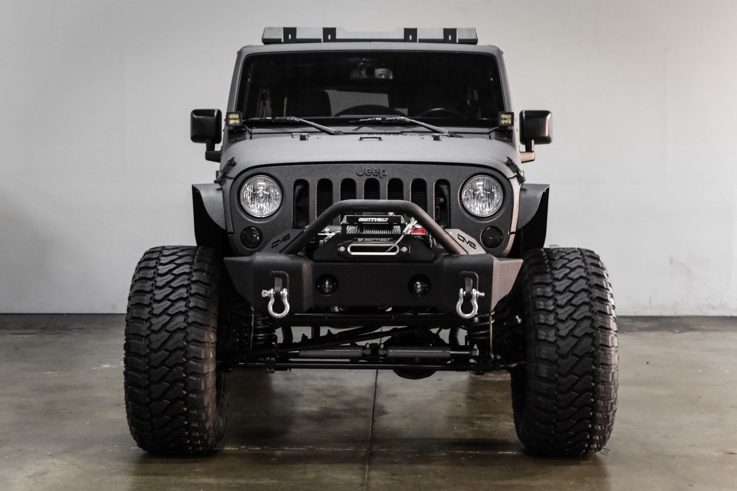 Introducing the 2018 Jeep Wrangler JK Unlimited Sport 4WD Kevlar XRC Fuel DV8 Nfab Fury, the ultimate off-road machine that's ready to take on any adventure you can throw at it. With its sleek gray exterior, this Jeep Wrangler is sure to turn heads wherever you go.