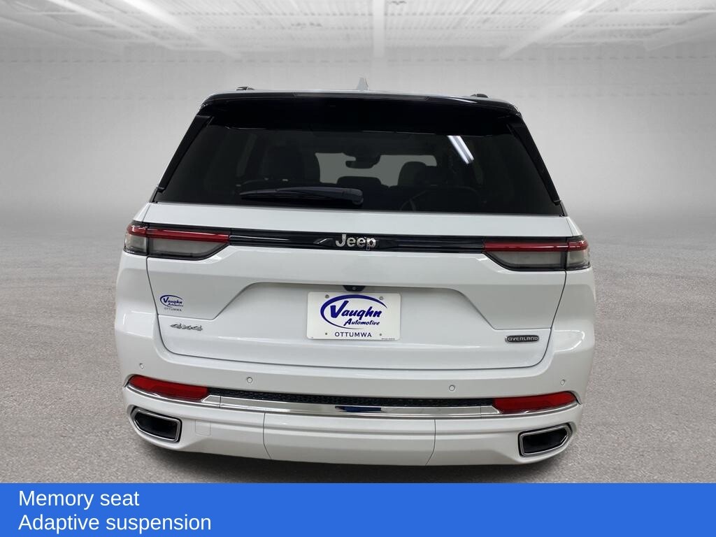 1-Owner, Balance of Factory Warranty, Dealer Inspection, Vehicle Detailed, Recent Oil Change, New Wiper Blades, Remote Start, 8-Speed Automatic, 4WD, Global Black w/Nappa Leather Seats or Palermo Leather Seats, 10 Speakers, 4G LTE Wi-Fi Hotspot, Active Noise Control System, Adaptive suspension, AM/FM radio: SiriusXM with 360L, Apple CarPlay, Auto High-beam Headlights, Auto-leveling suspension, Connected Travel & Traffic Services, Electronic Stability Control, Emergency communication system, Front dual zone A/C, Front fog lights, Fully automatic headlights, Garage door transmitter, Google Android Auto, HD Radio, Heated Front Seats, Heated rear seats, Heated steering wheel, Memory seat, Navigation System, Power Liftgate, Power moonroof, Radio: Uconnect 5 Nav w/8.4 Display, Rain sensing wipers, Security system, Speed-Sensitive Wipers, Steering wheel memory, Steering wheel mounted audio controls, Traction control, Ventilated front seats. 3.6L V6 24V VVT Bright White Clearcoat 2022 Jeep Grand Cherokee Overland Odometer is 2744 miles below market average! 19/26 City/Highway MPG