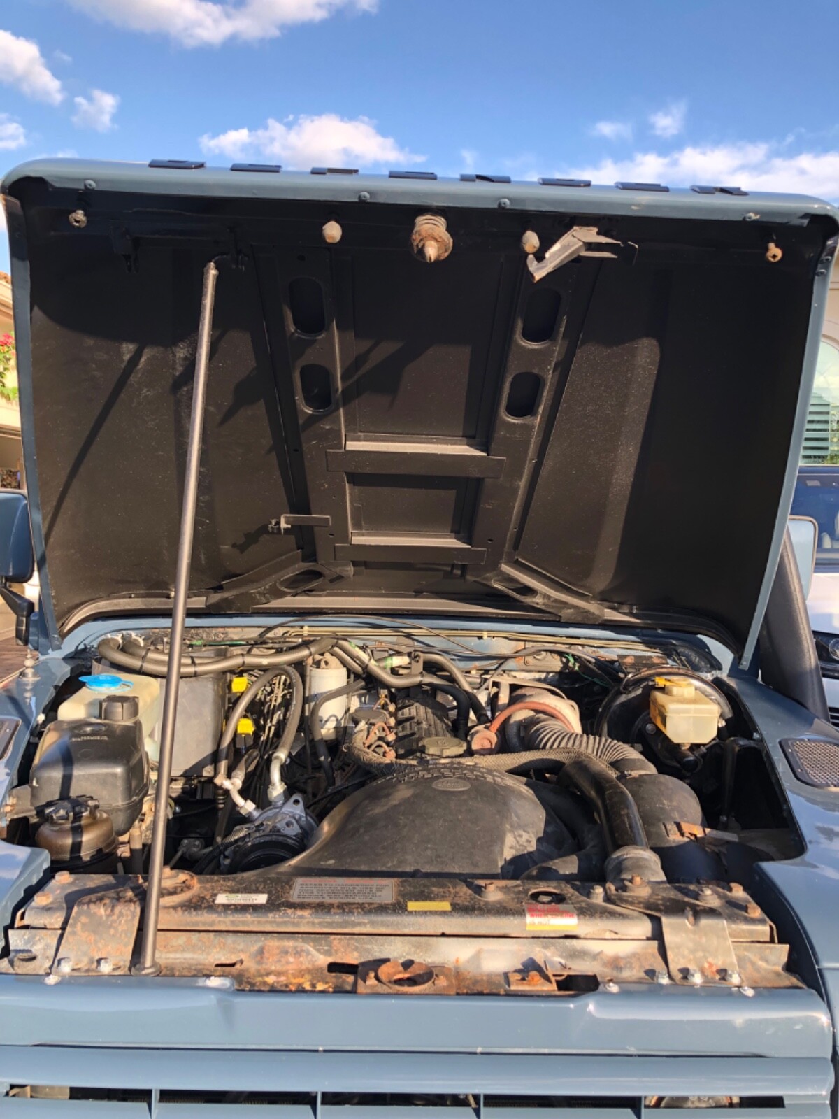 Original equipped with snorkel, alloy wheels, air conditioning, LH steering wheel, new tires BF Goodrich 285/75 R16, 193,000 original miles. Of course it leaks some oil… otherwise it is not an original defender.