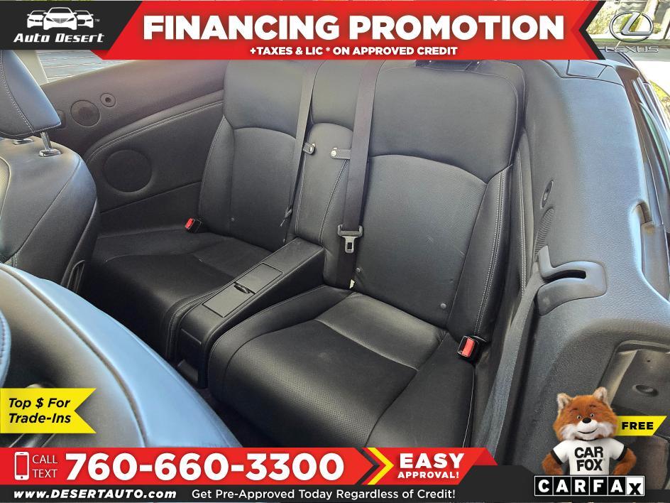This is a CLEAN TITLE Convertible and an optional extended warranty is available.The Original Owner has cared for this Lexus since it was new| on top of that it's a rare find with only 55|385 miles - barely driven 3|956 miles/year.The automatic transmission makes driving easier in stop-and-go traffic and on hilly roads| on top of that this smooth 6 Cylinder engine is ideal for performance and fuel economy.Enjoy better handling and stopping with the rear wheel drive plus unheard of fuel mileage at 21 MPG in town and whopping 29 miles on the highway.The telematics navigation system provides additional safety and security| hands-free communications and wireless access to a wide range of information and entertainment| furthermore the Lexus back-up camera provides you with both added convenience and improved safety. The parking sensors detect nearby children| mailboxes or other obstacles in order to prevent accidents| additionally push-button keyless start couldn't be simpler| just slide behind the wheel| with the key fob in your pocket| briefcase or purse. Thanks to the hardtop convertible| you can enjoy reduced road noise| whats more is the CD-Changer provides for hours of your favorite music.Listening to dozens of genres of static-free music with the built-in Satellite Radio makes any trip more comfortable| in addition to the Bluetooth connection is the ultimate option for hands-free calling while driving. You can play hundreds of your favorite songs with the MP3 player| meanwhile the premium sound system delivers amazing sound of your favorite tracks. The AUX input is a must have in this world of smartphones| furthermore the keyless entry is an added convenience option.The installed stability control stabilizes the vehicle during sudden evasive maneuvers whereas the cruise control gives you better control over your speed. The woodgrain trim adds to the luxury of the in... Read the full description on our Website at: