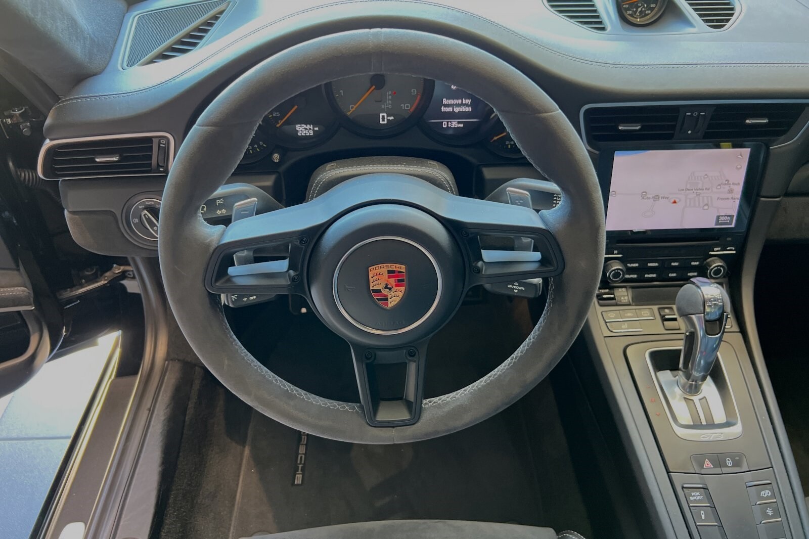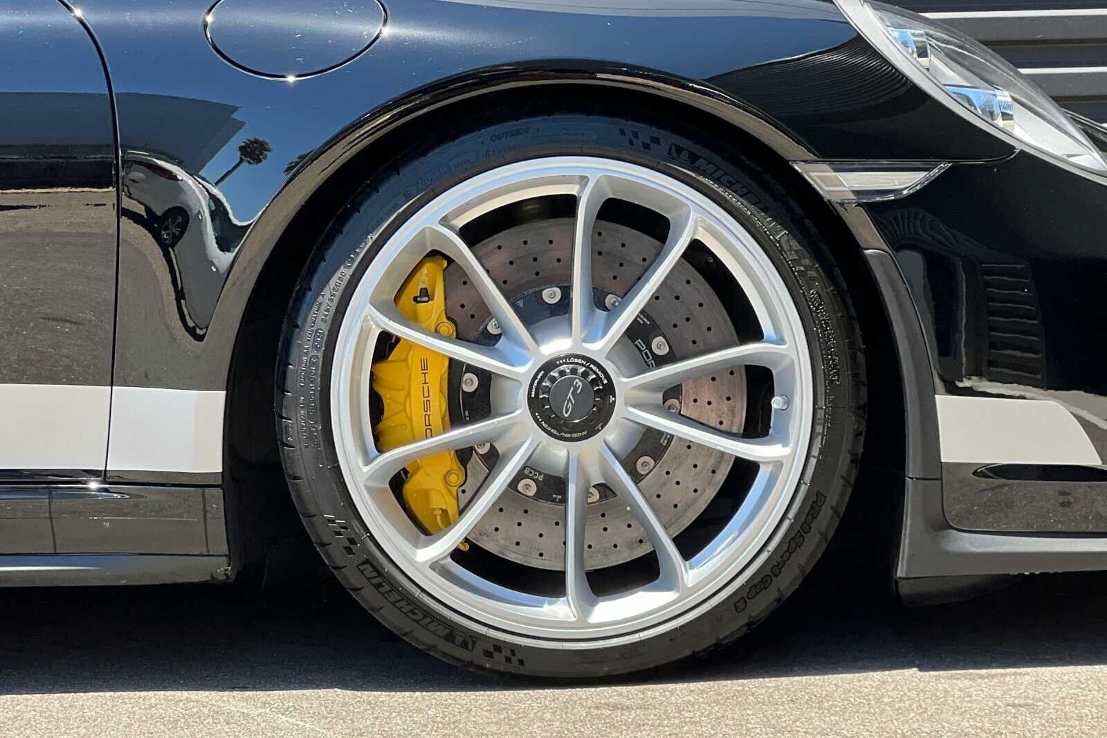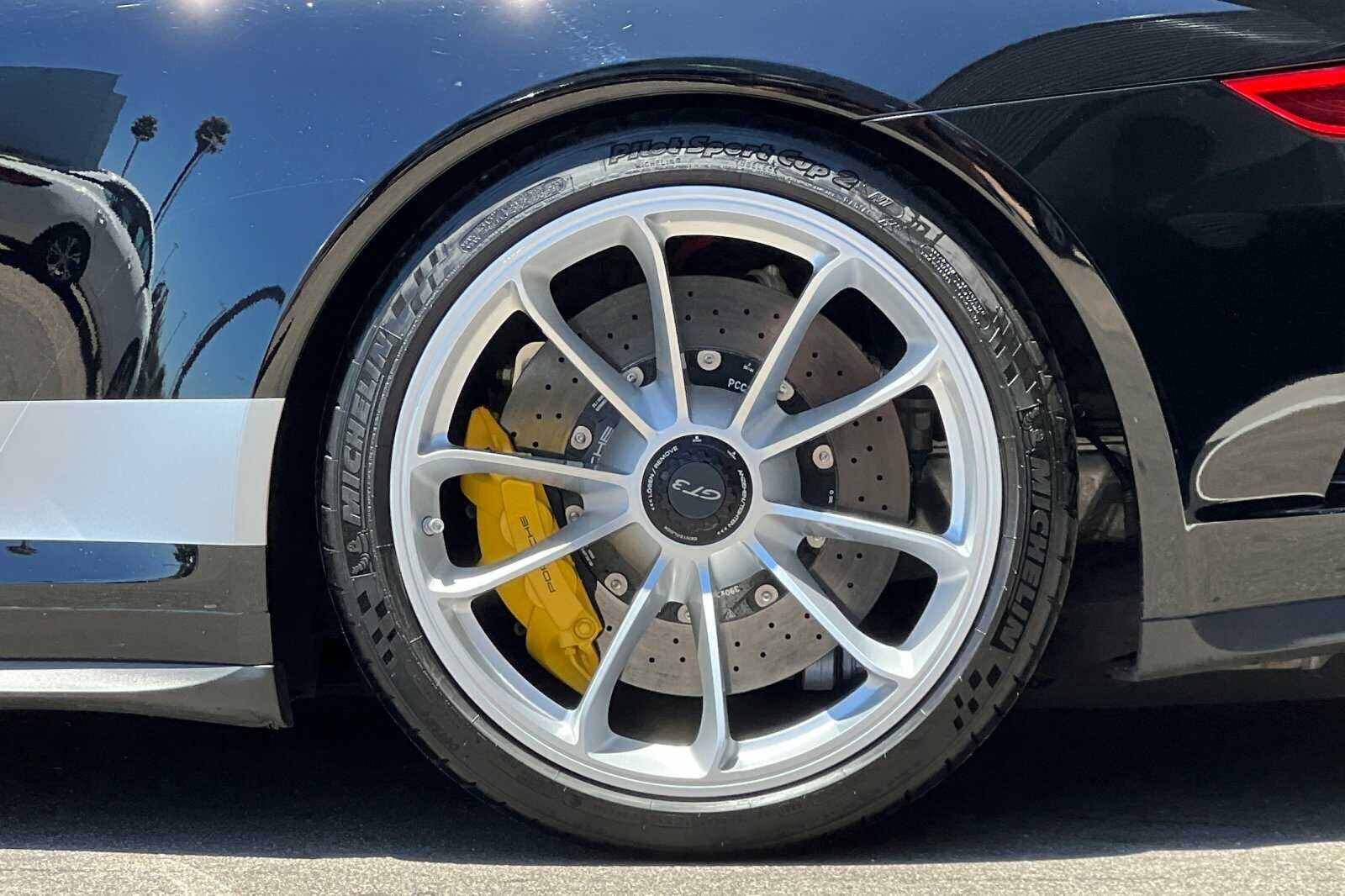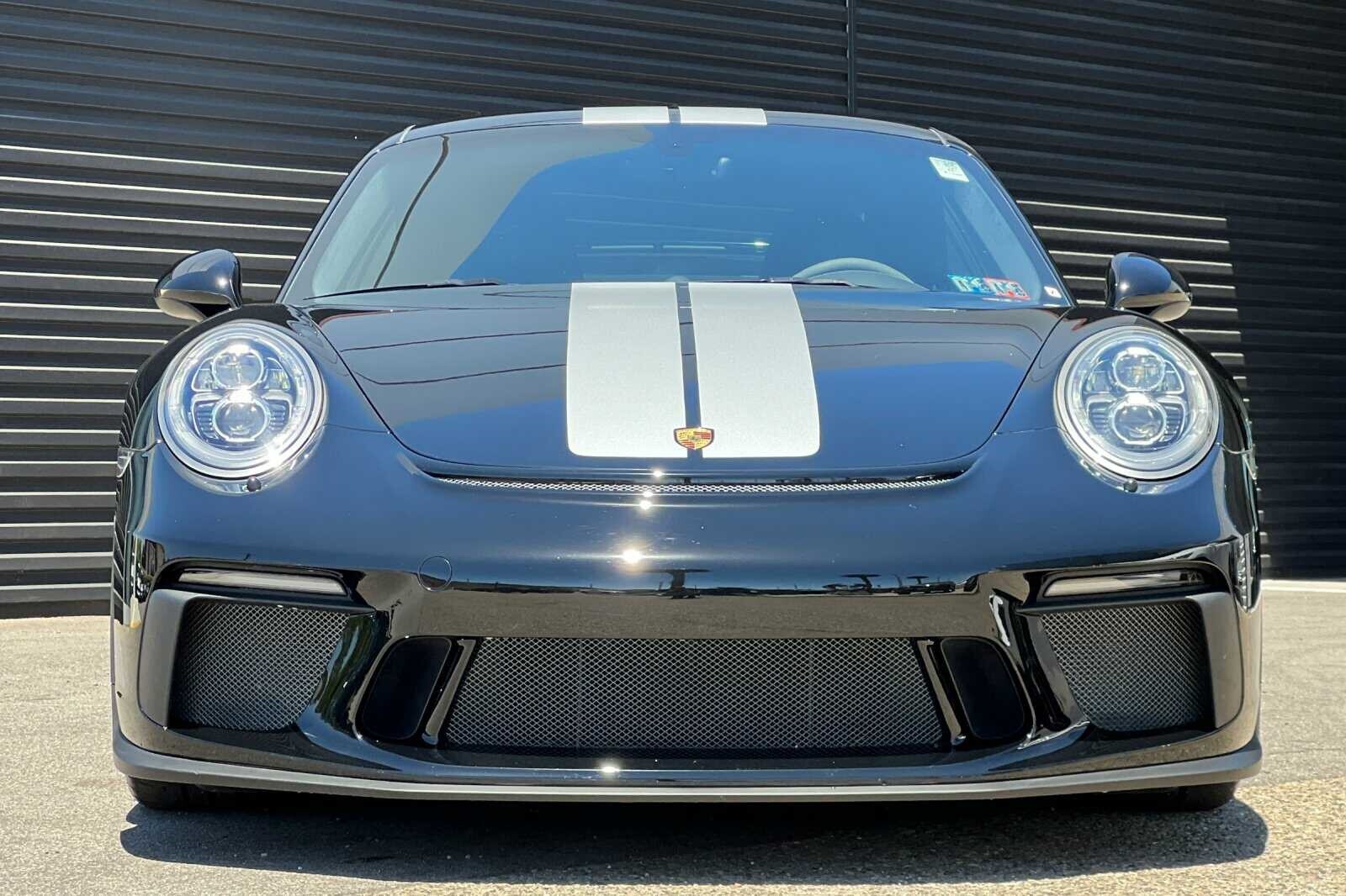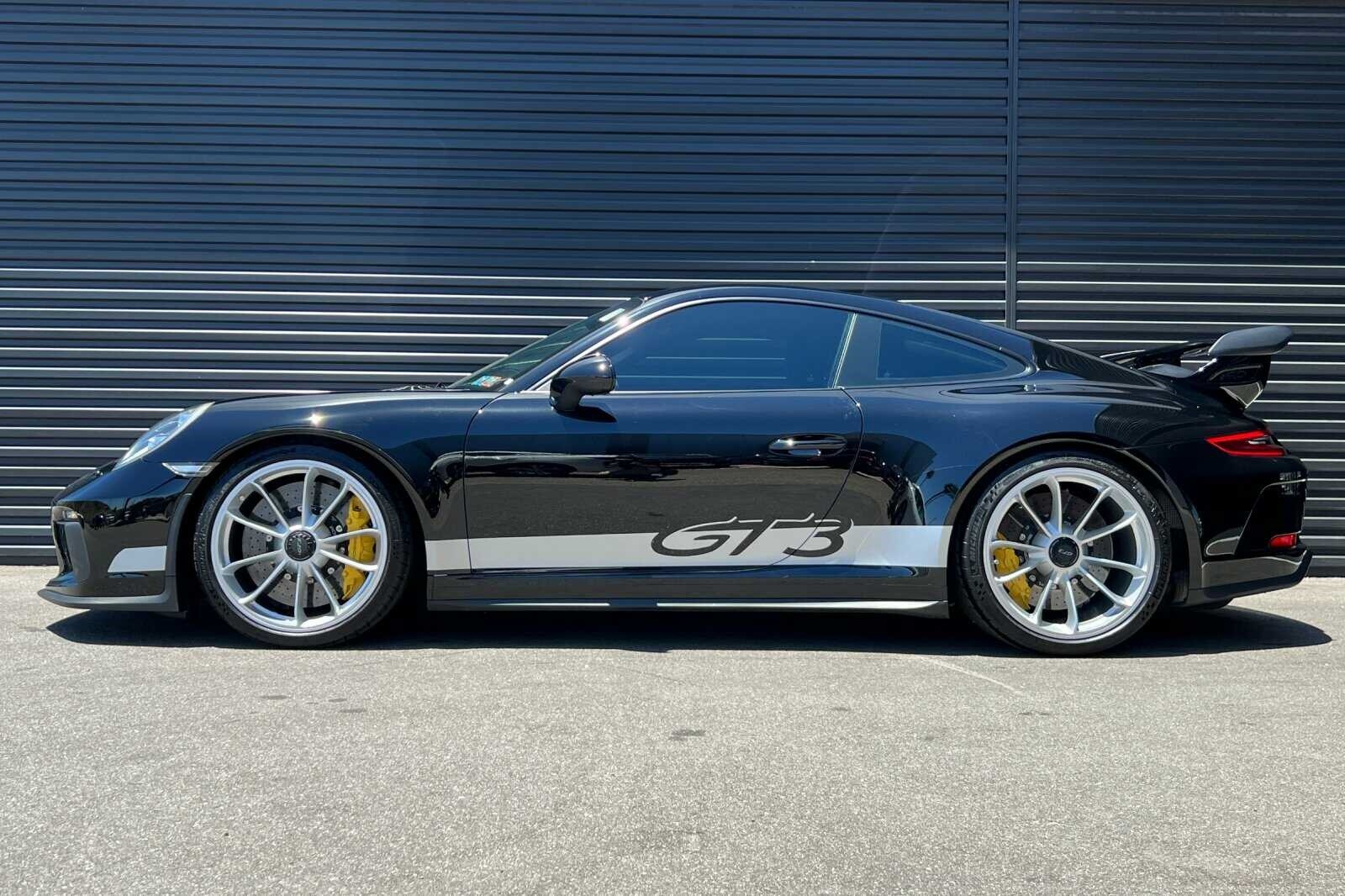 This Porsche San Luis Obispo 2018 Black Porsche 911 GT3 RWD is well equipped and includes these features and benefits: 4-Way Sport Seats Plus, 4-Wheel Disc Brakes, 8 Speakers, ABS brakes, Adaptive suspension, Air Conditioning, Alloy wheels, AM/FM radio: SiriusXM, Apple CarPlay, Automatic temperature control, Brake assist, Bumpers: body-color, CD player, Delay-off headlights, Driver door bin, Driver vanity mirror, Dual front impact airbags, Dual front side impact airbags, DVD-Audio, Electronic Stability Control, Exterior Parking Camera Rear, Four wheel independent suspension, Front anti-roll bar, Front Bucket Seats, Front Center Armrest, Front dual zone A/C, Front reading lights, Fully automatic headlights, Headlight cleaning, Heated door mirrors, High intensity discharge headlights: Bi-Xenon, Illuminated entry, Knee airbag, Leather/Alcantara Seat Trim, Low tire pressure warning, Navigation System, Occupant sensing airbag, Outside temperature display, Overhead airbag, Overhead console, Passenger cancellable airbag, Passenger door bin, Passenger vanity mirror, Porsche Communication Management, Power door mirrors, Power driver seat, Power passenger seat, Power steering, Power windows, Radio data system, Rear anti-roll bar, Rear fog lights, Rear window defroster, Remote keyless entry, Security system, Speed control, Speed-sensing steering, Spoiler, Sport steering wheel, Tachometer, Telescoping steering wheel, Tilt steering wheel, Traction control, Trip computer, Variably intermittent wipers, and Wheels: 9J x 20 Fr/12J x 20 Rr GT3.