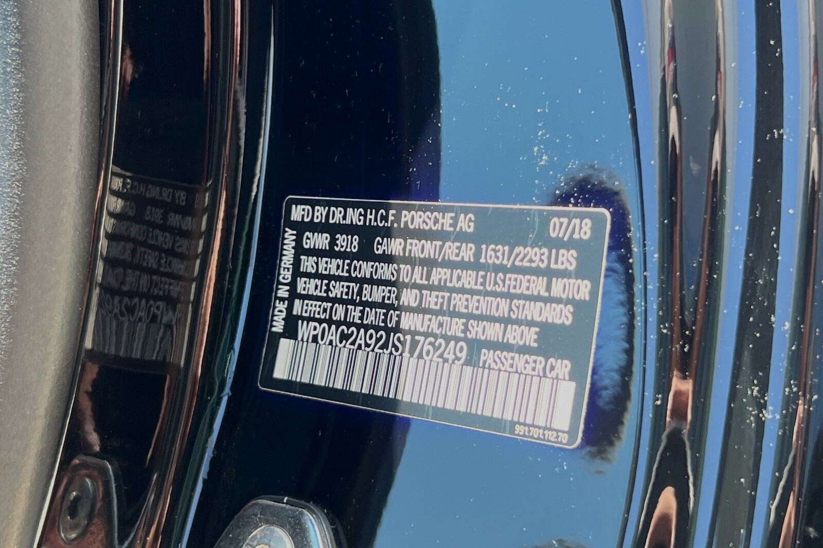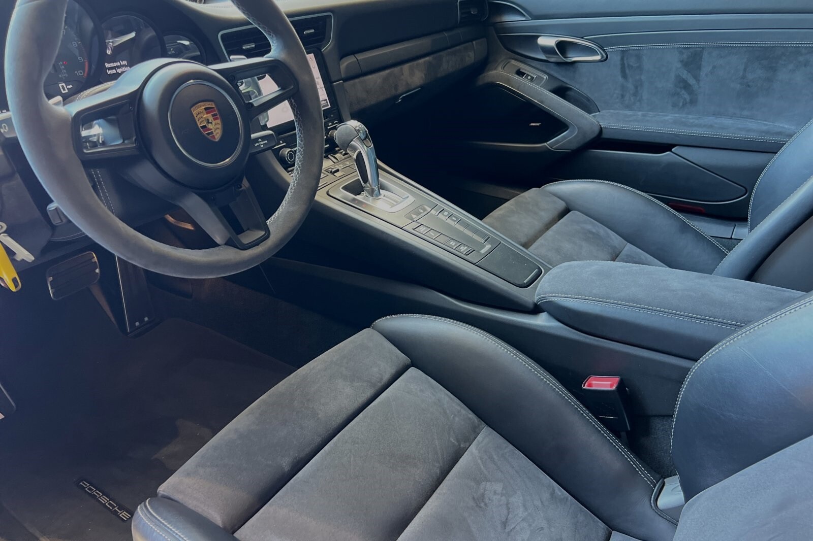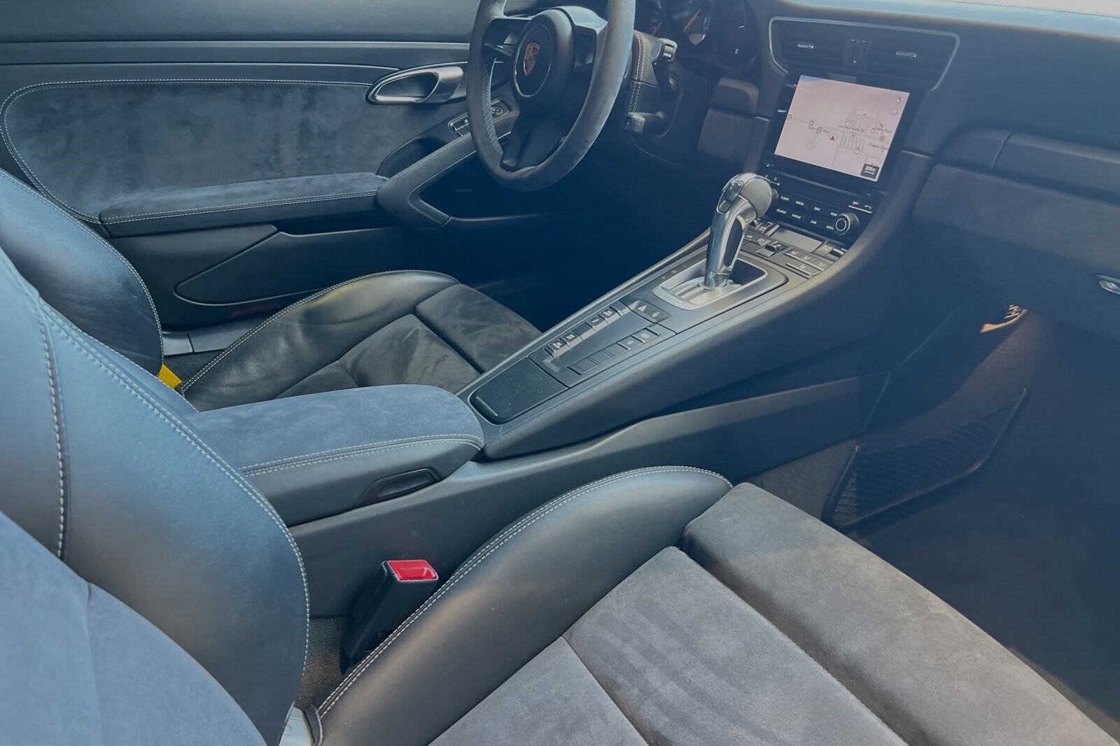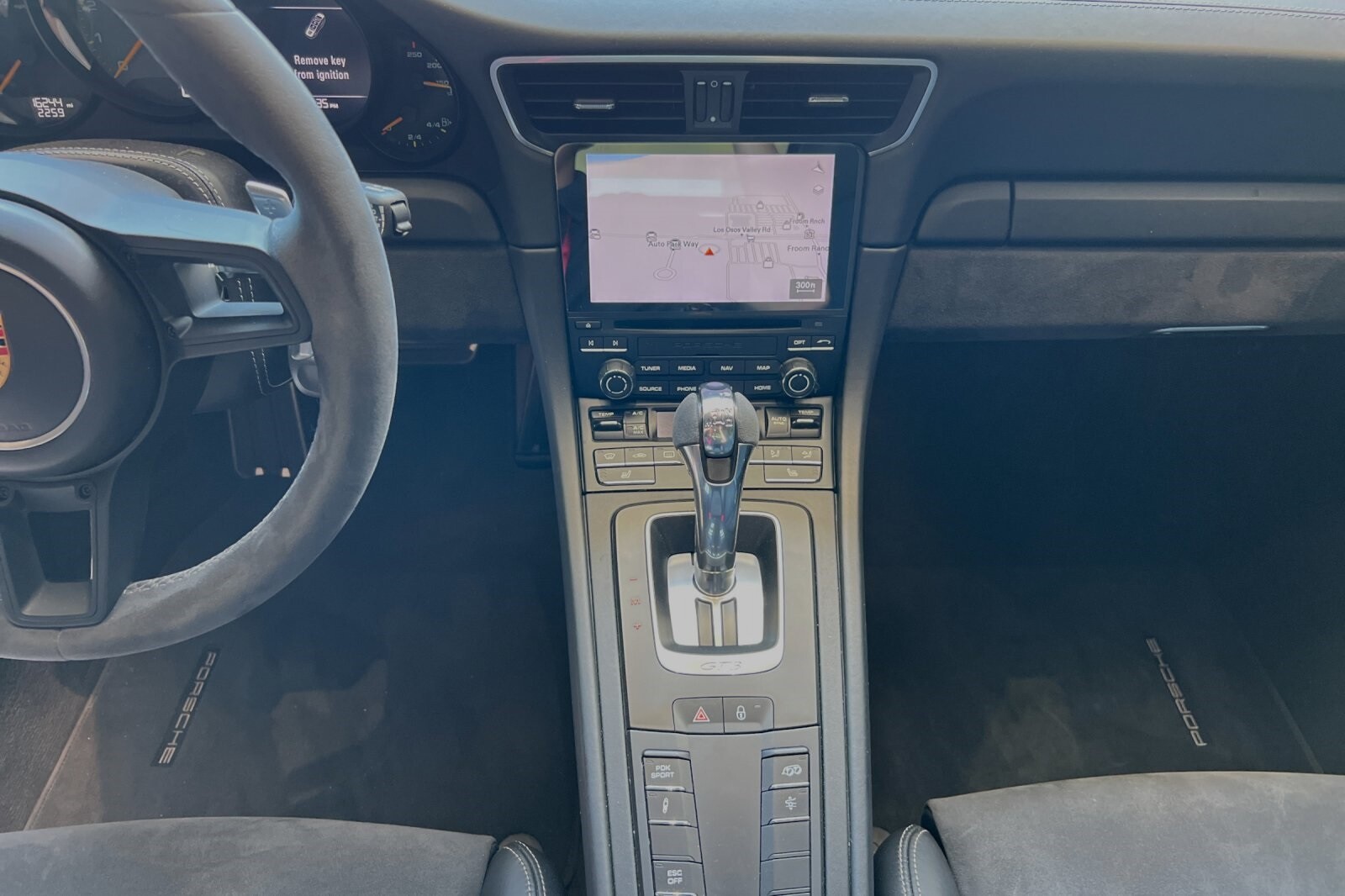This Porsche San Luis Obispo 2018 Black Porsche 911 GT3 RWD is well equipped and includes these features and benefits: 4-Way Sport Seats Plus, 4-Wheel Disc Brakes, 8 Speakers, ABS brakes, Adaptive suspension, Air Conditioning, Alloy wheels, AM/FM radio: SiriusXM, Apple CarPlay, Automatic temperature control, Brake assist, Bumpers: body-color, CD player, Delay-off headlights, Driver door bin, Driver vanity mirror, Dual front impact airbags, Dual front side impact airbags, DVD-Audio, Electronic Stability Control, Exterior Parking Camera Rear, Four wheel independent suspension, Front anti-roll bar, Front Bucket Seats, Front Center Armrest, Front dual zone A/C, Front reading lights, Fully automatic headlights, Headlight cleaning, Heated door mirrors, High intensity discharge headlights: Bi-Xenon, Illuminated entry, Knee airbag, Leather/Alcantara Seat Trim, Low tire pressure warning, Navigation System, Occupant sensing airbag, Outside temperature display, Overhead airbag, Overhead console, Passenger cancellable airbag, Passenger door bin, Passenger vanity mirror, Porsche Communication Management, Power door mirrors, Power driver seat, Power passenger seat, Power steering, Power windows, Radio data system, Rear anti-roll bar, Rear fog lights, Rear window defroster, Remote keyless entry, Security system, Speed control, Speed-sensing steering, Spoiler, Sport steering wheel, Tachometer, Telescoping steering wheel, Tilt steering wheel, Traction control, Trip computer, Variably intermittent wipers, and Wheels: 9J x 20 Fr/12J x 20 Rr GT3.