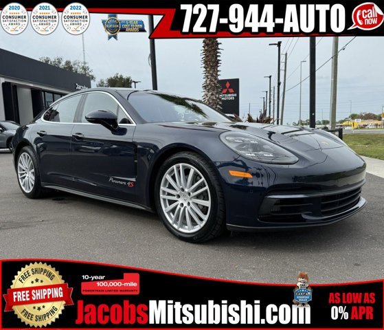 Panamera 4S, 4D Hatchback, V6, 8-Speed Porsche Doppelkupplung (PDK), AWD, Night Blue Metallic, Black w/Leather Seat Trim, 10 Speakers, 14-Way Power Seats, 4-Wheel Disc Brakes, 4-Zone Climate Control, 8-Way Power Rear Seats w/Adaptive Sport Seats, 8-Way Power Seats, ABS brakes, Adaptive suspension, Air Conditioning, Alloy wheels, AM/FM radio: SiriusXM, Apple CarPlay, Auto-dimming door mirrors, Auto-dimming Rear-View mirror, Automatic temperature control, BOSE Surround Sound-System, Brake assist, Bumpers: body-color, CD player, Comfort Access, Compass, Delay-off headlights, Driver door bin, Driver vanity mirror, Dual front impact airbags, Dual front side impact airbags, DVD-Audio, Electronic Stability Control, Exterior Parking Camera Rear, Four wheel independent suspension, Front & Rear Seat Heating, Front anti-roll bar, Front Bucket Seats, Front Center Armrest, Front dual zone A/C, Front reading lights, Front Seat Ventilation, Fully automatic headlights, Garage door transmitter: HomeLink, Heated door mirrors, Heated front seats, Illuminated entry, Knee airbag, Lane Change Assist (LCA), Leather Shift Knob, Leather steering wheel, LED Headlights w/Porsche Dynamic Light System, Low tire pressure warning, Memory Package, Memory seat, Navigation System, Occupant sensing airbag, Outside temperature display, Overhead airbag, Overhead console, Panic alarm, Partial Leather Seat Trim, Passenger door bin, Passenger vanity mirror, Porsche Communication Management, Power door mirrors, Power driver seat, Power Liftgate, Power moonroof, Power passenger seat, Power steering, Power windows, Premium Package Plus, Pwr Sunblind for Rr Compartment & Rr Side Windows, Radio data system, Rain sensing wipers, Rear anti-roll bar, Rear fog lights, Rear Memory Package, Rear reading lights, Rear seat center armrest, Rear side impact airbag, Rear window defroster, Remote keyless entry, Seat Belts in Chalk, Security system, Soft Close Doors, Speed control, Split folding rear seat, Spoiler, Steering wheel mounted audio controls, Tachometer, Telescoping steering wheel, Tilt steering wheel, Traction control, Trip computer, Variably intermittent wipers, Wheels: 20 Panamera Design. CARFAX One-Owner. Priced below KBB Fair Purchase Price!21/28 City/Highway MPG Night Blue Metallic 2018 Porsche Panamera 4S AWD V6Odometer is 6719 miles below market average!Awards:* 2018 5-Year Cost to Own Awards * 2018 Best Resale Value Awards * 2018 Brand Image Awards * 2018 10 Most Awarded BrandsHere at Jacobs Mitsubishi our goal is to make you a customer for life. We want you to have the most enjoyable car buying experience possible . All prices displayed do not include additional accessories or fees and costs of closing including any government, additional packages applied to vehicle, including but not limited to Jacobs Care, Reconditioning fees,federal, dealer fees, taxes, registration, dealer document, cost of accessories, emissions testing, or any other fees. All prices, specifications and availability are subject to change at any time, without notice. Not all applicants will be approved, offers may change at any time and may not reflect accuracy online, see dealer for most updated offers. Not all offers can be combined. Applicant may qualify for partial discount displayed by financing with another approved lender through and provided by Jacobs Mitsubishi. Contact dealer for most current information, availability, or details.