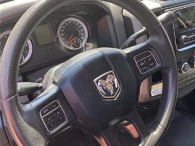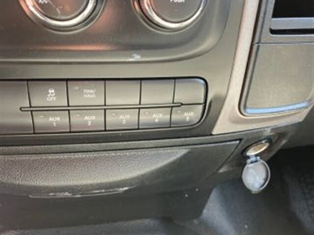 INSTALLED FEATURES: Front air conditioning, Front air conditioning zones: single, Airbag deactivation: occupant sensing passenger, Front airbags: dual, Side airbags: front, Side curtain airbags: front / rear, Side-curtain airbag rollover sensor, Antenna type: mast, Auxiliary audio input: USB / jack, Radio: AM/FM, Speed sensitive volume control, Total speakers: 6, ABS: 4-wheel, Brake drying, Braking assist, Electronic brakeforce distribution, Front brake diameter: 14.2, Front brake type: ventilated disc, Front brake width: 1.54, Power brakes, Rear brake diameter: 14.1, Rear brake type: ventilated disc, Rear brake width: 1.34, Armrests: front center, Dash trim: simulated alloy, Floor material: rubber/vinyl, Shift knob trim: urethane, Steering wheel trim: urethane, Assist handle: front / rear, Cruise control, Cupholders: front / rear, One-touch windows: 2, Power outlet(s): 12V front, Power steering, Power windows: lockout button, Rearview mirror: manual day/night, Retained accessory power, Steering wheel: tilt, Steering wheel mounted controls: cruise control / multi-function, Storage: door pockets / in floor / organizer / under rear seats, Sun visors, Axle ratio: 3.73, Alternator: 160 amps, Battery: maintenance-free, Battery rating: 730 CCA, Battery saver, Emissions: 50 state, Door handle color: black, Front bumper color: black, Grille color: black / black surround, License plate bracket: front, Mirror color: black, Pickup bed light, Rear bumper color: black, Tailgate: removable, Window trim: black, Infotainment screen size: 3 in., Clock, Digital odometer, Engine hour meter, External temperature display, Fuel economy display: MPG / range, Gauge: tachometer, Instrument cluster screen size: 3.5 in., Multi-function display, Warnings and reminders: low fuel level / low oil level / maintenance due / tire fill alert, Headlights: auto delay off / auto on/off / halogen / quad headlights, Side mirror adjustments: manual folding / power, Side mirrors: heated, Body side reinforcements: side impact door beams, Child safety door locks, Child seat anchors: LATCH system, Crumple zones: front, Energy absorbing steering column, Emergency locking retractors: front / rear, Front seatbelts: 3-point, Rear seatbelts: 3-point, Seatbelt force limiters: front, Seatbelt pretensioners: front, Seatbelt warning sensor: front, Driver seat manual adjustments: reclining / 4, Front headrests: adjustable / 2, Front seat type: 40-20-40 split bench, Passenger seat manual adjustments: reclining / 4, Rear headrests: adjustable / 3, Rear seat folding: folds up, Rear seat type: bench, Upholstery: vinyl, 2-stage unlocking doors, Anti-theft system: engine immobilizer, Power door locks: auto-locking, Rolling code security: key, Hill holder control, Roll stability control, Stability control, Traction control, Trailer stability control, Front shock type: gas, Front spring type: coil, Front stabilizer bar, Front suspension classification: solid axle, Front suspension type: multi-link, Rear shock type: gas, Rear spring type: coil, Rear suspension classification: solid live axle, Rear suspension type: multi-link, Spare tire mount location: underbody, Spare tire size: full-size, Spare wheel type: steel, Tire Pressure Monitoring System, Tire type: all season, Wheels: steel, Auxiliary transmission fluid cooler, Trailer hitch: Class V, Trailer wiring: 4-pin / 7-pin, Front wipers: variable intermittent, Power windows: safety reverse, Rear privacy glass, Solar-tinted glass