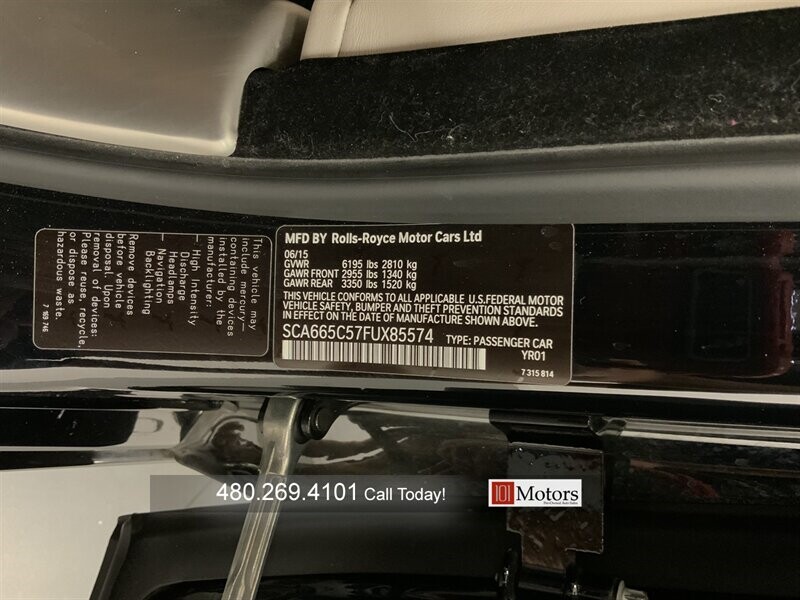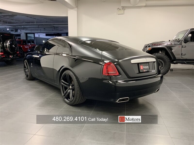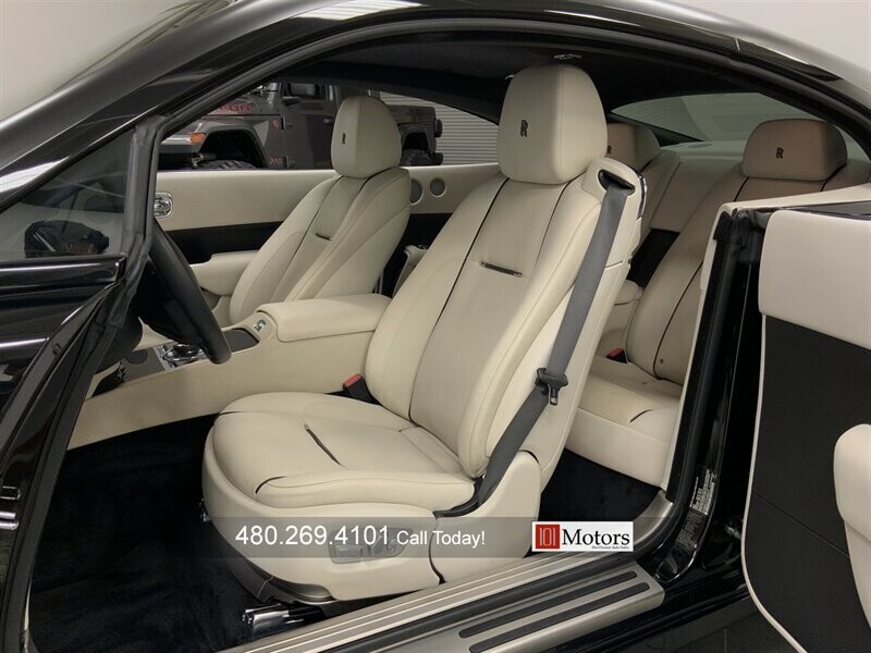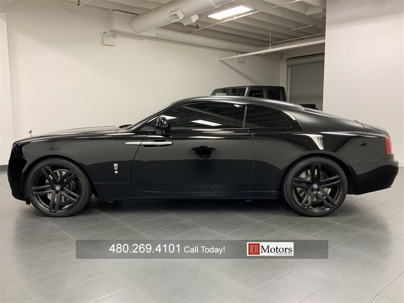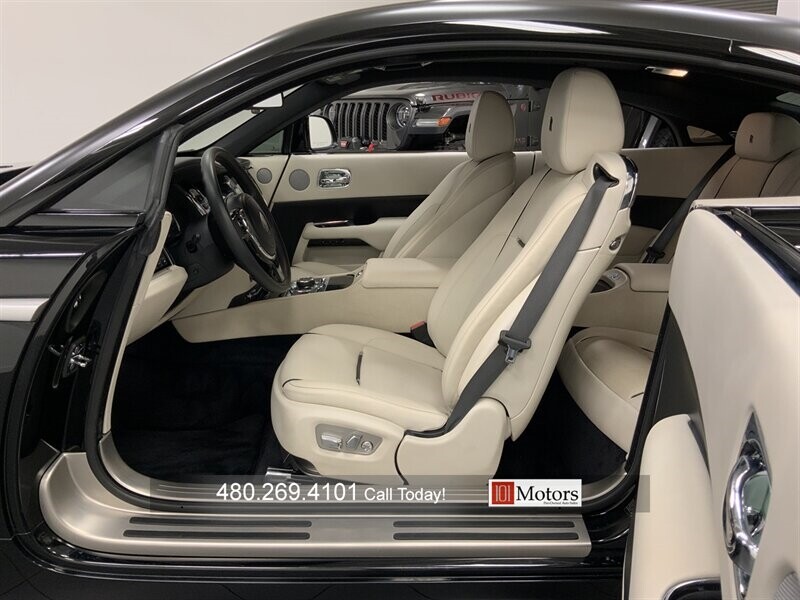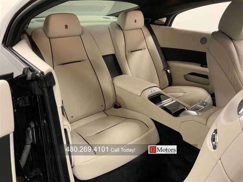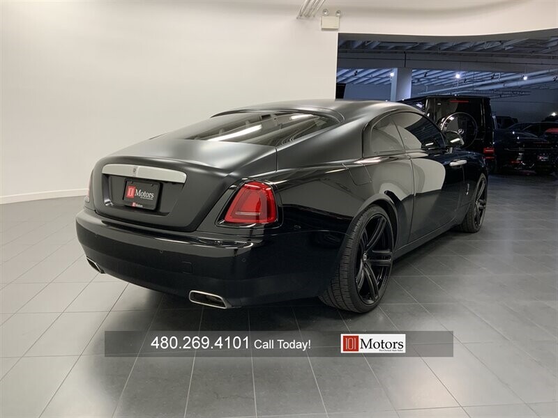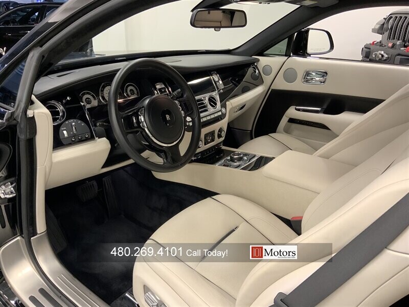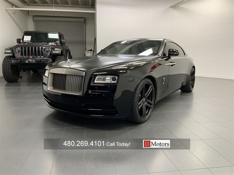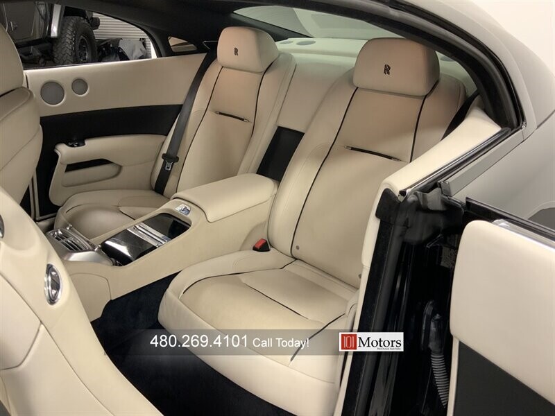 101 Motors is proud to present this absolutely stunning 2015 Rolls-Royce Wraith. This RWD ultra-luxury coupe is equipped with a 624 horsepower 6.6L twin turbo V12 mated to an 8-speed automatic transmission. This Wraith features heated and ventilated front seats, starlight headliner, head-up display, 22 inch Klassen wheels and more. The hood, roof and trunk are wrapped in matte black vinyl giving this Rolls-Royce a gorgeous two-tone finish. You don’t want to miss this incredible opportunity, call today!!