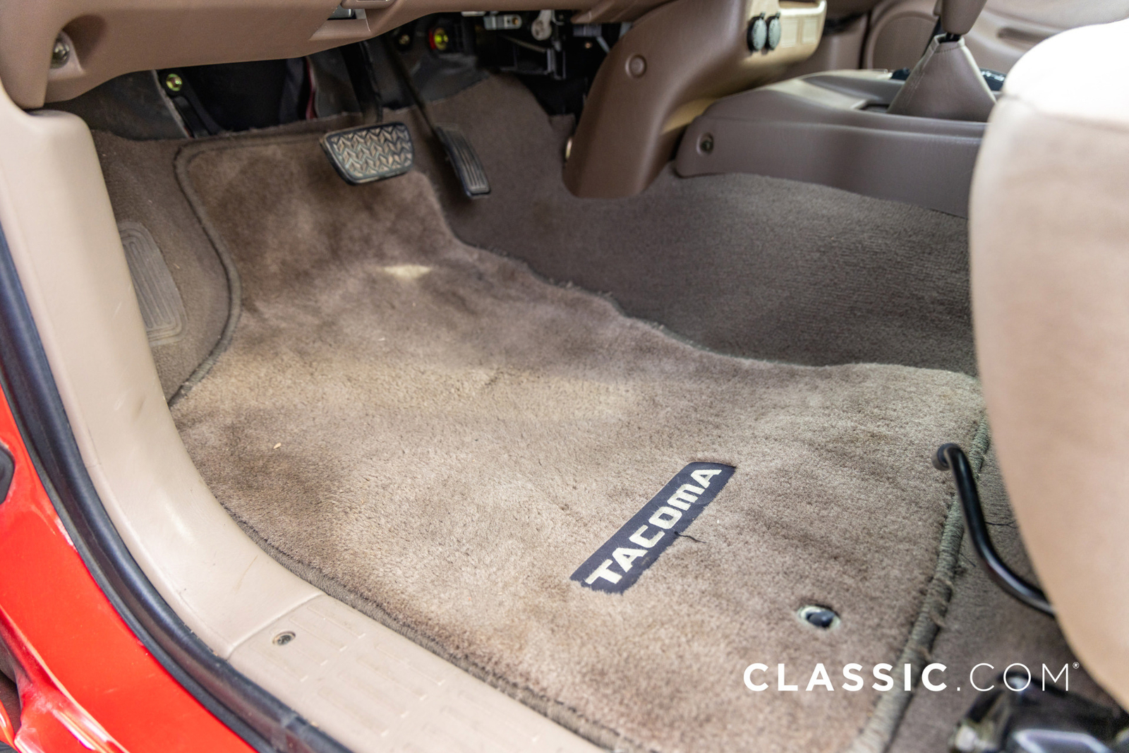 This Tacoma has been inspected and photographed by a third party to document the current condition of the vehicle. Overall, the truck presents well. The red paint has retained its rich color and shows minimal signs of wear that are consistent with the age and mileage of the vehicle. Similarly, the interior shows minimal wear and tear and the only issue is a non-functional display on the original stereo. The engine compartment also appears clean, which is an indication of regular maintenance. A road test confirmed that all features operate as they were designed. Photographs show some grease on the front and rear driveshafts and surface rust on the exhaust system, neither of which interfere with the trucks performance. An engine scan tool identified a heater circuit bank sensor code that should be investigated and no further information is available. The sale includes two sets of keys, the original owners manual and window sticker, and the bed liner mat.