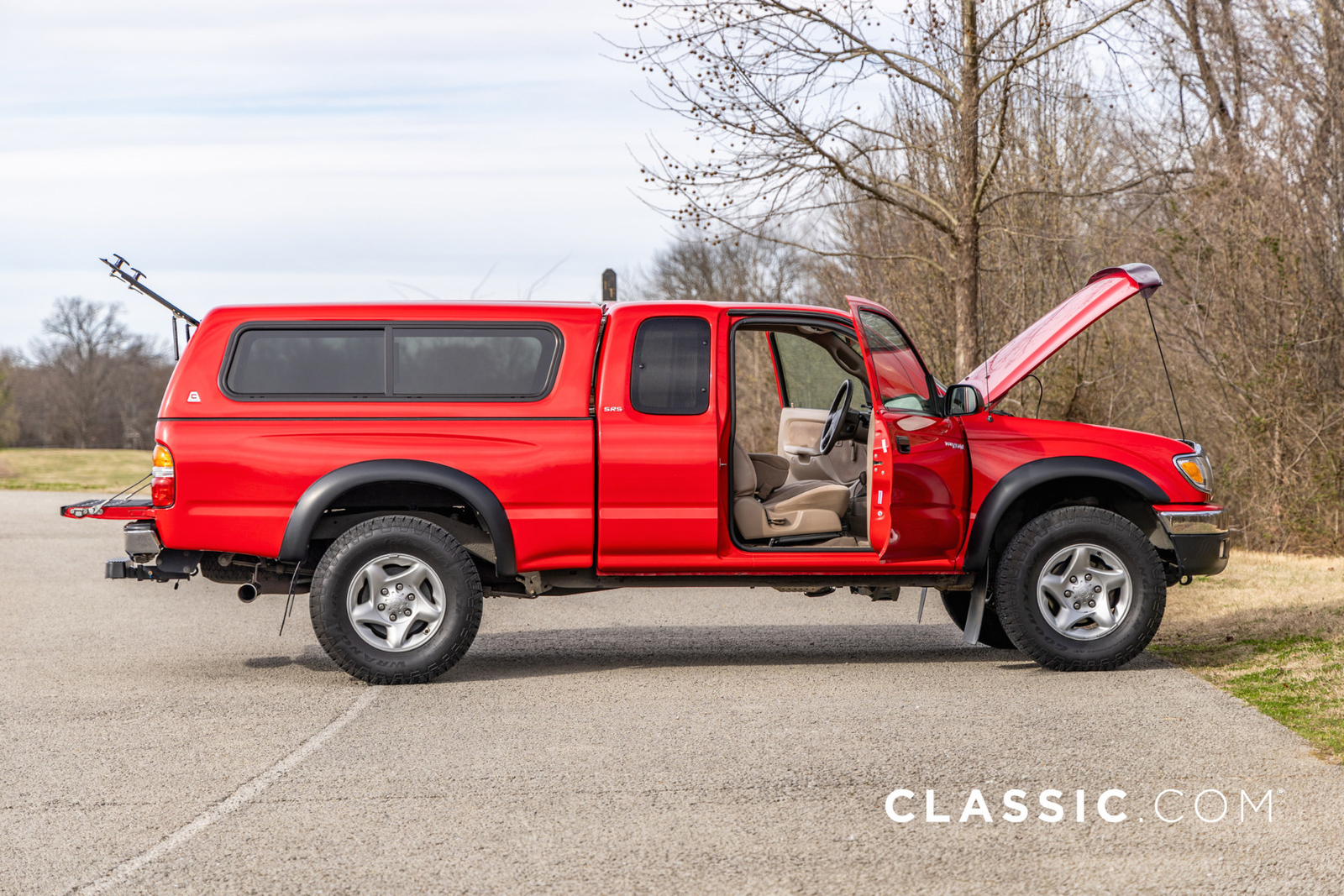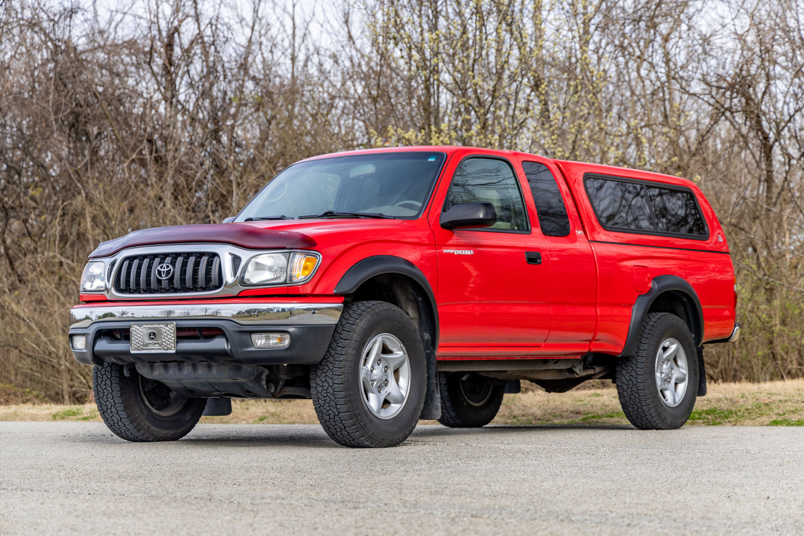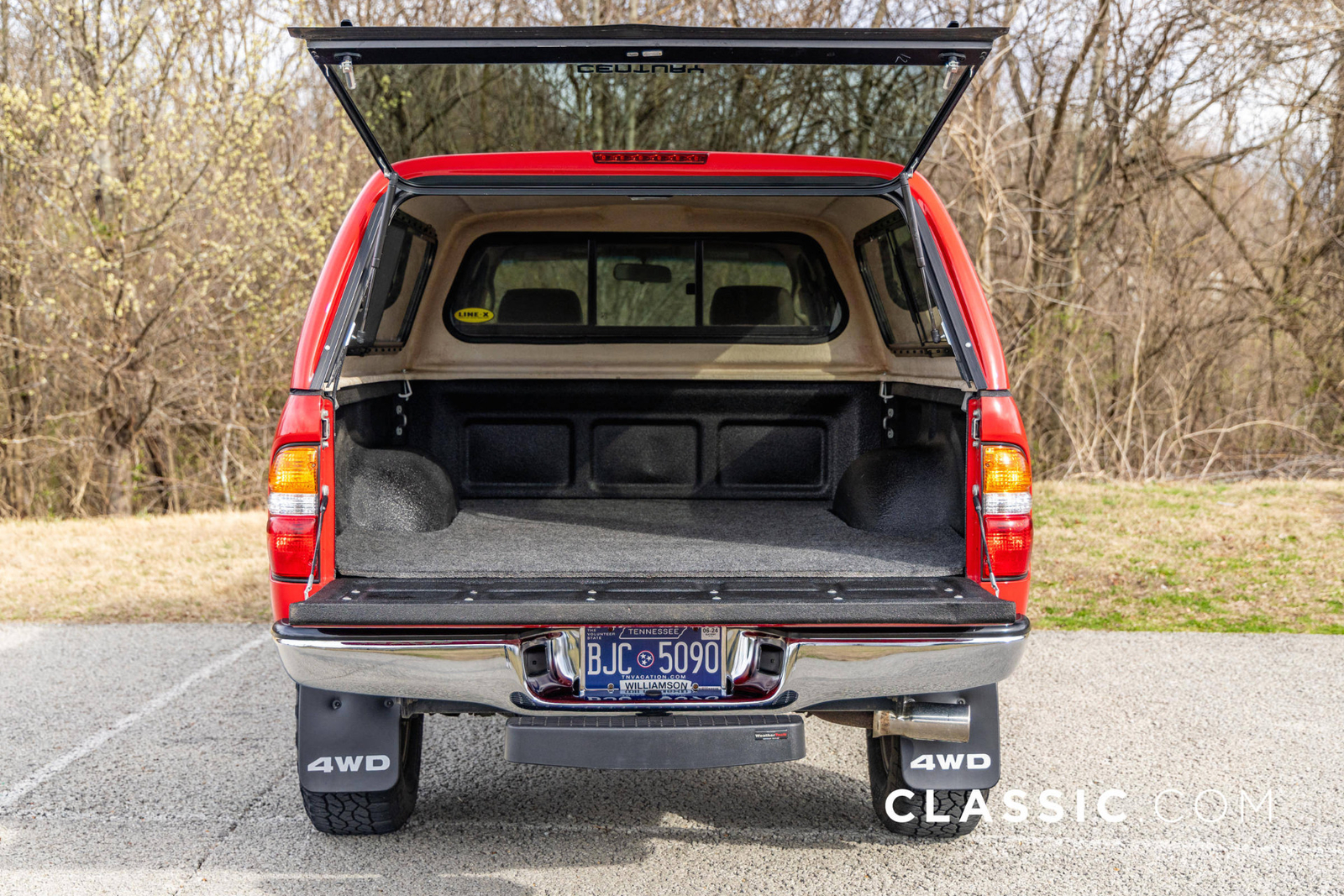This one-owner 2004 Toyota Tacoma SR5 is powered by a 2.7L inline-four-cylinder engine and a four-speed automatic transmission driving all four wheels through a part-time, two-speed transfer case. Its painted in Radiant Red with a tan cloth interior and seating for five with extended cab jump-seats. This Tacoma came with the SR5 and preferred accessory packages with features such as chrome grille and bumpers, air conditioning, and a CD/cassette player. Additional factory options include 16-inch aluminum wheels and a sliding rear window. The owner added a color-matched hard-shell bed canopy and liner and a hood-mounted bug shield. The odometer shows 68,662 original miles and the CarFax confirms registration in Washington and Tennessee by one owner. The report also indicates regular dealer service throughout ownership. The truck is located in Tennessee.